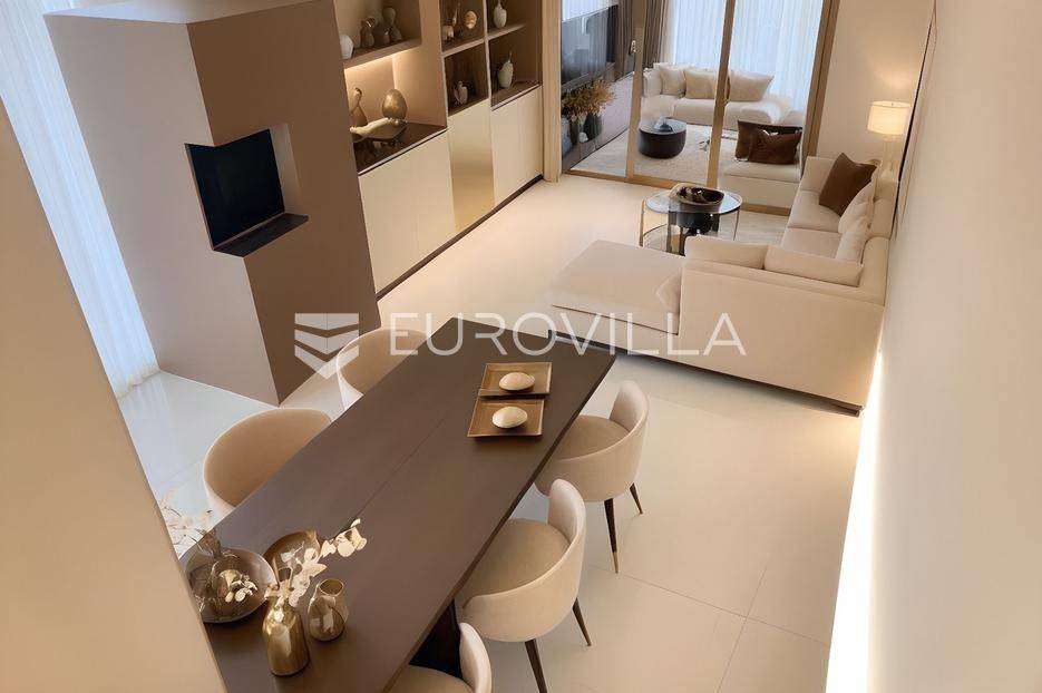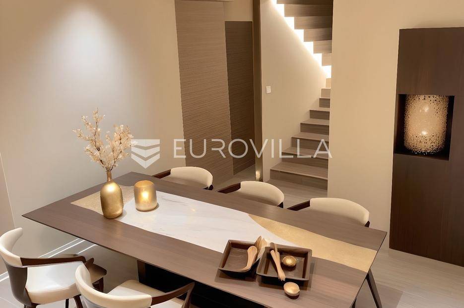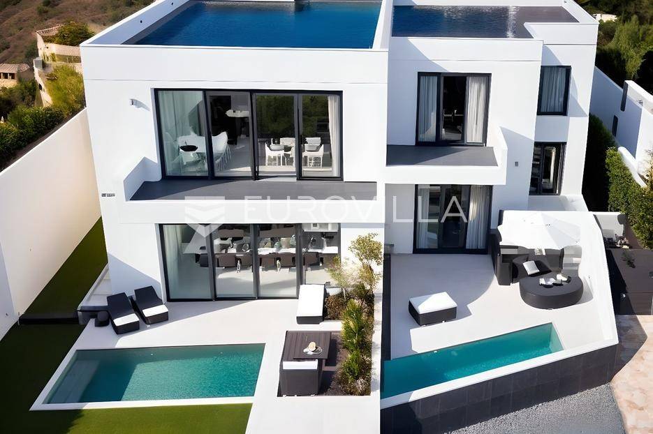 Tisno, dvojna kuća u izgradnji, ukupne stambene površine 107,47 m², raspoređena na tri etaže, s vrhunskim tehničkim rješenjima i elegantnim dizajnom.Nekretnina se nalazi u mirnoj zoni, a ujedno nadomak mora i svih potrebnih sadržaja.Ova moderna dvojna kuća projektirana je za udoban, suvremen život s naglaskom na funkcionalnost, energetsku učinkovitost i privatnost.Sastoji se od: ulaznog hodnika, otvorene kuhinje s blagovaonicom i dnevnim boravkom, tri spavaće sobe, dvije kupaonice, natkrivene i nenatkrivene terase, ograđenog vrta, privatnog bazena i sunčališta, podruma i dvaju nenatkrivenih parkirnih mjesta.Dvojna kuća prostire se na tri etaže i bit će opremljena s podnim grijanjem, dizalica topline, klima uređaji, PVC stolarija s troslojnim staklima, električne rolete, protuprovalna vrata, portafon, komarnici, kvalitetne podne obloge: parket i keramika, betonska konstrukcija, ravno krovište, optički internet, energetski učinkovita gradnja, orijentacija: sve strane svijeta.Nenamješteno - mogućnost uređenja po vlastitim željamaSmještena u mirnoj ulici mjesta Tisno, ova nekretnina nudi idealan spoj privatnosti i blizine mora. Udaljena svega 150 m od mora, kuća se nalazi na atraktivnoj poziciji pogodnoj za obiteljski odmor ili turistički najam.Tisno je šarmantno dalmatinsko mjesto koje spaja kopno i otok Murter mostom, te nudi bogatu gastronomsku, kulturnu i prirodnu ponudu. Kristalno čisto more, uređene plaže, marina, šetnice i raznoliki sadržaji čine ovu lokaciju poželjnom tijekom cijele godine.Za više informacija stojimo na raspolaganju.... Više na eurovilla.hr, ID: 845723
