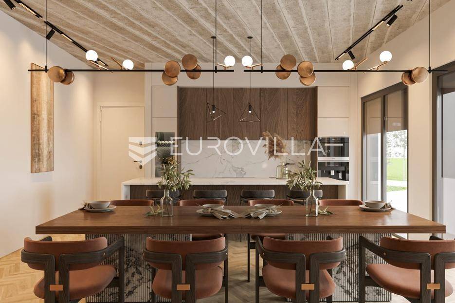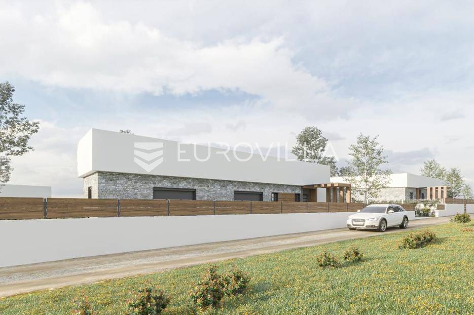 Nadomak istočne obale Istre u šarmantnom povijesnom mjestu Barban nalaze se dva atraktivna građevinska terena podijeljena na dvije čestice ukupne površine od 2185 m2 s izrađenim modernim projektom za dvije vile s bazenima, plaćenim komunalijama i ishodovanom pravomoćnom građevinskom dozvolom.Parcela veće ukupne površine od 1186 m2, na kojoj je po projektu osmišljena prostrana moderna kuća ukupne stambene površine od 234,46 m2 s četiri spavaće sobe i četiri kupaonice nudi obilje prostora za ugodan i spokojan život gdje stropovi visoki 280 cm proširuju i dodatno naglašavaju dojam prozračnosti prostorija kroz cijelu nekretninu, dok interijerom odiše prostrani osunčani dnevni dio otvorenog koncepta od 72 m2 iz kojeg se možete uputiti prema veličanstvenom infinity grijanom bazenu dimenzija 10 x 4 dubine 135 cm ili prema vrtu opremljenim vanjskom kuhinjom. Vanjsku sunčanu terasu obogaćuje dodatan prostor za večernja druženja uz otvorenu vatru.Na manjoj parceli ukupne površine od 863 m2, na kojoj je po projektu osmišljena moderna obiteljska kuća ukupne stambene površine od 168,13 m2 s tri spavaće sobe i tri kupaonice nudi obilje prostora za lagodan i ispunjen život, stropovi su također kao u većem objektu 280 cm, dok interijerom odiše prostrani osunčani dnevni dio otvorenog koncepta od 45 m2 iz kojeg se direktno možete uputiti do infinity grijanog bazena dimenzija 9,5 x 3,5 dubine 135 cm, a idilični zimski vrt je opremljen s vanjskom kuhinjom gdje se možete opustiti uz šalicu toplog čaja.Ove luksuzne obiteljske kuće su pomno osmišljene kako bih zadovoljavale potrebne dualne uporabe ne samo kao obiteljske kuće nego i kao kuće za odmor.Ne propustite ovakvu priliku jer ovi prostrani domovi nude beskrajne mogućnosti sa svojim velikodušnim kvadraturama i skrovitom lokacijom.Za više informacija slobodno nas kontaktirajte.... Više na eurovilla.hr, ID: 858826
