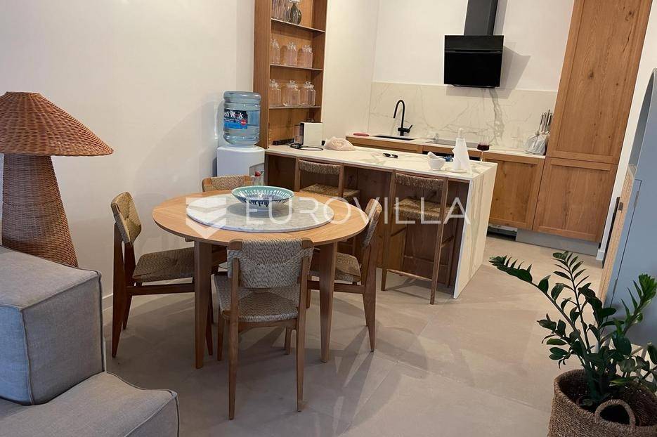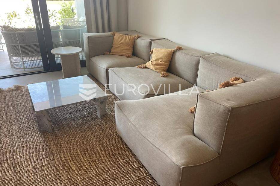Baška Voda, NOVOGRADNJA projekt naselja luksuznih stanova zatvorenog i privatnog karaktera. Gradnja je usklađena kombinacijom tradicijskih i modernih materijala kako bi se uklopili u prirodu koja ih okružuje. Stanove odlikuje najviši stupanj opreme i najsuvremenije tehnologije u pogledu instalacija i upravljanja istima, dok energetska učinkovitost zadovoljava najviše standarde.ZGRADA A - S1 - trosoban stan u prizemlju zatvorene površine 66,55 m2, loggie 11,27 m2 i terase 5,43 m2. Ukupne podne površine 83,55 m2. Orijentacije jug - sjever. Sastoji se od ulaznog hodnika, boravka s blagovaonicom i kuhinjom otvorenog tlocrta s izlazom na loggiu, 2 spavaće sobe, 2 kupaonice i terase. Obračunske površine 79,50 m2.Uz stan je obavezna kupnja garažnog/vanjskog parkirališnog mjesta.Visoko kvalitetna oprema: keramičke pločice Imola Ceramica 60x120 cm (kolekcije PARADE i AZUMA), višeslojni hrastov parket, umivaonici LAUFEN PRO S, wc školjke LAUFEN PRO NEW RIMLESS, walk-in tuševi, kupaonske miješalice PAFFONI (kolekcija LIGHT, podžbukne), vanjski otvori aluminijski profili FEAL Termo 85 i Termo 120 s prekidom toplinskog mosta, klima uređaj Daikin…Stan se prodaje kompletno dizajnerski moderno namješten u cijeosti.Baška Voda nalazi se u srcu Makarske rivijere, 10 km od Makarske, 50 km od Splita, tunelom kroz Biokovo povezana s autocestom A1. Projekt je smješten u centru Baške Vode, na par minuta hoda od plaže te marine i šetnice s brojnim ugostiteljskim sadržajima. Tri zgrade su izgrađene na kosom terenu jugozapadne orijentacije koji svakom od stanova omogućuje pogled na more, istovremeno nudeći tišinu i privatnost stambenog naselja. Teren oko zgrada uređen je kaskadno, poštujući prirodnu konfiguraciju, ozelenjen autohtonim raslinjem. Stanovi su različitih kvadratura i dispozicija, a svaki od njih ima veliku terasu s pogledom na more i otoke.Sve ostale informacije na upit.... Više na eurovilla.hr, ID: 876007