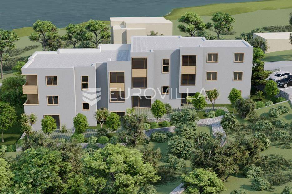 Čiovo pored Trogira, komforan dvosoban stan od 60,1 m² smješten 2. katu zgrade u novogradnji i garaža s dva parkirna mjesta.Sastoji se od: komfornog dnevnoga boravka otvorenog tipa s kuhinjom i blagovaonicom (31 m²) dvije spavaće sobe (10,6 m² i 9,3 m²), kupaonice te lođa na istoku.Zatvorena stambena površina 55,36 m², lođa od 4,7 m2 naslonjena na dnevnoga boravka. Ukupno obračunski neto površina 58,9 m².Orjentacija stana je istok- zapadUz stan je obvezna kupnja i gareže od 25,4 m² s dva parkirna mjesta po cijeni od 35.000 EUR.Predviđeni završetak radova je 12/2026.g.Čiovo je otok s kopnom spojen s dva mosta, a nalazi u blizini Trogira i zračne luke Split.Kvalitetna gradnja, konstrukcija od armiranog beton, pregradni zidovi kao i stropovi knauf s akustičnom vunom uz izvrsnu toplinsku izolaciju termo fasada, PVC zatvori, ravne podizno klizne stijenke, podovi s keramičke pločice i parket, podno grijanje u kupaonici, kompletno sanitarijama opremljena kupaonica.Za sve dodatne informacije stojim vam na raspolaganju.... Više na eurovilla.hr, ID: 878130