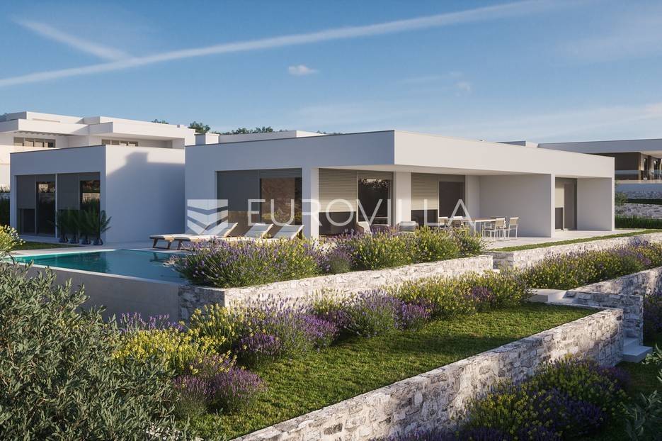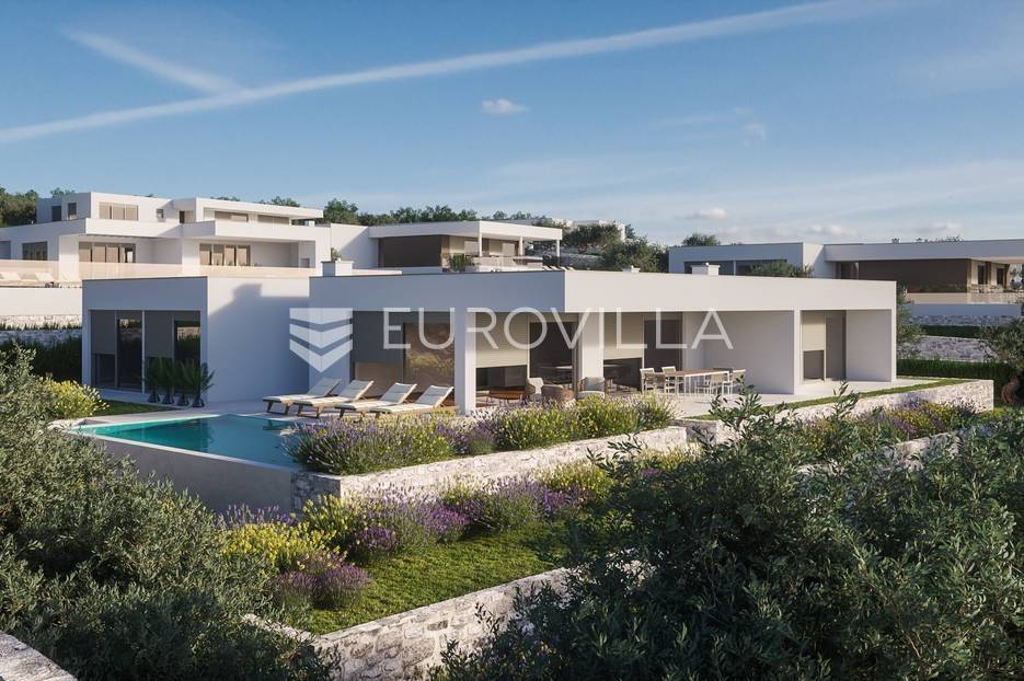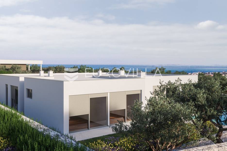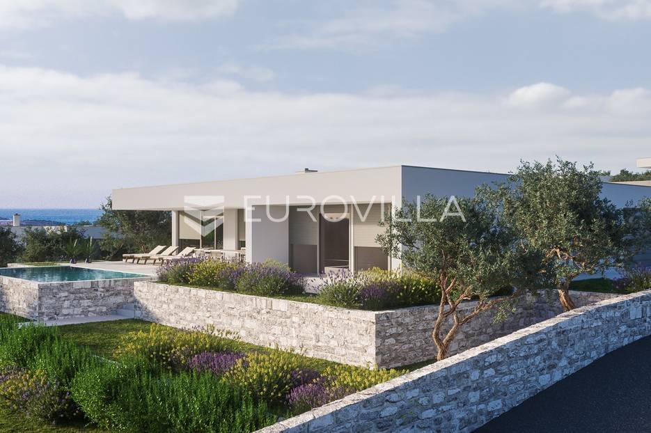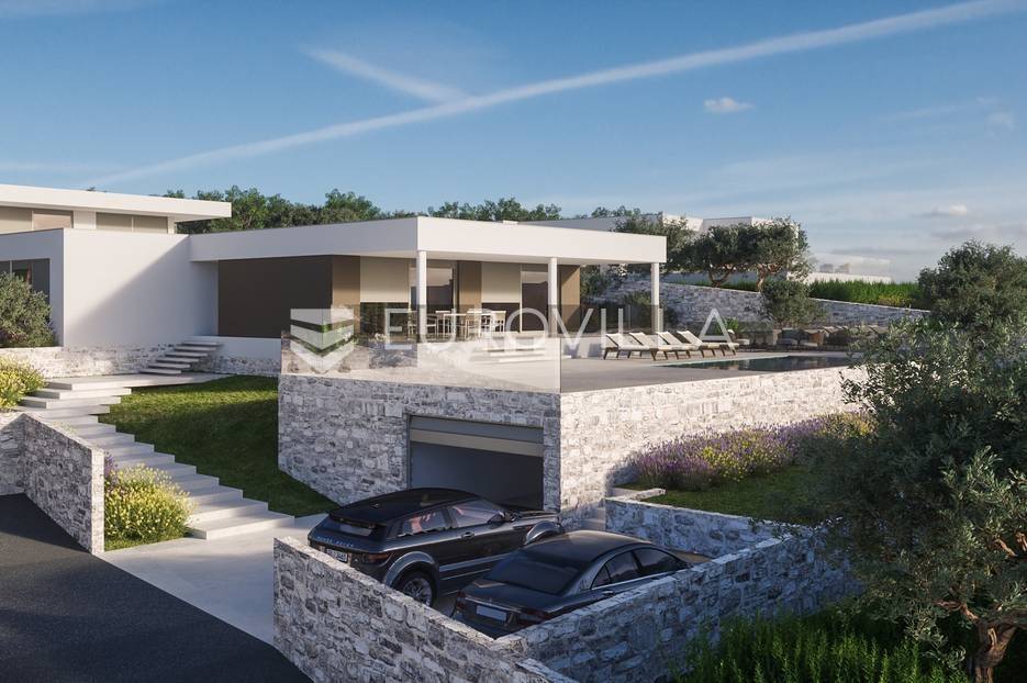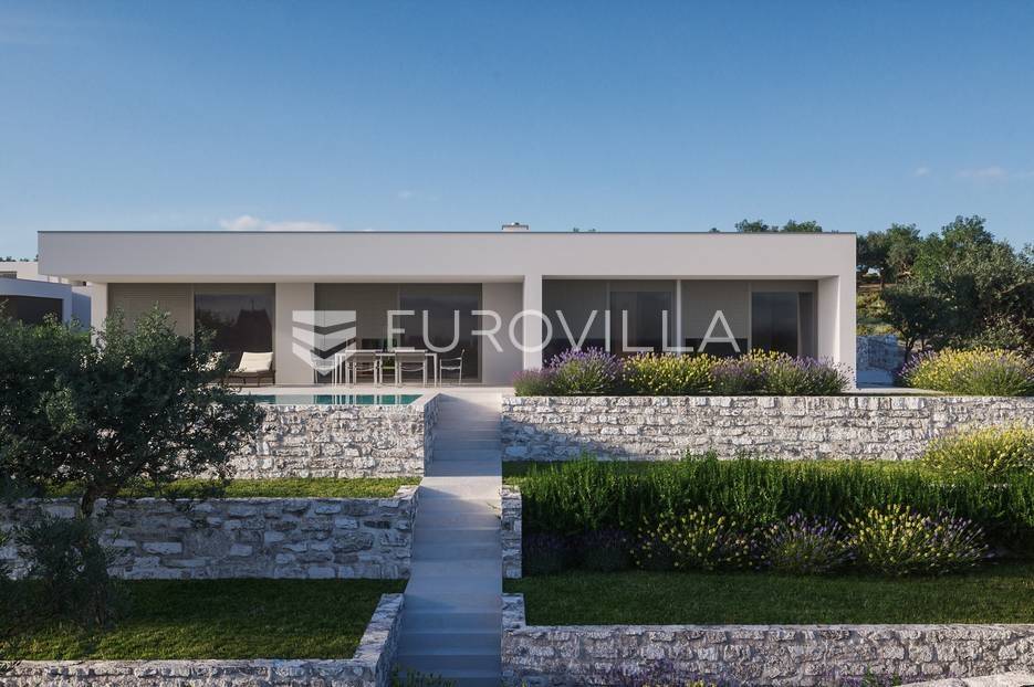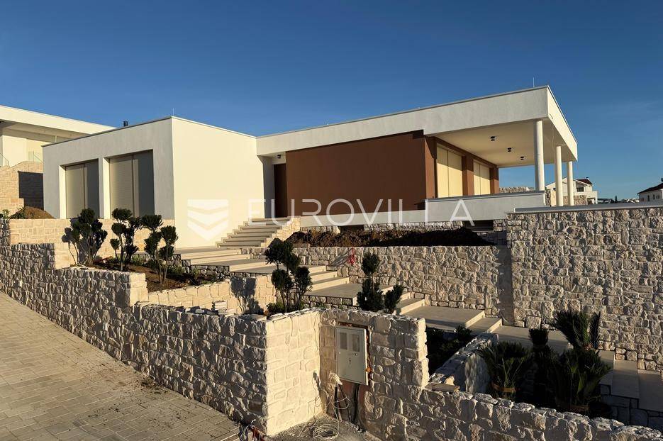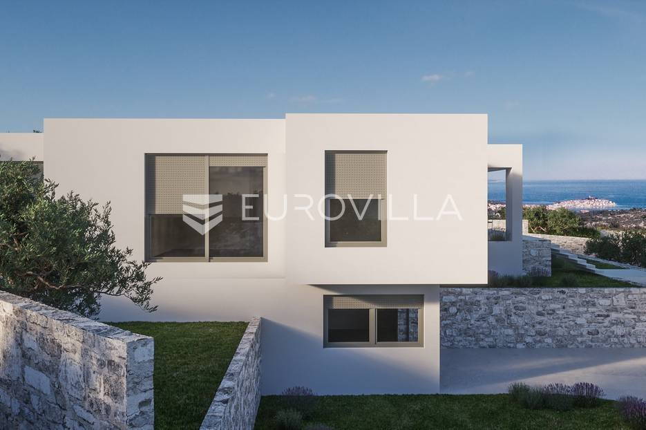 Luksuzna prizemnica kao dio suvremenog kompleksa od osam prizemnica tijekom čijeg se projektiranja i izgradnje pazilo na svaki detalj, od odabira opreme pri izgradnji tako i do samog koncepta i položaja nekretnina kako bih svaki budući vlasnik imao neometan panoramski pogled na more te maksimalnu privatnost. Sve vile će imati raspored u jednoj razini, smještene kaskadno.Vila M5 bruto površine 400 m2 na zemljištu površine 1200 m2. Sastoji se od ulaznog dijela, hodnika, wc-a, praonice, playrooma ili radne sobe, spremišta, dnevnog boravka, kuhinje, blagovaonice, četiri spavaće sobe, četiri kupaonice, terase te garaže. U podrumskoj etaži će se nalaziti konoba od 60 m2 te teretana, sauna i spremište. Vili pripada grijani bazen promjera 8x4 m te jaccuzi, vanjski wc te vanjska kuhinja. Kompletna oprema unutar vile će biti vrhunskog standarda (alu stolarija s komaricama, podno grijanje u svim prostorijama, klima uređaji u svim prostorijama...).Planirani završetak ljeto 2024 godine.Na odličnoj lokaciji, u mirnom i tihom okruženju, na 1500 m udaljenosti od centra Primoštena.Više informacija na upit.... Više na eurovilla.hr, ID: 900012