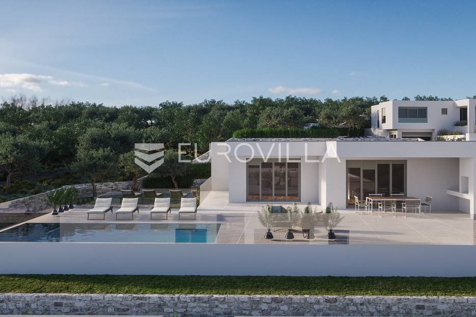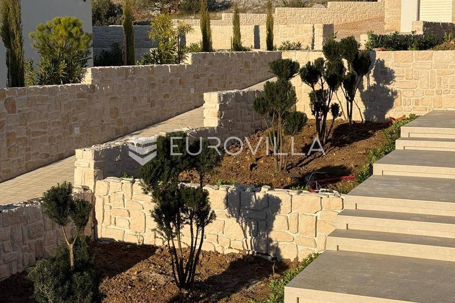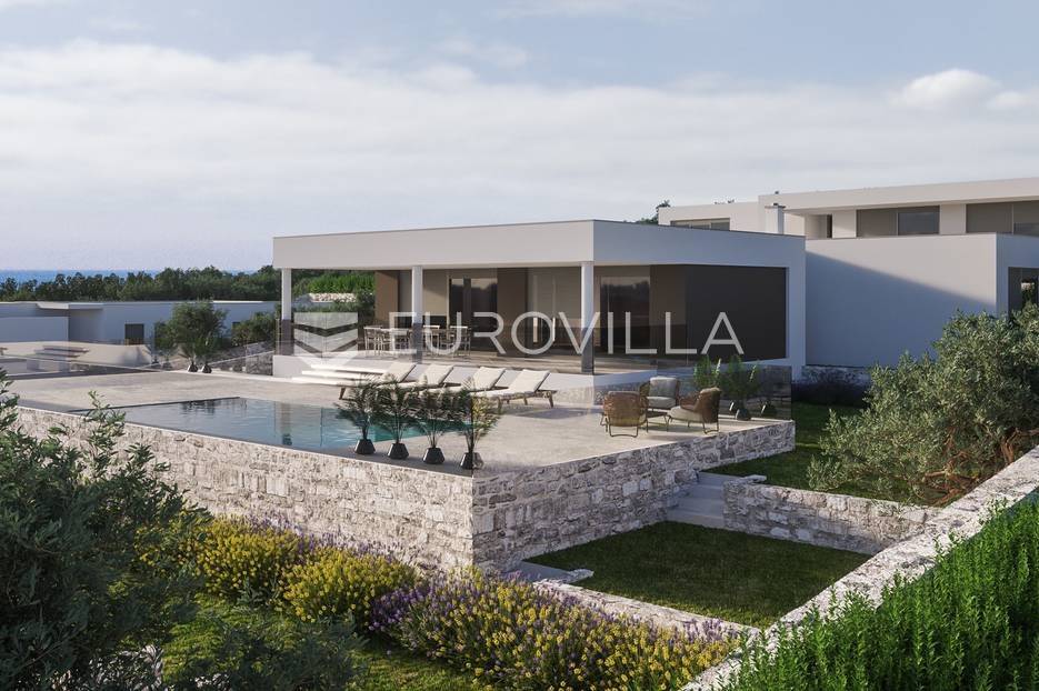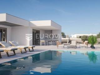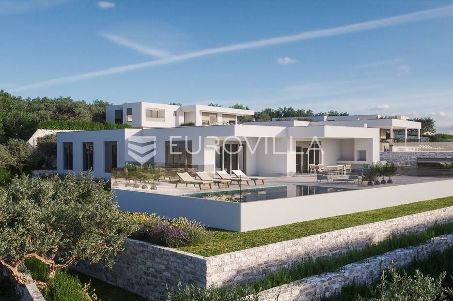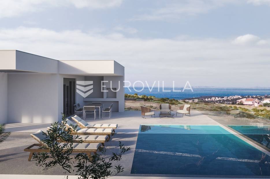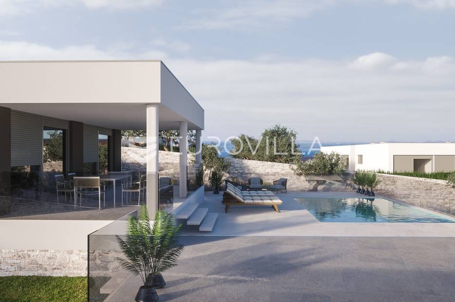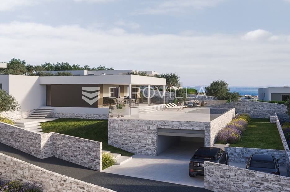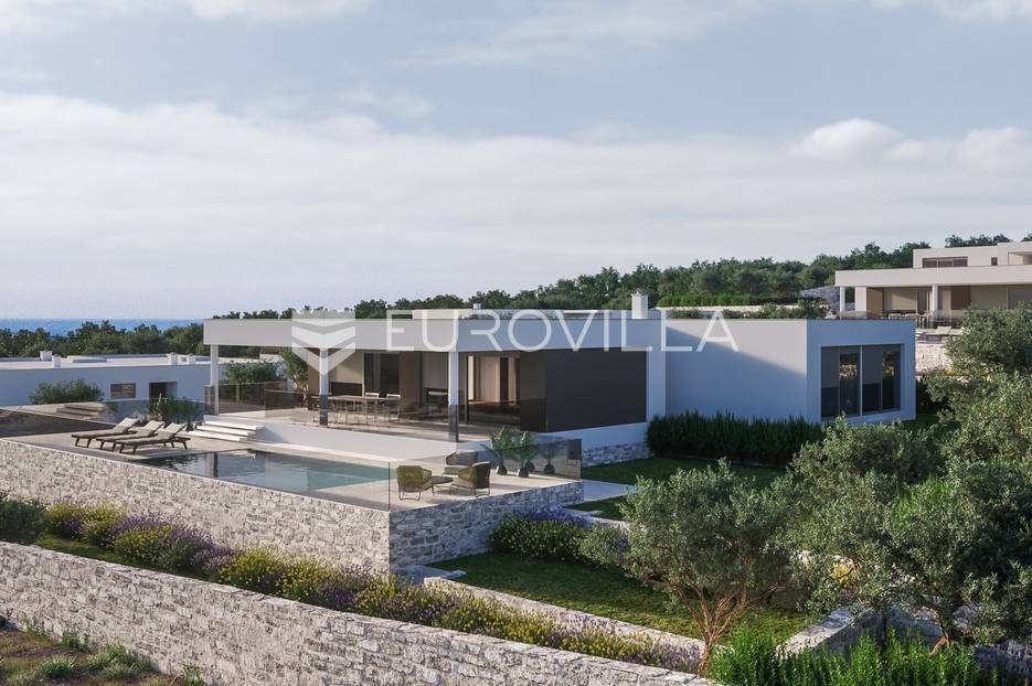 Luksuzna prizemnica kao dio suvremenog kompleksa od osam prizemnica tijekom čijeg se projektiranja i izgradnje pazilo na svaki detalj, od odabira opreme pri izgradnji tako i do samog koncepta i položaja nekretnina kako bih svaki budući vlasnik imao neometan panoramski pogled na more te maksimalnu privatnost. Sve vile će imati raspored u jednoj razini, smještene kaskadno.Vila M5 bruto površine 400 m2 na zemljištu površine 1200 m2. Sastoji se od ulaznog dijela, hodnika, wc-a, praonice, playrooma ili radne sobe, spremišta, dnevnog boravka, kuhinje, blagovaonice, četiri spavaće sobe, četiri kupaonice, terase te garaže. U podrumskoj etaži će se nalaziti konoba od 60 m2 te teretana, sauna i spremište. Vili pripada grijani bazen promjera 8x4 m te jaccuzi, vanjski wc te vanjska kuhinja. Kompletna oprema unutar vile će biti vrhunskog standarda (alu stolarija s komaricama, podno grijanje u svim prostorijama, klima uređaji u svim prostorijama...).Planirani završetak ljeto 2024 godine.Na odličnoj lokaciji, u mirnom i tihom okruženju, na 1500 m udaljenosti od centra Primoštena.Više informacija na upit.... Više na eurovilla.hr, ID: 900012
