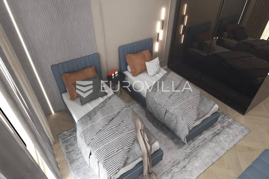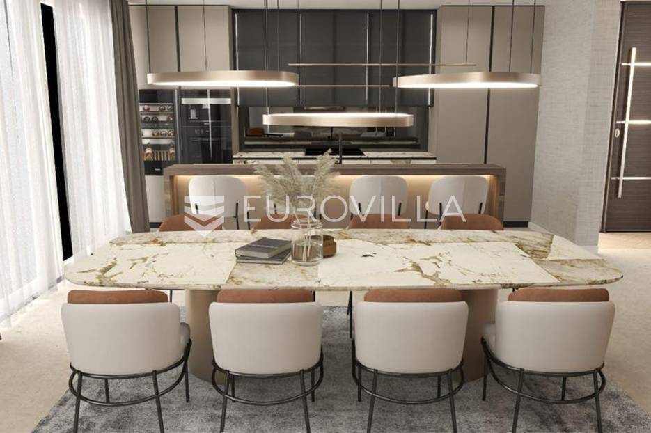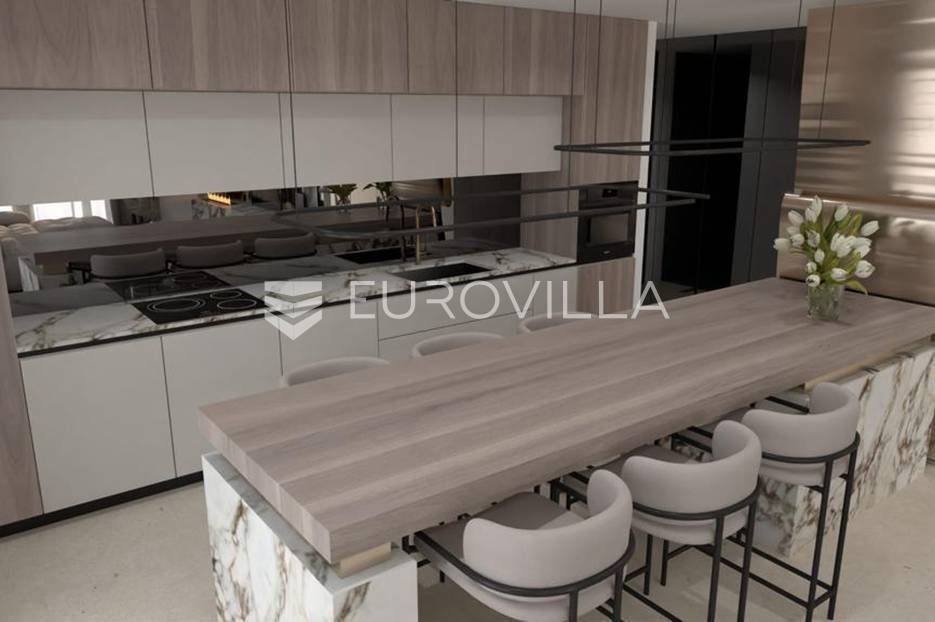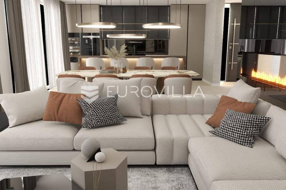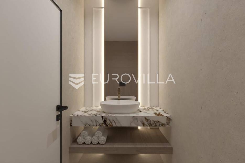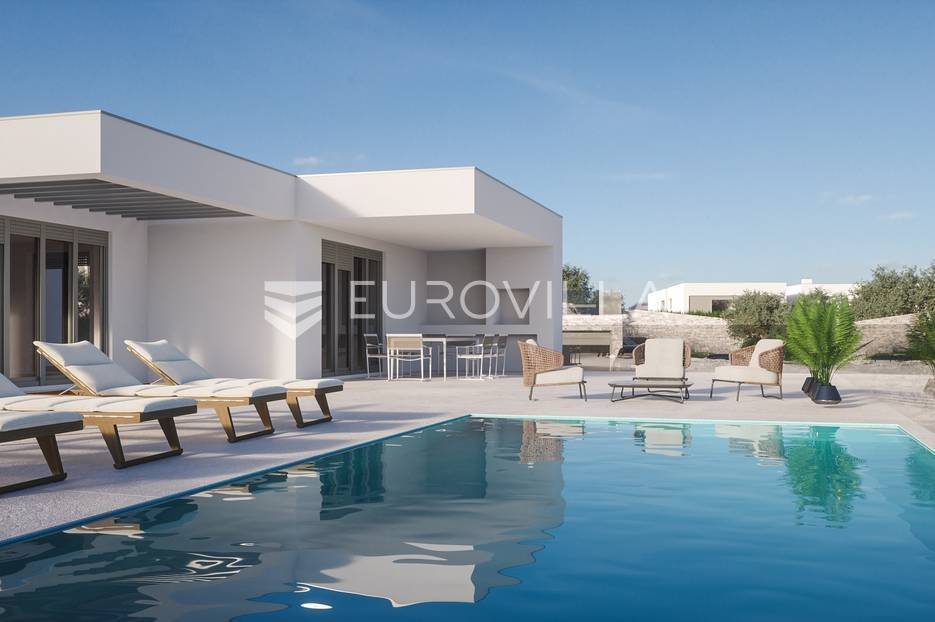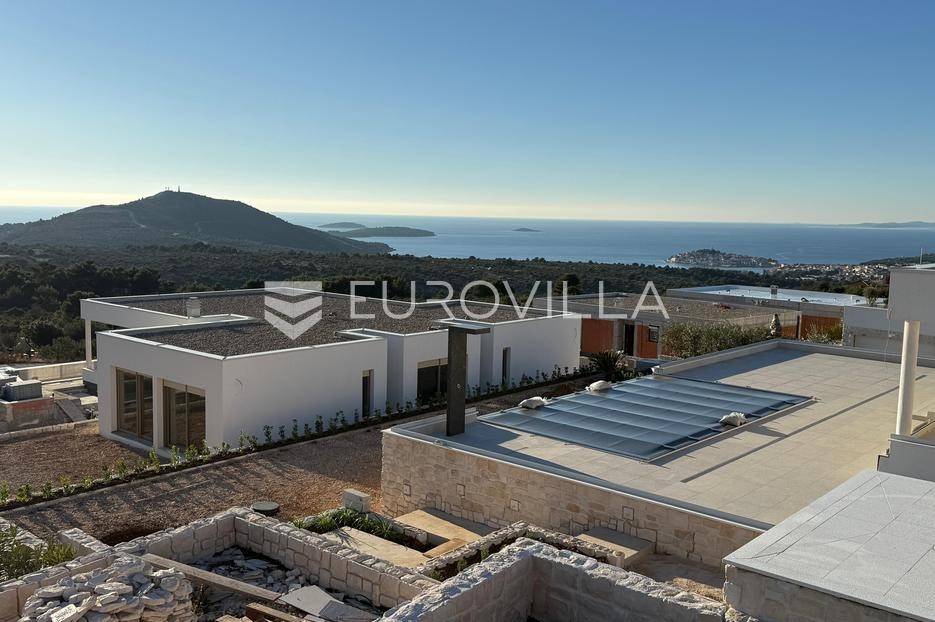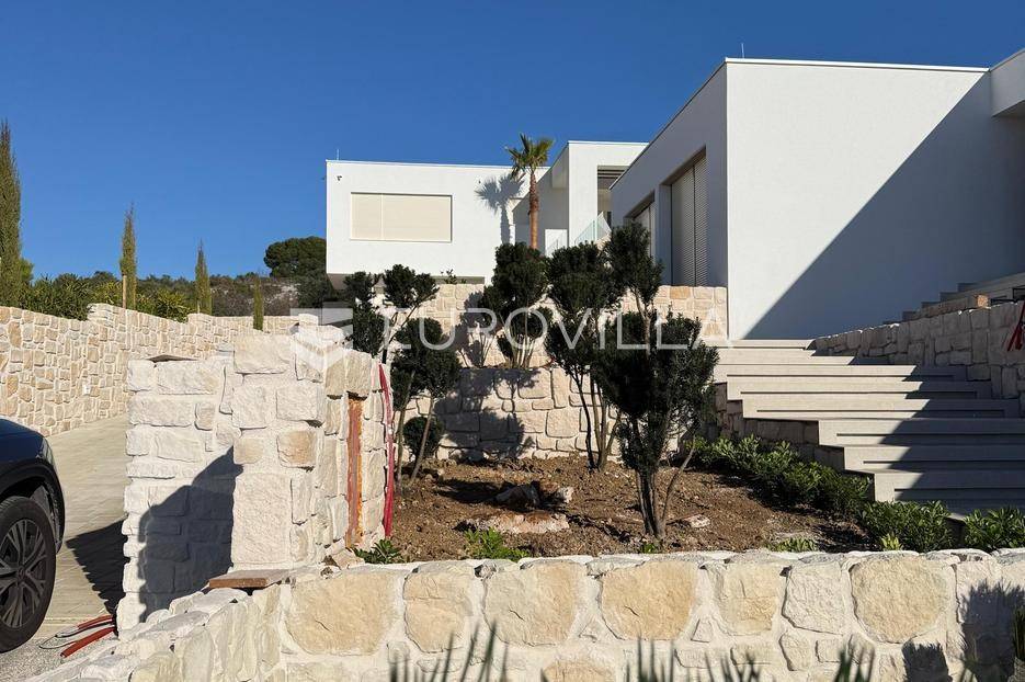 Luksuzna prizemnica kao dio suvremenog kompleksa od osam prizemnica tijekom čijeg se projektiranja i izgradnje pazilo na svaki detalj, od odabira opreme pri izgradnji tako i do samog koncepta i položaja nekretnina kako bih svaki budući vlasnik imao neometan panoramski pogled na more te maksimalnu privatnost. Sve vile će imati raspored u jednoj razini, smještene kaskadno.Vila M5 bruto površine 400 m2 na zemljištu površine 1200 m2. Sastoji se od ulaznog dijela, hodnika, wc-a, praonice, playrooma ili radne sobe, spremišta, dnevnog boravka, kuhinje, blagovaonice, četiri spavaće sobe, četiri kupaonice, terase te garaže. U podrumskoj etaži će se nalaziti konoba od 60 m2 te teretana, sauna i spremište. Vili pripada grijani bazen promjera 8x4 m te jaccuzi, vanjski wc te vanjska kuhinja. Kompletna oprema unutar vile će biti vrhunskog standarda (alu stolarija s komaricama, podno grijanje u svim prostorijama, klima uređaji u svim prostorijama...).Planirani završetak ljeto 2024 godine.Na odličnoj lokaciji, u mirnom i tihom okruženju, na 1500 m udaljenosti od centra Primoštena.Više informacija na upit.... Više na eurovilla.hr, ID: 900012