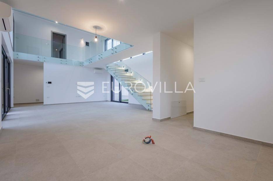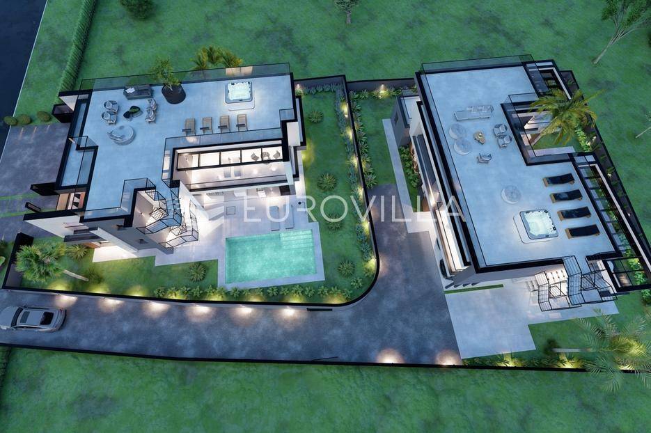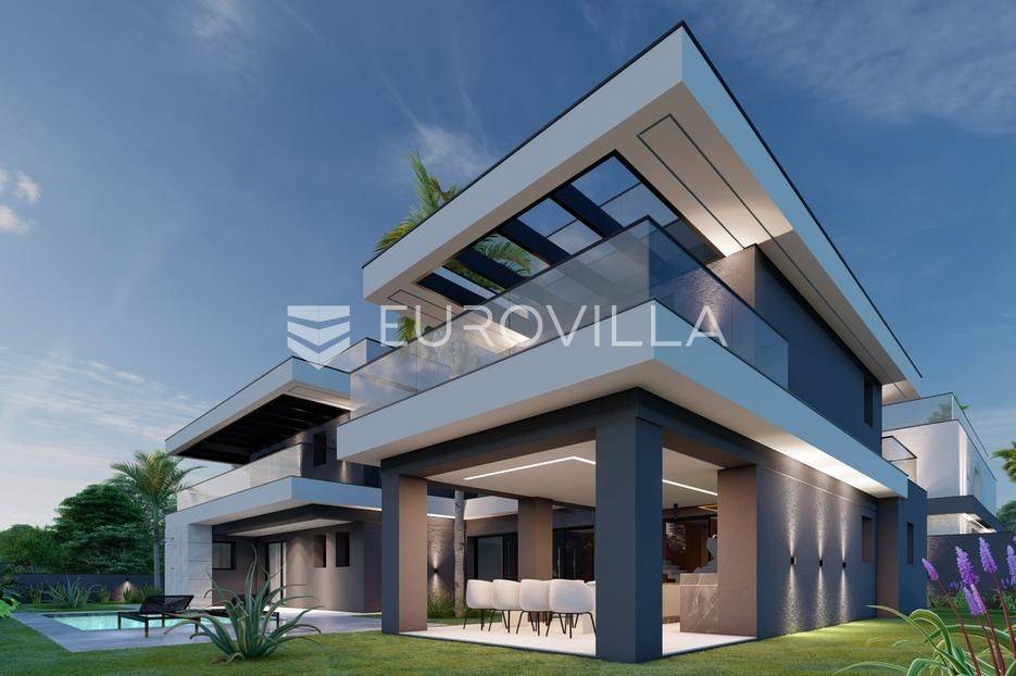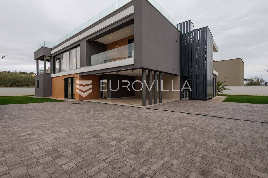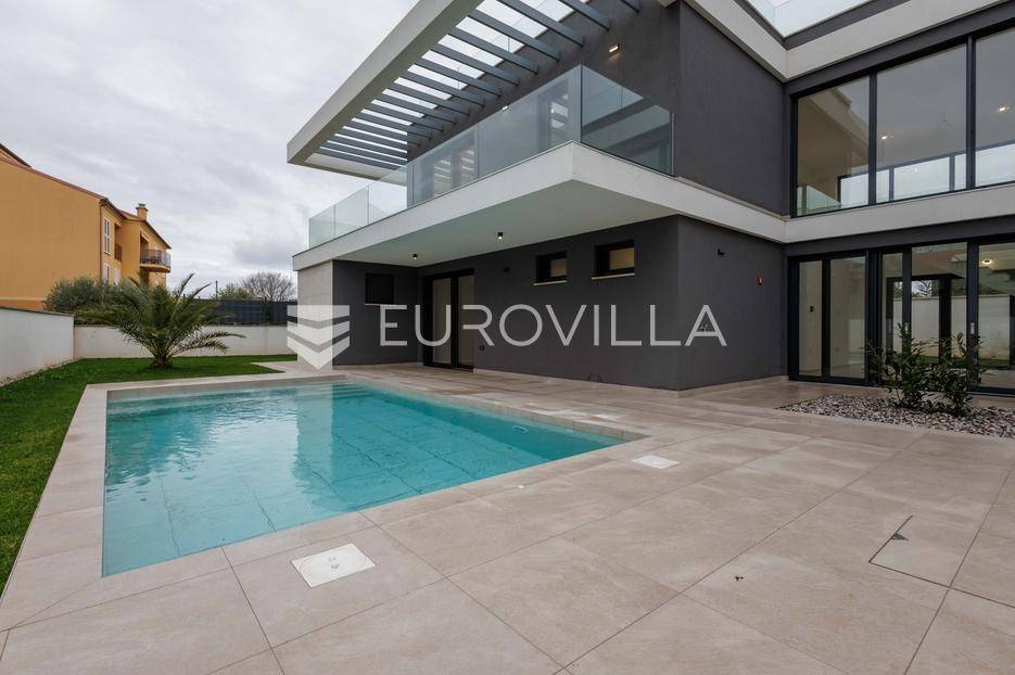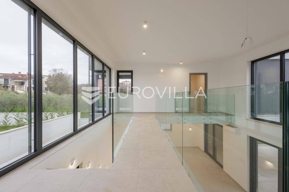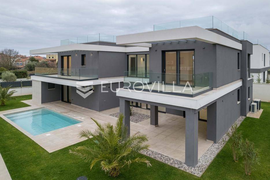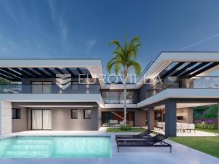 U Pomeru na jugu Istarskog poluotoka svega 20etak metara od mora nalazi se ova moderno dizajnirana villa sa svojih raskošnih 417 m2 raspoređenih na dvije etaže + krovna terasa.U prizemlju vile na okućnici od 720 m2 smjestio se svijetli open space dnevni boravak s izlazom na natkrivenu terasu i bazen koji je orijentiran na južnu sunčanu stranu. U prizemlju se također nalazi moderna kuhinja i jedna spavaća soba s kupaonom, gostinjski toalet, tehnička soba, spremište, u vanjskom dijelu još jedan toalet i veće spremište.Unutrašnjim stubištem penje se na drugi kat gdje se nalaze još tri spavaće sobe svaka sa svojom kupaonom. Na etaži su i četiri velike natkrivene terase s prekrasnim pogledom na more udaljeno svega 20 m.Treća etaža je zapravo 35 m2 prekrasne terase za dnevna sunčanja ili večernja druženja.U gradnji ville koriste se vrhunski materijali, te prodavatelj vodi računa o svakom detalju prilikom uređenja. Svakako da je cjelokupni prostor klimatiziran, grijanje sistem toplinske pumpe, podno grijanje.Na okućnici ville predviđen je parking za 4 vozila, odnosno dva natkrivena i dva nenatkrivena parkirna mjesta.Predviđeni kraj radova je 10/2025 godine.Za više informacija stojimo Vam na raspolaganju.... Više na eurovilla.hr, ID: 924735