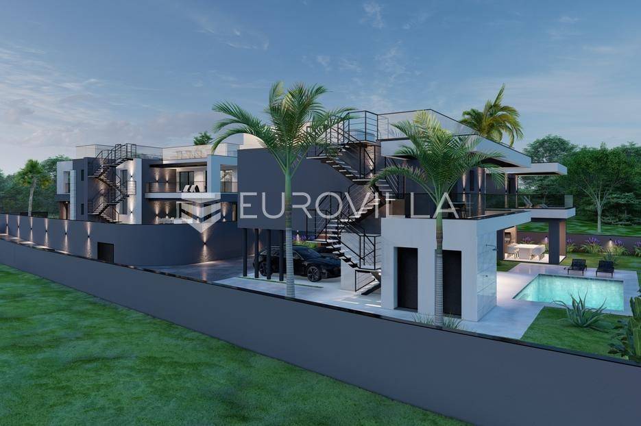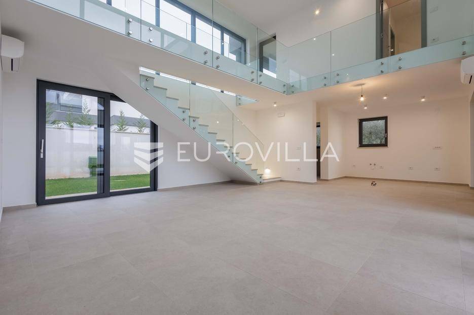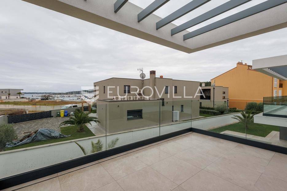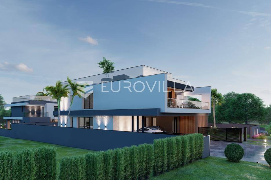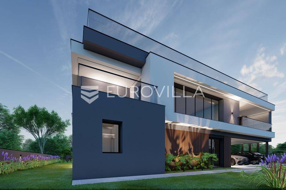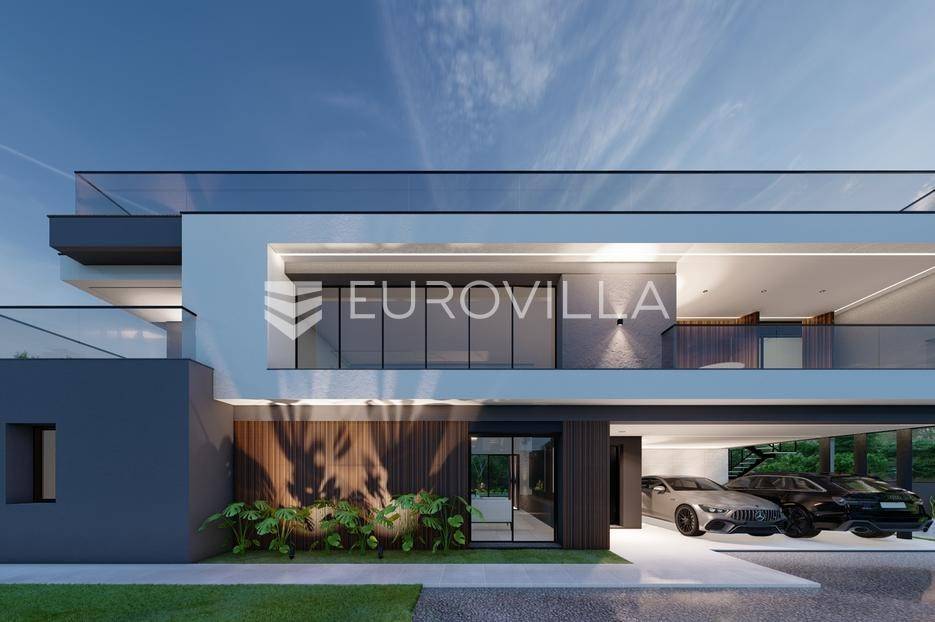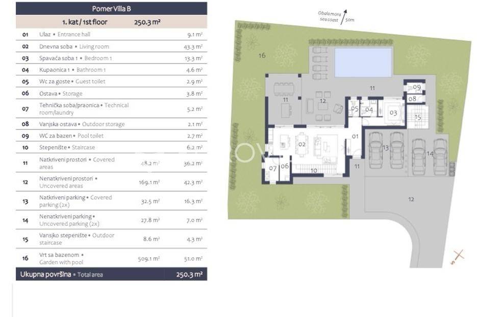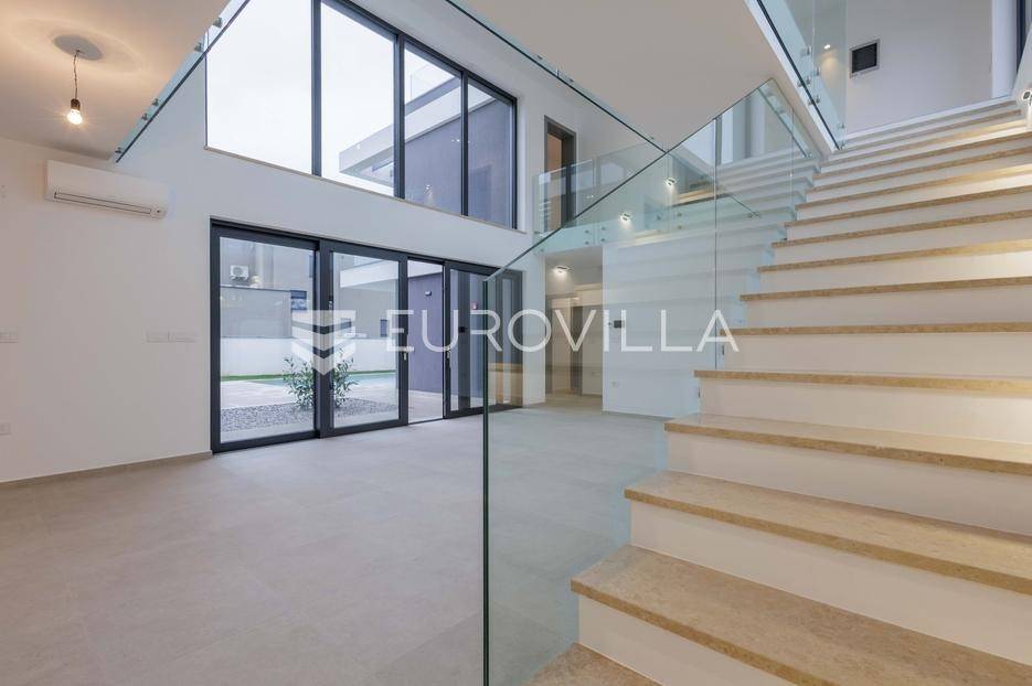 U Pomeru na jugu Istarskog poluotoka svega 20etak metara od mora nalazi se ova moderno dizajnirana villa sa svojih raskošnih 417 m2 raspoređenih na dvije etaže + krovna terasa.U prizemlju vile na okućnici od 720 m2 smjestio se svijetli open space dnevni boravak s izlazom na natkrivenu terasu i bazen koji je orijentiran na južnu sunčanu stranu. U prizemlju se također nalazi moderna kuhinja i jedna spavaća soba s kupaonom, gostinjski toalet, tehnička soba, spremište, u vanjskom dijelu još jedan toalet i veće spremište.Unutrašnjim stubištem penje se na drugi kat gdje se nalaze još tri spavaće sobe svaka sa svojom kupaonom. Na etaži su i četiri velike natkrivene terase s prekrasnim pogledom na more udaljeno svega 20 m.Treća etaža je zapravo 35 m2 prekrasne terase za dnevna sunčanja ili večernja druženja.U gradnji ville koriste se vrhunski materijali, te prodavatelj vodi računa o svakom detalju prilikom uređenja. Svakako da je cjelokupni prostor klimatiziran, grijanje sistem toplinske pumpe, podno grijanje.Na okućnici ville predviđen je parking za 4 vozila, odnosno dva natkrivena i dva nenatkrivena parkirna mjesta.Predviđeni kraj radova je 10/2025 godine.Za više informacija stojimo Vam na raspolaganju.... Više na eurovilla.hr, ID: 924735