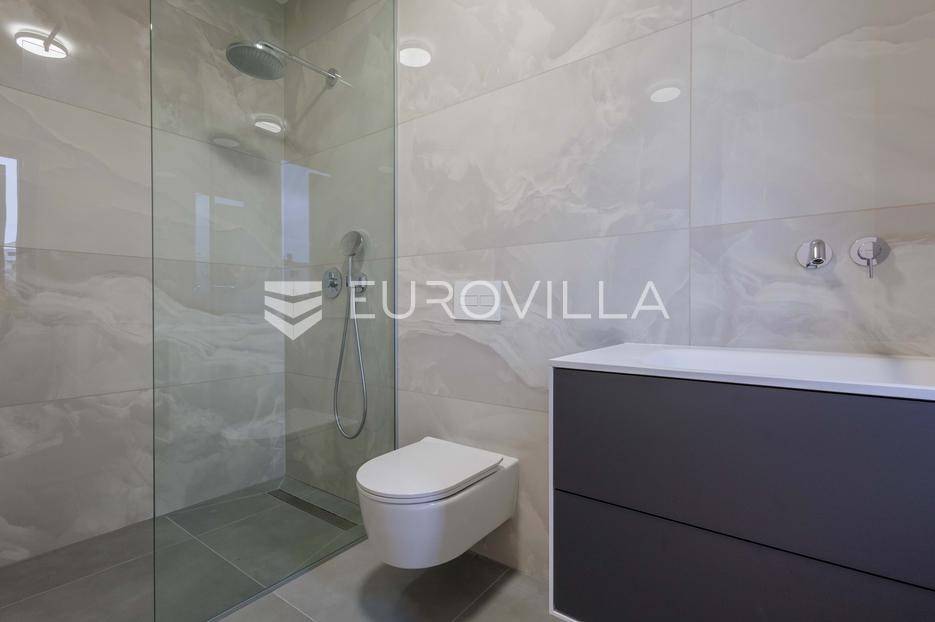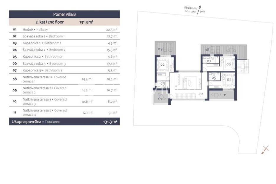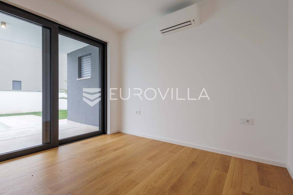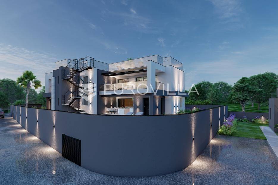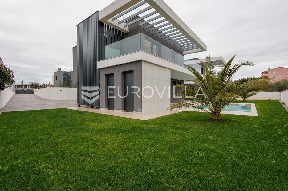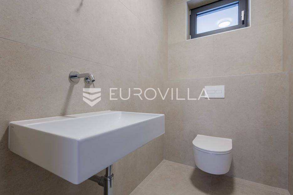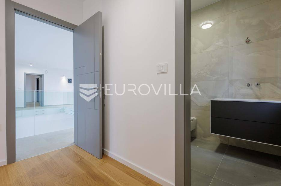 U Pomeru na jugu Istarskog poluotoka svega 20etak metara od mora nalazi se ova moderno dizajnirana villa sa svojih raskošnih 417 m2 raspoređenih na dvije etaže + krovna terasa.U prizemlju vile na okućnici od 720 m2 smjestio se svijetli open space dnevni boravak s izlazom na natkrivenu terasu i bazen koji je orijentiran na južnu sunčanu stranu. U prizemlju se također nalazi moderna kuhinja i jedna spavaća soba s kupaonom, gostinjski toalet, tehnička soba, spremište, u vanjskom dijelu još jedan toalet i veće spremište.Unutrašnjim stubištem penje se na drugi kat gdje se nalaze još tri spavaće sobe svaka sa svojom kupaonom. Na etaži su i četiri velike natkrivene terase s prekrasnim pogledom na more udaljeno svega 20 m.Treća etaža je zapravo 35 m2 prekrasne terase za dnevna sunčanja ili večernja druženja.U gradnji ville koriste se vrhunski materijali, te prodavatelj vodi računa o svakom detalju prilikom uređenja. Svakako da je cjelokupni prostor klimatiziran, grijanje sistem toplinske pumpe, podno grijanje.Na okućnici ville predviđen je parking za 4 vozila, odnosno dva natkrivena i dva nenatkrivena parkirna mjesta.Predviđeni kraj radova je 10/2025 godine.Za više informacija stojimo Vam na raspolaganju.... Više na eurovilla.hr, ID: 924735