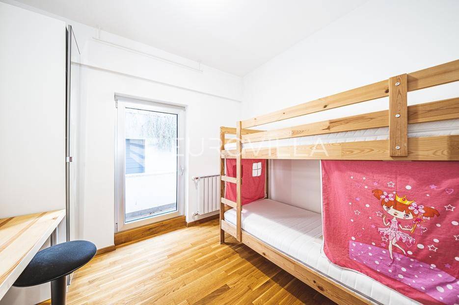 Jelenovac, luksuzan četverosoban stan zatvorene površine 197,95 m2 u prizemlju zgrade novije gradnje s liftom.Sastoji se od ulaznog hodnika, prostranog open space dnevnog boravka s izlazom na terasu, kuhinje s blagovaonicom, ostavom i izlazom na balkon, kupaonice, master spavaće sobe s walk in ormarom, kupaonicom, i izlazom u vrt, te dodatne dvije spavaće sobe.Stanu pripadaju dvije garaže po 9,90 m2 i spremište.Ekskluzivan, rezidencijalni dio grada, u zelenilu i mirnoj ulici. Idealno za obitelj koja traži privatnost, a ujedno vrlo blizu samog centra grada.Ostale informacije na upit.... Više na eurovilla.hr, ID: 927982