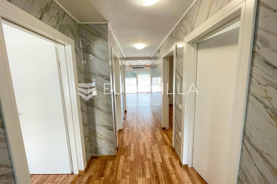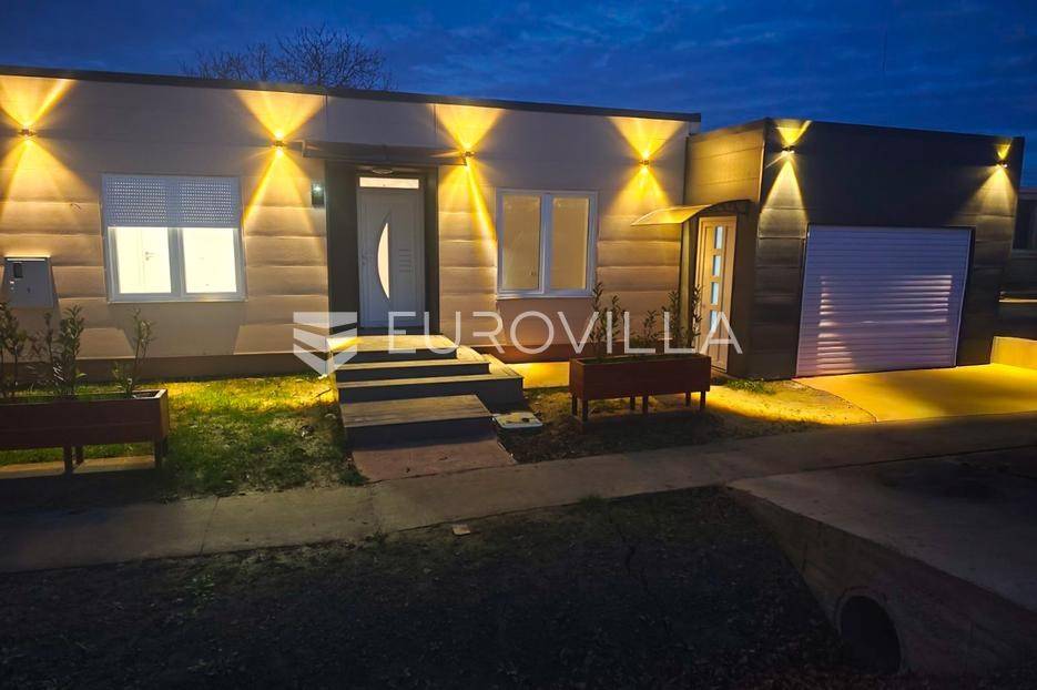 Donji Miholjac, okolica, prodaja - nova niskoenergetska montažna kuća s garažom i dvorištem.Na prodaju je moderna i potpuno nova niskoenergetska montažna kuća smještena u mirnom okruženju Donjeg Miholjca, idealna za kvalitetan i bezbrižan život. Ukupna neto površina nekretnine iznosi 151 m², dok je stambeni dio površine 105 m², uz garažu i terasu koje dodatno doprinose funkcionalnosti prostora.Kuća je pažljivo projektirana kako bi zadovoljila potrebe suvremenog stanovanja. Građena je SIP panelima, opremljena podnim grijanjem, PVC stolarijom s troslojnim staklom te ravnim krovom.Sastoji se od glavne spavaće sobe s vlastitom kupaonicom i walk-in tušem, dvije dodatne spavaće sobe, glavne kupaonice s tuš kabinom, otvorenog koncepta kuhinje, blagovaonice i dnevnog boravka, ostave te tehničke prostorije. Iz dnevnog boravka, kroz veliku staklenu stijenu, izlazi se na terasu koja pruža savršen prostor za opuštanje i druženje.Obje kupaonice su uređene i opremljene masažnim tuševima, dok grijanje i hlađenje osigurava dizalica topline, čime su osigurani visoka energetska učinkovitost i niski mjesečni troškovi. Kuća je niskoenergetska, a ograđeno dvorište pruža privatnost i osjećaj mira. Garaža je opremljena električnim podizanjem vrata.Nekretnina se nalazi u neposrednoj blizini škole, trgovine i crkve, dok je prometno izvrsno povezana s okolnim gradovima. Grad Našice su udaljene oko 25 kilometara, Osijek oko 45 kilometara, a mađarska granica svega 10 kilometara, s poznatim termalnim lječilištima Harkány i Siklós u neposrednoj blizini.Ova kuća idealan je izbor za obitelji koje traže moderan, funkcionalan i energetski učinkovit dom, za parove koji žele mirno okruženje uz dobru povezanost, kao i za kupce koji žele useliti bez dodatnih ulaganja. Također predstavlja odličnu priliku za investiciju, bilo za dugoročni najam ili kao nekretninu za boravak u blizini termalnih i turističkih sadržaja.Za više informacija i dogovor razgledavanja, slobodno nam se obratite.... Više na eurovilla.hr, ID: 929403