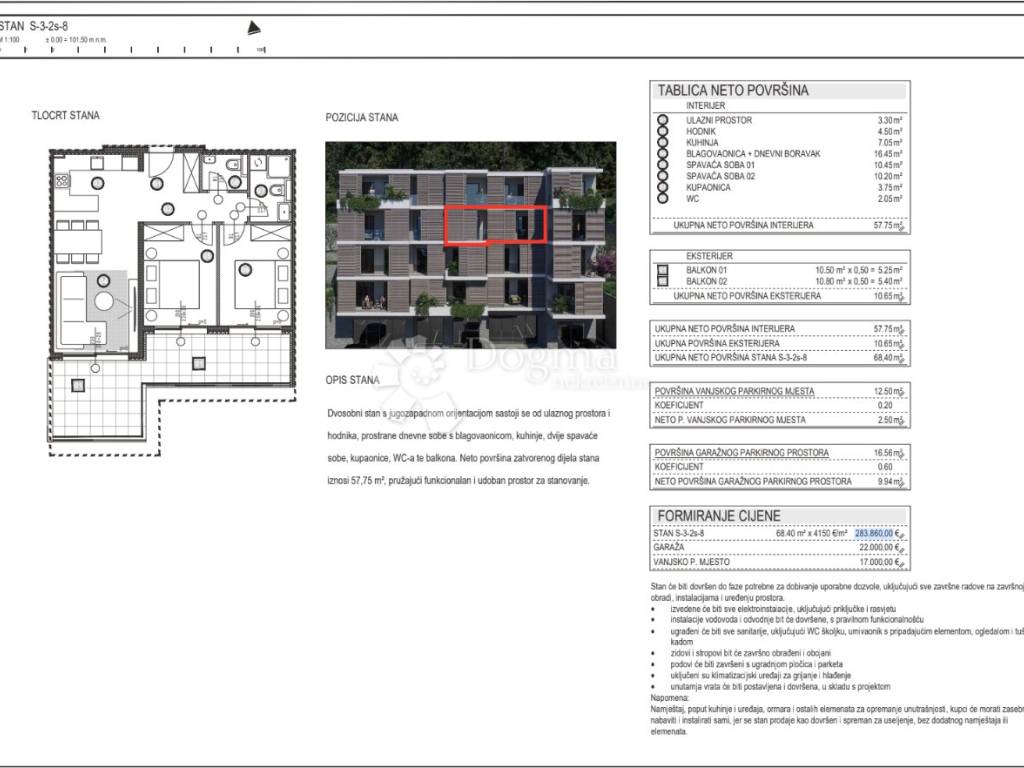 The apartment is southwest-oriented, ensuring plenty of natural light throughout the day. The net floor area is 68.40 m and comprises: