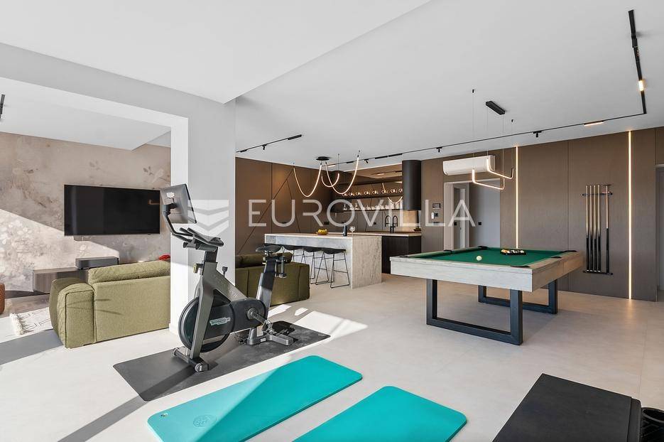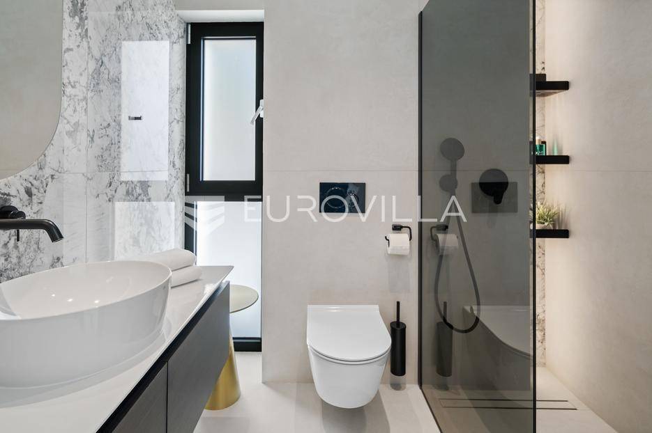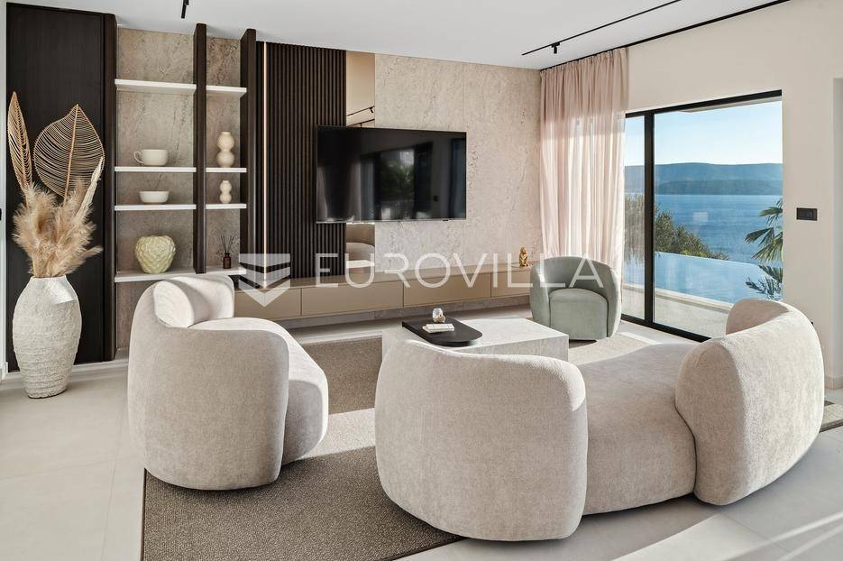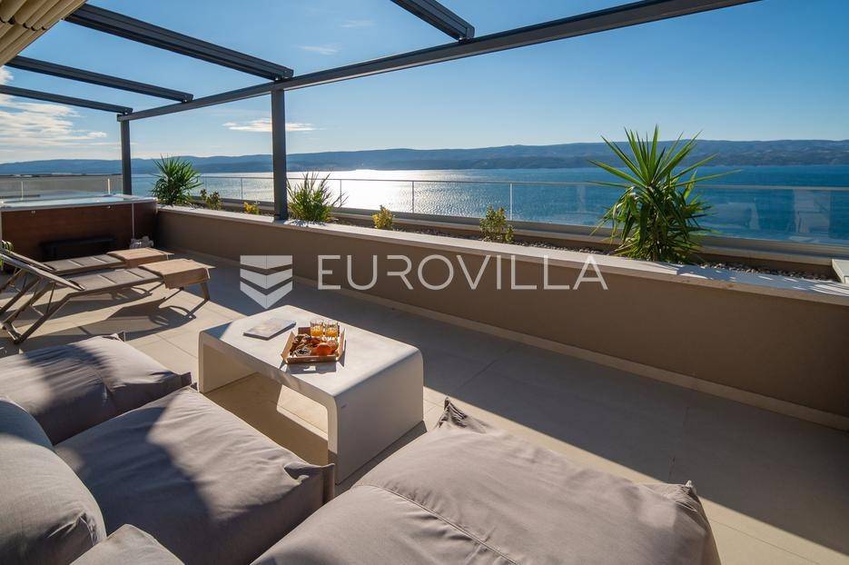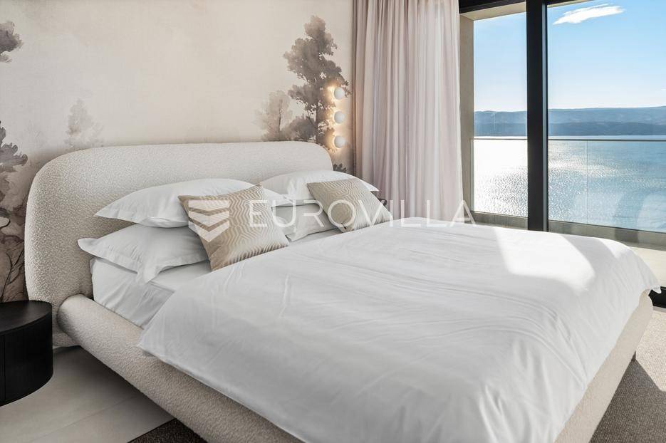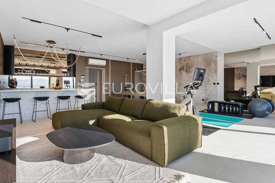 Elegantna luksuzna vila na četiri etaže, raspolaže s pet komfornih soba, svaka s vlastitom kupaonicom, master soba s walk-in garderobom. Veliki dnevni boravak s kuhinjom i blagovaonicom, prostorija za zabavu s teretanom i saunom, vanjski infiniti bazen s jacuzzijem.Vila modernog dizajna, visokog standarda kvalitete gradnje i stupnja opremljenosti, smještena na uzvisini s prekrasnim panoramskim pogledom na more s svake etaže.Bruto površina kuće od 416 m2, neto 397 m2, smještena je na parceli veličine 605 m2 koja se nalazi na 300 m od mora.Proteže se na četiri etaže, bazen na donjoj etaži suterena kao iz cijelog objekta s prekrasnim pogledom na more. Pozicija je takva da osigurava potpunu privatnost vlasnika, a sastoji se od: suterena, prizemlja, te prvog i drugog kata, a svake etaže prekrasan pogledom na more.Na vrhu objekta gornja etaža drugog kata nalazi se garaža za dva automobila, te parking za četiri automobila.Suteren se sastoji od: velike prostorije od 66 m2 s pogledom na more namijenjene za zabavu s mini teretanom, saunom, kupaonicom tehničke sobe, wc-a i praonice.Prizemlje se sastoji od: kuhinje s blagovaonice i prostranog dnevnog boravka otvorenog tipa (62 m2), zajednički WC, djelomično natkrivene terasom na kojoj je infiniti bazen s jacuzzijem i sunčalištem sve s prekrasnim pogledom, vrt sa zasađenim biljem i ugrađenim sistemom za samo zalijevanje.Na prvom katu nalaze se tri prostrane komforne spavaće sobe s vlastitom kupaonicom i izlazom na prostranu lođu, manja soba s WC-om, hodnik, tri sobe su na jugu i iz svake se pruža prekrasan panoramski pogled na more kao i s terase.Na vrhu jedna spavaća soba s kupaonicom te velika prostrana terasa natkrivena pokretnom pergolom na koju je postavljen jacuzzi a sve ima očaravajući panoramski pogled na more.Sve sobe i prostorije su klimatizirane inverter klimama, u cijelom objektu je instalirano podno grijanje. Visoka energetska učinkovitost osigurana je stiropor fasadom debljine 10 cm izvana te iznutra kamenom vunom 6 cm, pregradni zidovi unutar objekta su knauf ploče i akustična vuna što osigurava vrhunsku zvučnu izolaciju. Na krovu su smješteni solarni sistem za toplu vodu, stepenište unutar objekta je kamen uz integriranu led rasvjetu uz ogradu os stakla koja naglašava eleganciju i luksuz.Svi zavori su zatvori antracit aluminijski, troslojna stakla, automatizirane rolete, visokokvalitetni kamen u objektu i izvan njega, ograda oko objekta, oluci u fasadi,....Sama vila se nalazi na mirnoj lokaciji, idealna za sve koji žele mir i privatnost u lijepom i prirodnom okružju. Odlična atmosfera i luksuzno opremljena kuća za odmor idealna su kombinacija za ugodan odmor. Bazen, zajednički salon za druženja mini teretana s saunom izvrsni su za opuštanje i sve to u privatnom ozračju ograđene parcele - jednostavno savršeno.Pored Omiša u mirnom manjem turističko mjestu od Splita glavnog grada Dalmacije, udaljeno 15-tak km, a od zračne luke Split 30 km. Svi sadržaji potrebni za ugodan odmor te za svakodnevni život: trgovine, restorani,... Pješčane i šljunčane uređene plaže povezan šetnicom uz more protežu se kilometrima.Novoizgrađena vila, potpuno namještena i opremljen spreman za prvo useljenje.Za sve dodatne informacije stojimo Vam na raspolaganju.... Više na eurovilla.hr, ID: 941171