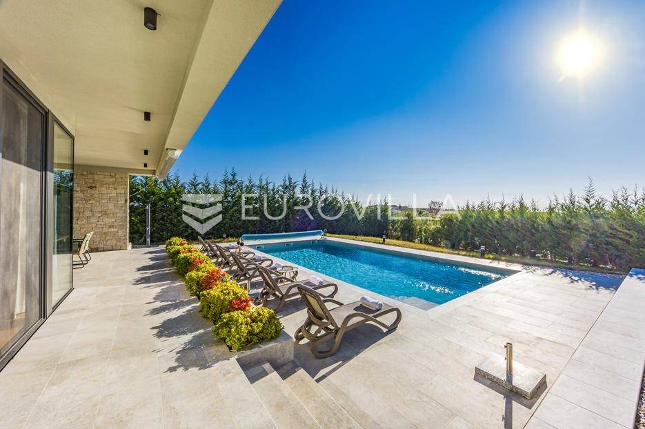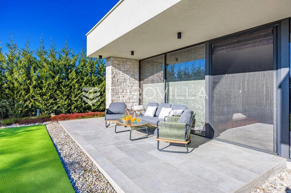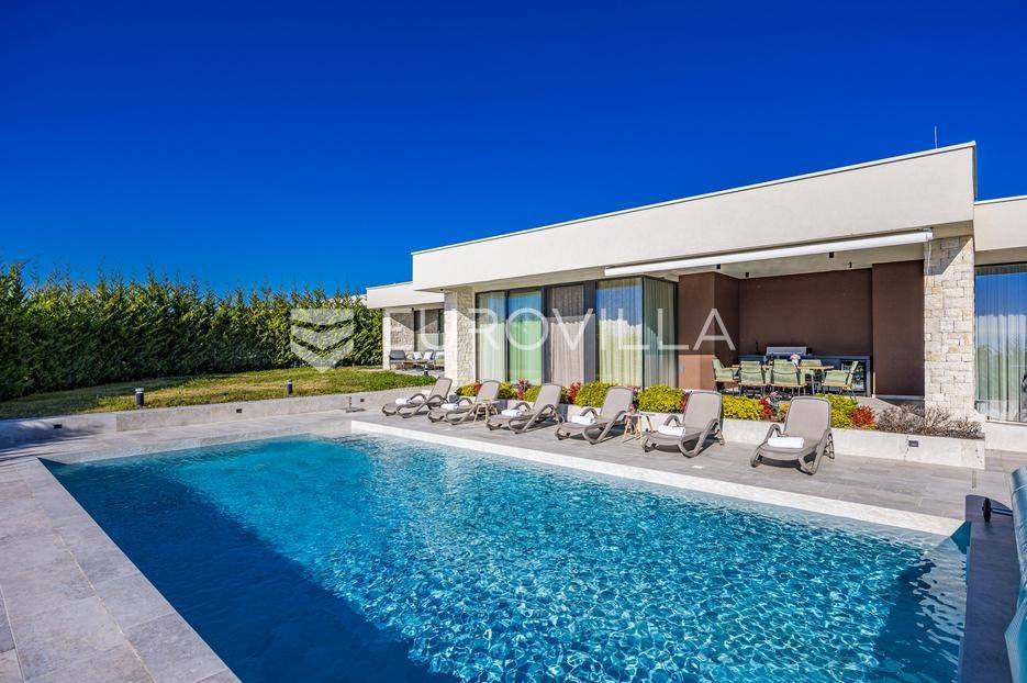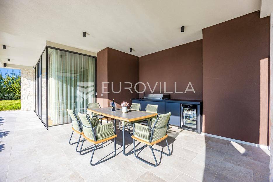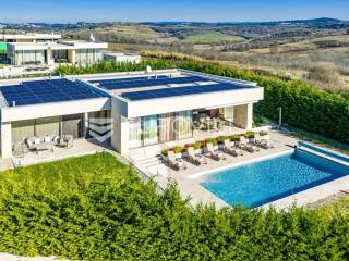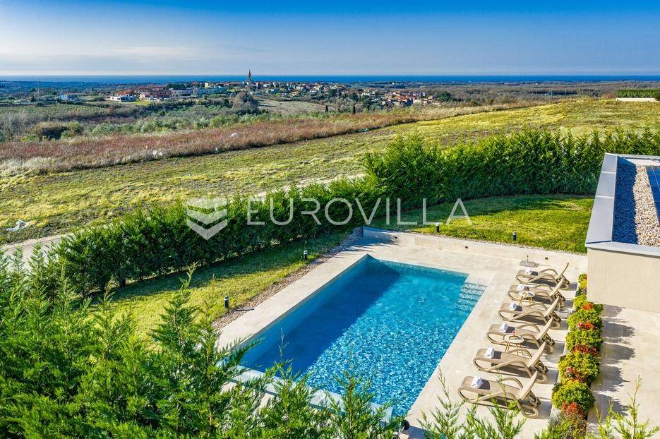 U Brtonigli, u srcu prekrasne Istre, ova ekskluzivna moderna vila predstavlja vrhunac suvremenog luksuza i udobnosti. S impresivnih 341 m² površine vile i prostranom okućnicom od 760 m², dizajnirana je za one koji cijene eleganciju i opuštanje. Vila oduševljava već na prvi pogled svojim panoramskim pogledom na more koji se pruža s njezinih elegantnih terasa.Unutrašnjost vile odiše modernim dizajnom i profinjenim namještajem. Prostrani open space koncept spaja elegantnu kuhinju s otokom, idealnu za kulinarske užitke, i raskošan dnevni boravak. Velike staklene stijene osiguravaju obilje prirodnog svjetla i otvaraju prekrasan pogled na vanjski bazen i hortikulturno uređeni vrt, stvarajući savršeno okruženje za opuštanje. Vila raspolaže s tri udobne spavaće sobe te dva moderno opremljena kupatila, osiguravajući privatnost i komfor za sve ukućane.Za potpuni doživljaj opuštanja, ova nekretnina obuhvaća i privatnu wellness oazu. Prepustite se trenucima mira u finskoj sauni ili opuštajućem jacuzziju. Vanjska oaza nudi prostran, blistavi bazen, idealan za osvježenje tijekom toplih dana, okružen mediteranskim zelenilom i pomno uređenim vrtom koji pruža savršeno mjesto za uživanje u prirodi i privatnosti.Brtonigla, poznata i kao "grad vina i maslinovog ulja", idealna je lokacija za ovu vilu. Kombinira mir i autentični istarski šarm malog mjesta s blizinom predivnih plaža, živahnih istarskih gradića i bogate gastronomske ponude. Nudi brojne mogućnosti za rekreaciju i istraživanje, a istovremeno pruža utočište od svakodnevne gužve.Ova vila predstavlja savršenu priliku za one koji traže luksuznu nekretninu za odmor ili stalan boravak u Istri, kombinirajući eleganciju, vrhunske sadržaje i neponovljiv pogled. Ne propustite priliku postati vlasnikom ove izuzetne oaze mira i ljepote.Za sve dodatne informacije stojimo vam na raspolaganju.... Više na eurovilla.hr, ID: 966498