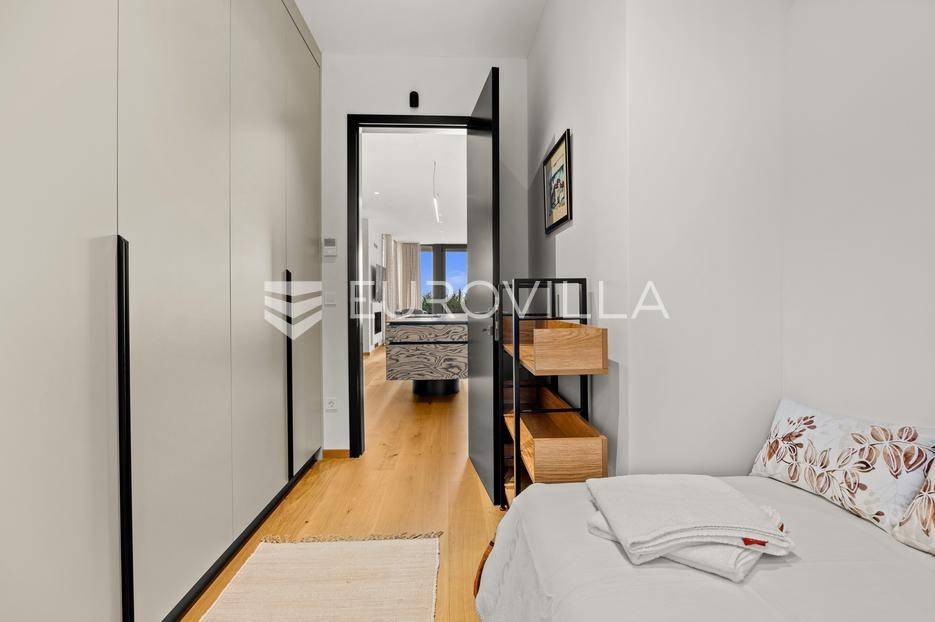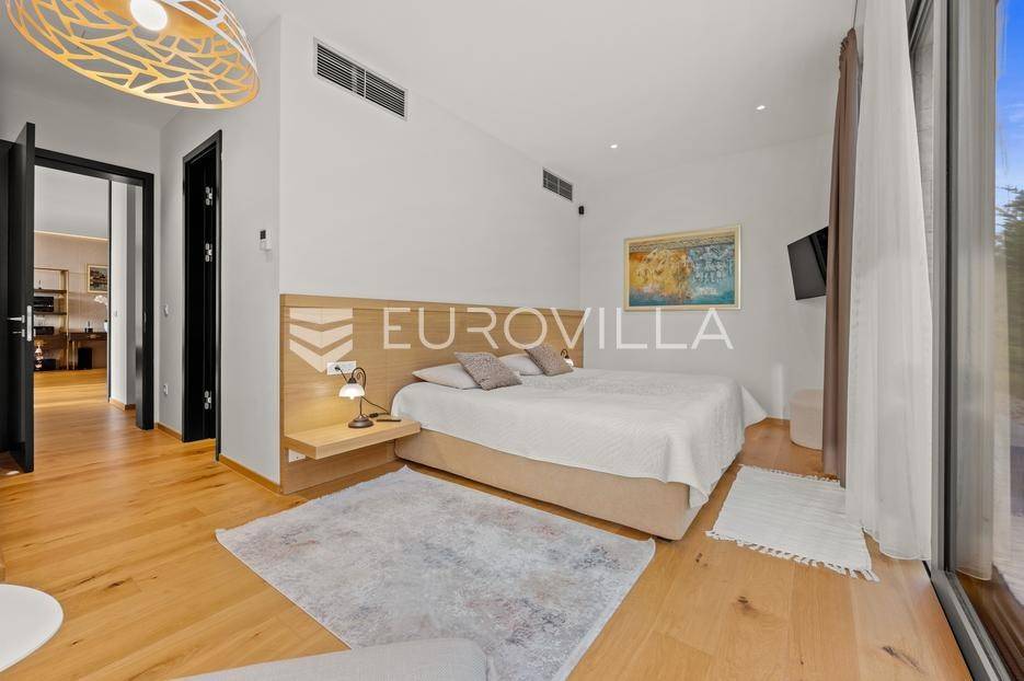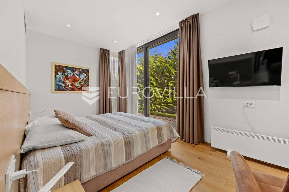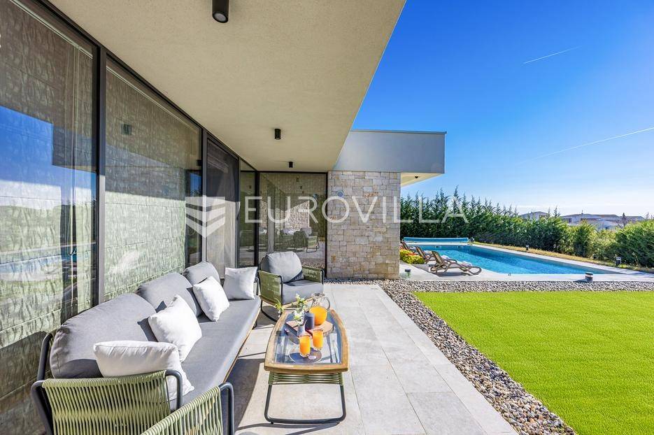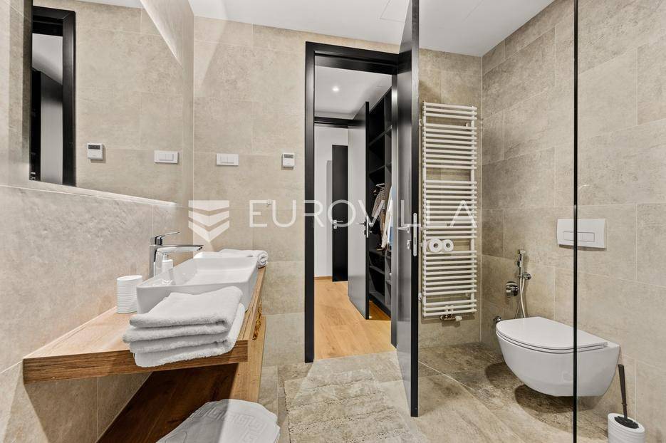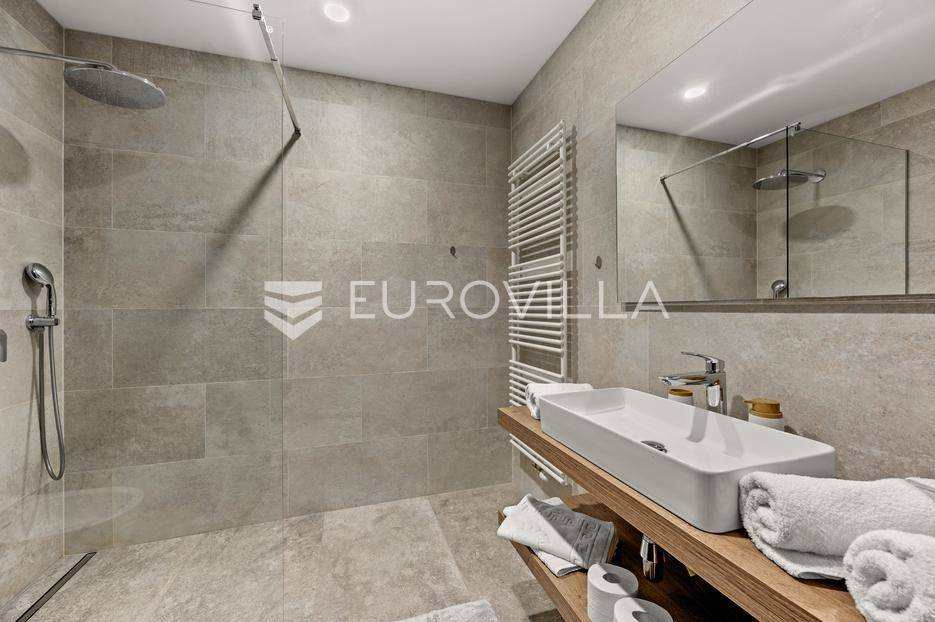 U Brtonigli, u srcu prekrasne Istre, ova ekskluzivna moderna vila predstavlja vrhunac suvremenog luksuza i udobnosti. S impresivnih 341 m² površine vile i prostranom okućnicom od 760 m², dizajnirana je za one koji cijene eleganciju i opuštanje. Vila oduševljava već na prvi pogled svojim panoramskim pogledom na more koji se pruža s njezinih elegantnih terasa.Unutrašnjost vile odiše modernim dizajnom i profinjenim namještajem. Prostrani open space koncept spaja elegantnu kuhinju s otokom, idealnu za kulinarske užitke, i raskošan dnevni boravak. Velike staklene stijene osiguravaju obilje prirodnog svjetla i otvaraju prekrasan pogled na vanjski bazen i hortikulturno uređeni vrt, stvarajući savršeno okruženje za opuštanje. Vila raspolaže s tri udobne spavaće sobe te dva moderno opremljena kupatila, osiguravajući privatnost i komfor za sve ukućane.Za potpuni doživljaj opuštanja, ova nekretnina obuhvaća i privatnu wellness oazu. Prepustite se trenucima mira u finskoj sauni ili opuštajućem jacuzziju. Vanjska oaza nudi prostran, blistavi bazen, idealan za osvježenje tijekom toplih dana, okružen mediteranskim zelenilom i pomno uređenim vrtom koji pruža savršeno mjesto za uživanje u prirodi i privatnosti.Brtonigla, poznata i kao "grad vina i maslinovog ulja", idealna je lokacija za ovu vilu. Kombinira mir i autentični istarski šarm malog mjesta s blizinom predivnih plaža, živahnih istarskih gradića i bogate gastronomske ponude. Nudi brojne mogućnosti za rekreaciju i istraživanje, a istovremeno pruža utočište od svakodnevne gužve.Ova vila predstavlja savršenu priliku za one koji traže luksuznu nekretninu za odmor ili stalan boravak u Istri, kombinirajući eleganciju, vrhunske sadržaje i neponovljiv pogled. Ne propustite priliku postati vlasnikom ove izuzetne oaze mira i ljepote.Za sve dodatne informacije stojimo vam na raspolaganju.... Više na eurovilla.hr, ID: 966498