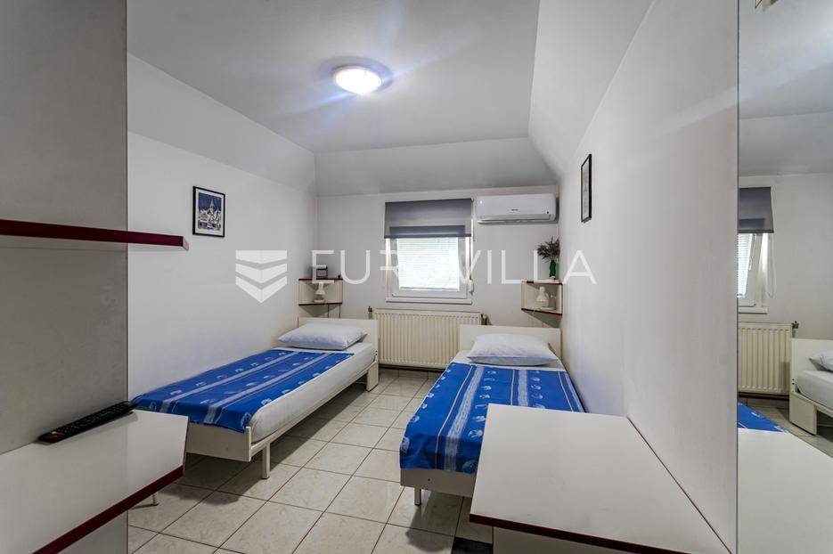 Varaždin, Centar, stambeno-poslovna kuća s uređenim dvorištem i pet privatnih parkirnih mjesta ispred objekta.Prizemlje se sastoji od ulaznog hodnika, open-space dnevnog boravka s blagovaonicom i kuhinjom, prostrane spavaće sobe, kupaonice s tušem te dodatnog WC-a za goste. U sklopu prizemlja nalaze se i ostava/praonica, zatvorena terasa s dodatnom prostorijom za odmor, kao i direktan ulaz u garažu. Iz terase se izlazi u uređeno dvorište s roštiljem. Objekt posjeduje i podrum površine cca 15 m².U potkrovlju, koje ima zaseban vanjski ulaz i može funkcionirati kao neovisna stambena jedinica, nalazi se šest potpuno opremljenih spavaćih soba, svaka sa svojom kupaonicom, klima uređajem i TV-om, uz zajedničku čajnu kuhinju i dodatni WC.Nekretnina je etažirana, ima urednu dokumentaciju te je spremna za financiranje putem kredita. Grijanje je centralno etažno na plin, a objekt je opremljen s ukupno devet klima uređaja i ALU stolarijom. Priključeni su svi komunalni priključci (struja, voda, kanalizacija).Nalazi se na iznimno atraktivnoj lokaciji, u neposrednoj blizini svih važnih sadržaja: škola, vrtića, trgovina, zdravstvenih ustanova i javnog prijevoza, što ovu kuću čini izuzetno praktičnom za život, ali i atraktivnom za nastavak turističke djelatnosti. Vlasnici su spremni novog kupca povezati sa svojim stalnim gostima i poslovnim kontaktima, čime se dodatno osigurava kontinuitet i isplativost ulaganja.Za detaljne informacije slobodno nas kontkatirajte.... Više na eurovilla.hr, ID: 978004