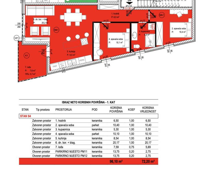 U mirnom i urbanom naselju Crno u Zadru, predstavljamo ekskluzivan suvremeni stambeni projekt koji savršeno spaja luksuz modernog življenja s osjećajem privatnosti. Ova elegantna novogradnja, idealna za mlade obitelji, nudi vrhunsku kvalitetu u jednoj od najpoželjnijih zona grada. Zgrada se sastoji od samo šest pomno dizajniranih stambenih jedinica, osiguravajući intimnu atmosferu.Ovaj prostrani stan na prvom katu, ukupne korisne površine 85,91 m², ističe se iznimnom funkcionalnošću i promišljenim rasporedom. Sastoji se od tri udobne spavaće sobe, prostranog dnevnog boravka elegantno povezanog s blagovaonicom, te moderne kuhinje. Dodatnu udobnost pružaju dvije luksuzno uređene kupaonice i zaseban WC. Poseban dragulj nekretnine je privatna krovna terasa koja pruža očaravajući pogled na grad, idealna za opuštanje i druženja.Kvaliteta gradnje i opreme na najvišoj je razini. Stan je opremljen podnim grijanjem, visokokvalitetnom PVC stolarijom s komarnicima, te protupožarnim i protuprovalnim ulaznim vratima. Korišteni su samo najkvalitetniji materijali i primijenjen je moderan dizajn koji odiše elegancijom. Uz stan dolaze i četiri privatna parkirna mjesta, što je izuzetna pogodnost.Ova nekretnina predstavlja savršeno mjesto za obiteljski život i izvanrednu dugoročnu investiciju u Zadru. Ne propustite priliku postati vlasnikom dijela ove ekskluzivne priče.Za sva dodatna pitanja i dogovor oko razgledavanja, slobodno nas kontaktirajte.... Više na eurovilla.hr, ID: 995022