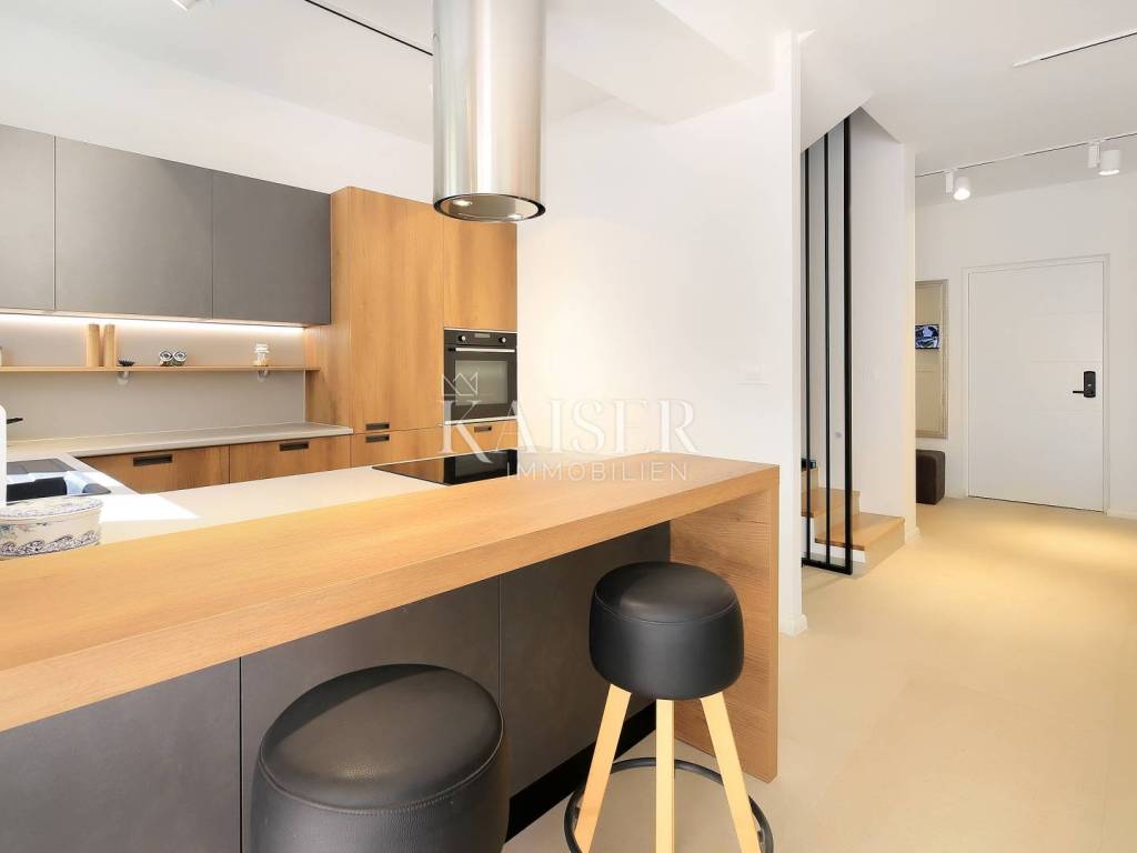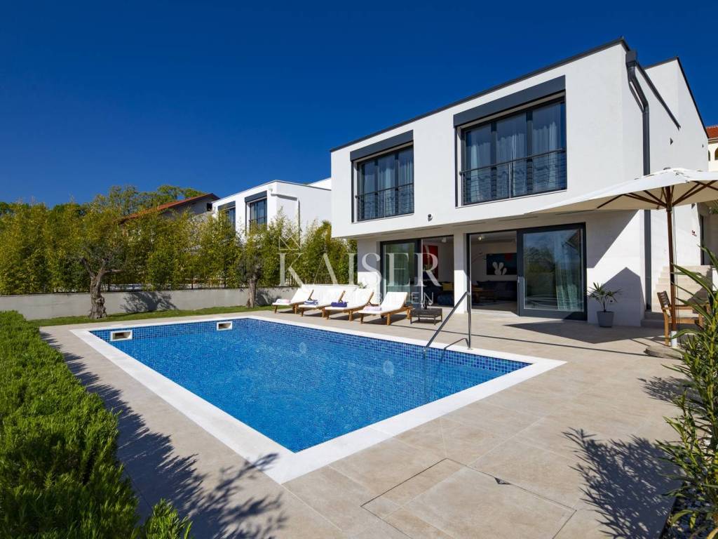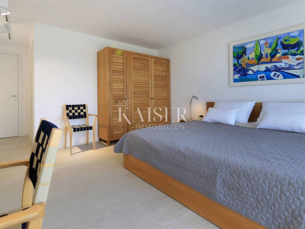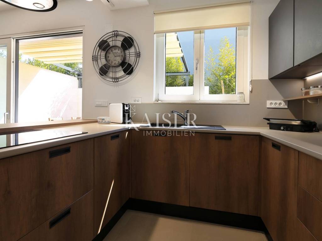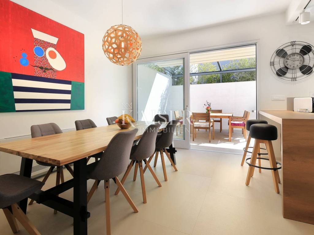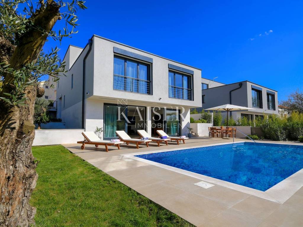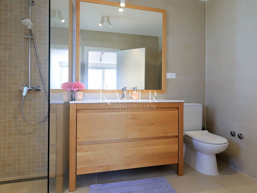 Kaiser Immobilien presents a modern villa with a total living area of 211.95 m², located on a landscaped plot of 453 m², with a swimming pool and a sea view that extends from the first floor. This elegant property with a contemporary design extends over two floors – ground floor and first floor and two mezzanine floors. It perfectly combines luxury, functionality and top quality construction.