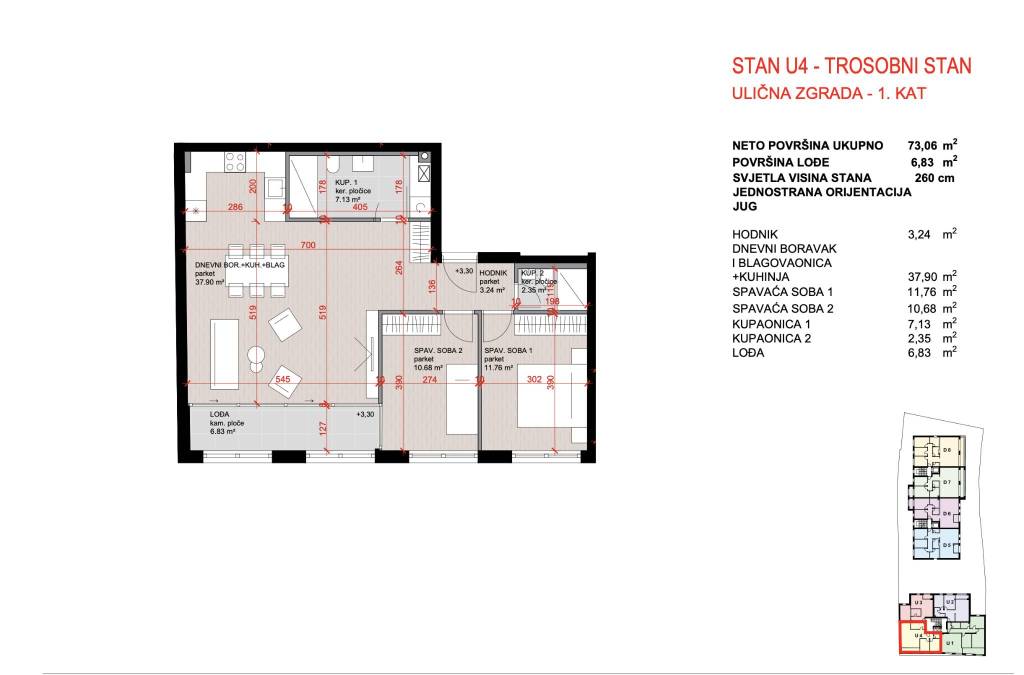Zagreb, Maksimirska ulica, “Dva goluba”, u neposrednoj blizini Kvaternikovog trga, luksuzan trosoban stan u novogradnji smješten na prvom katu moderne stambeno-poslovne zgrade.Projekt se nalazi u tramvajskoj zoni, na jednoj od najatraktivnijih lokacija šireg centra grada, s izvrsnom prometnom povezanošću i svim sadržajima potrebnima za kvalitetan svakodnevni život u neposrednoj blizini. Zgrada se sastoji od ukupno 30 stanova te poslovnih prostora u prizemlju, projektirana i građena prema visokim standardima suvremene gradnje.Stan je smješten u uličnoj zgradi na prvom katu te ima ukupnu površinu 73,06 m². Sastoji se od ulaznog hodnika, prostranog dnevnog boravka s kuhinjom i blagovaonicom s izlazom na loggiu, dvije spavaće sobe i dvije kupaonice. Funkcionalan i moderan raspored pruža visoku razinu komfora i ugodan obiteljski život.Uz stan pripada ostava te garažno parkirno mjesto u podzemnoj garaži, koji se plaćaju dodatno 55.000 €.Planirano useljenje predviđeno je za ožujak 2028. godine.Ostale informacije na upit.... Više na eurovilla.hr, ID: 295240