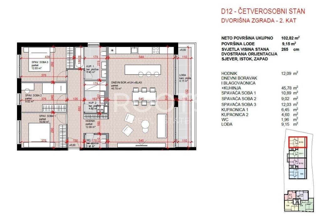 STAN D-10, četverosoban stan na drugom katu, ukupno 110 m2 neto prodajne površine.