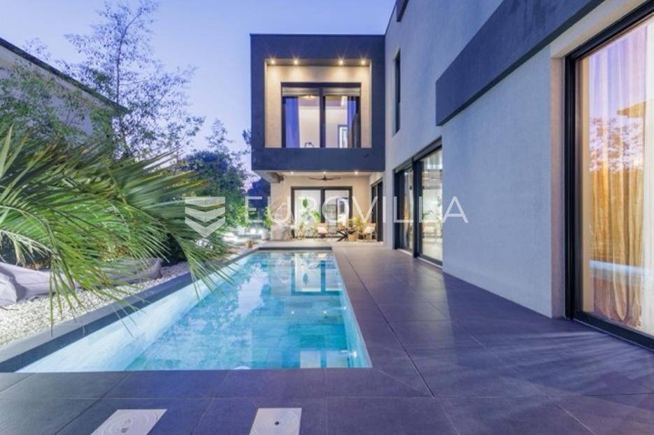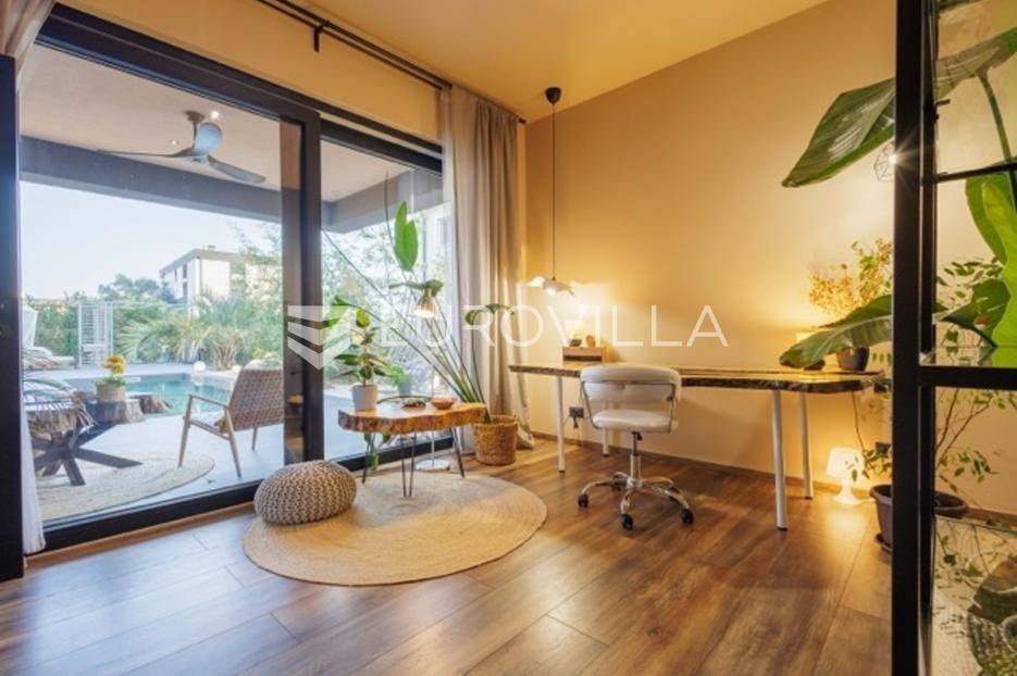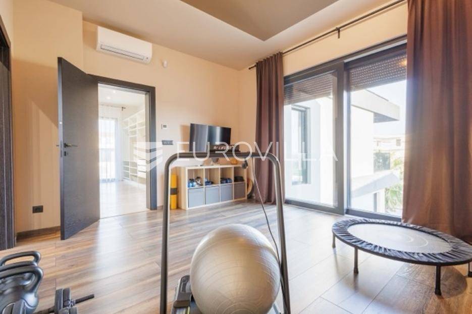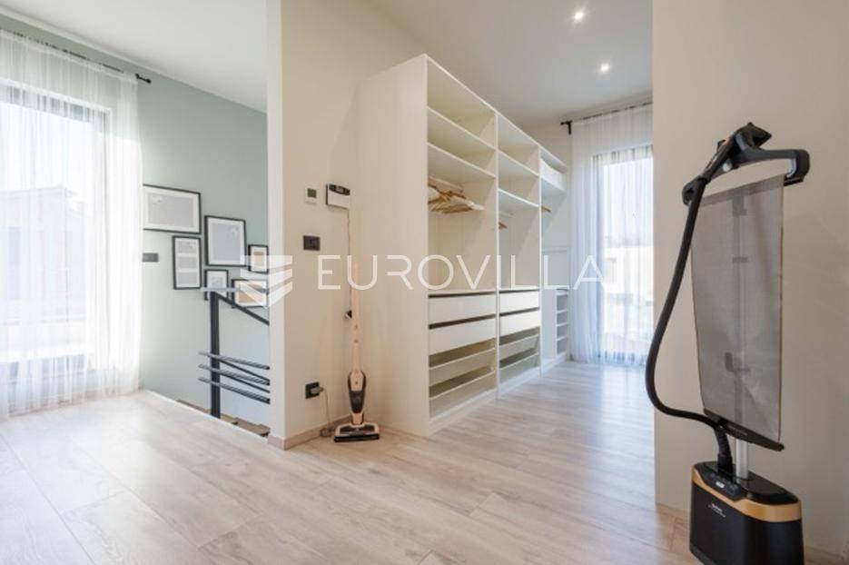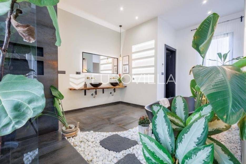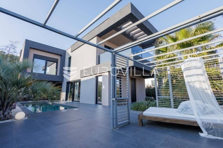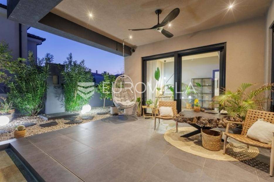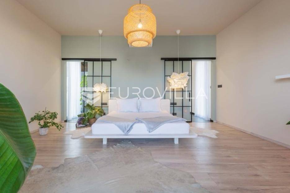 U Premanturi na samom jugu Istarskog poluotoka smjestila se ova prekrasna jedinstvena vila na uređenoj okućnici od 710 m2.Proteže se na dvije etaže. U prizemlju vile dominira veliki dnevni boravak pomno dizajniran. Tople boje, unikatni dijelovi namještaja, rasvjeta, kamin u centralnom dijelu prostora, velike staklene stijenke s pogledom i izlazom na bazen pružaju osjećaj topline i doma. U prizemlju se još nalazi komforna kuhinja, spavaća soba, toalet, ostava, tehnička soba, izlaz na veliki stražnji dvorišni dio.Unutrašnjim elegantnim stubištem penje se na kat gdje se nalaze dvije spavaće sobe. Velika spavaća soba je pravi spoj elegancije i komfora, svjetla i prozračna s velikom natkrivenom terasom i pogledom u prirodu. Velika kupaona je stopljena s interijerom sobe te predstavlja pravu zelenu oazu. Druga spavaća soba modernog dizajna također ima svoju vlastitu kupaonu.Sav namještaj i opremljenost vile je mahom iz Njemačke, Italije i Češke.U cijeloj je vili podno grijanje - sistem toplinskih pumpi, dok svaka soba ima svoj klima uređaj.U dvorišnom dijelu nalazi se veliki roštilj, komforna terasa za druženje i odmor. Zeleno raslinje pruža privatnost, dok moderna rasvjeta u večernjim satima daje čarobnu notu samoj vili. Vila ima video nadzor.Ulazni dvorišni dio pruža mogućnost parkinga za četiri vozila.Ova jedinstvena vila u Premanturi prava je rijetkost na tržištu te nam se slobodno s povjerenjem obratite za više informacija.... Više na eurovilla.hr, ID: 518603