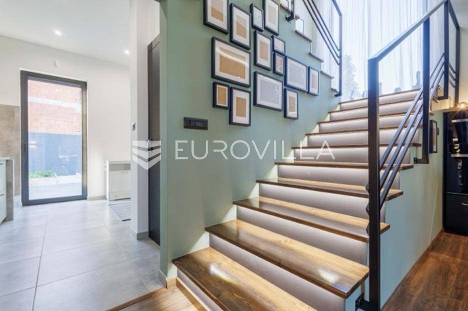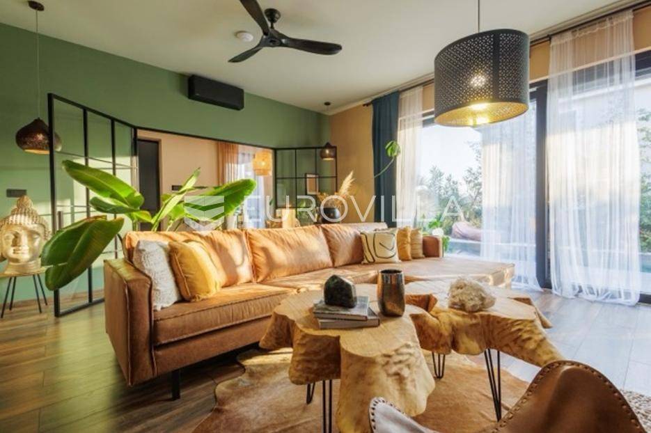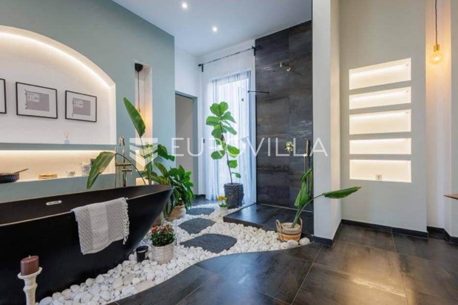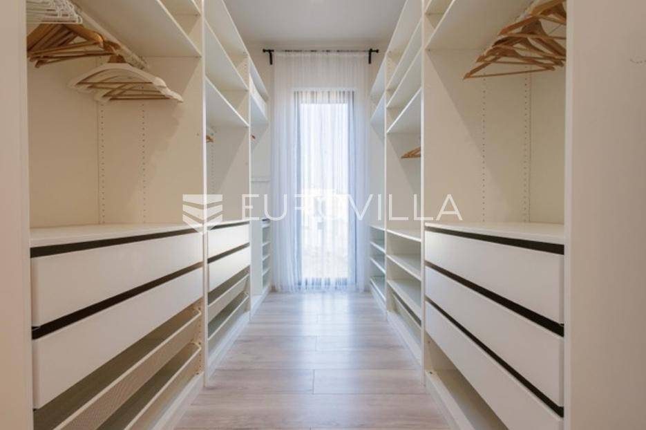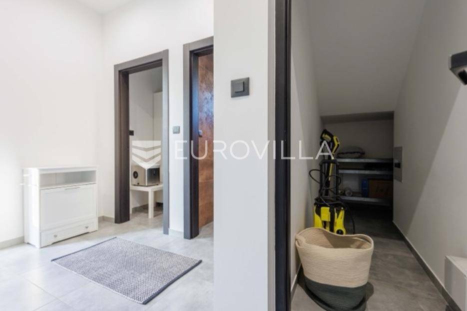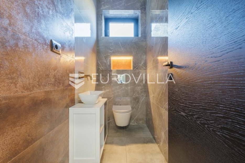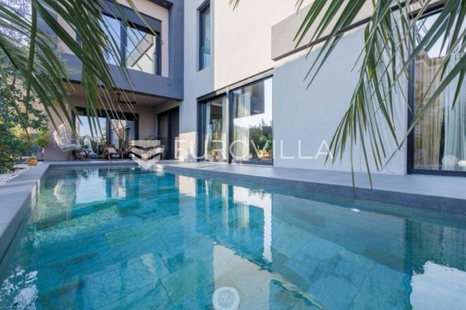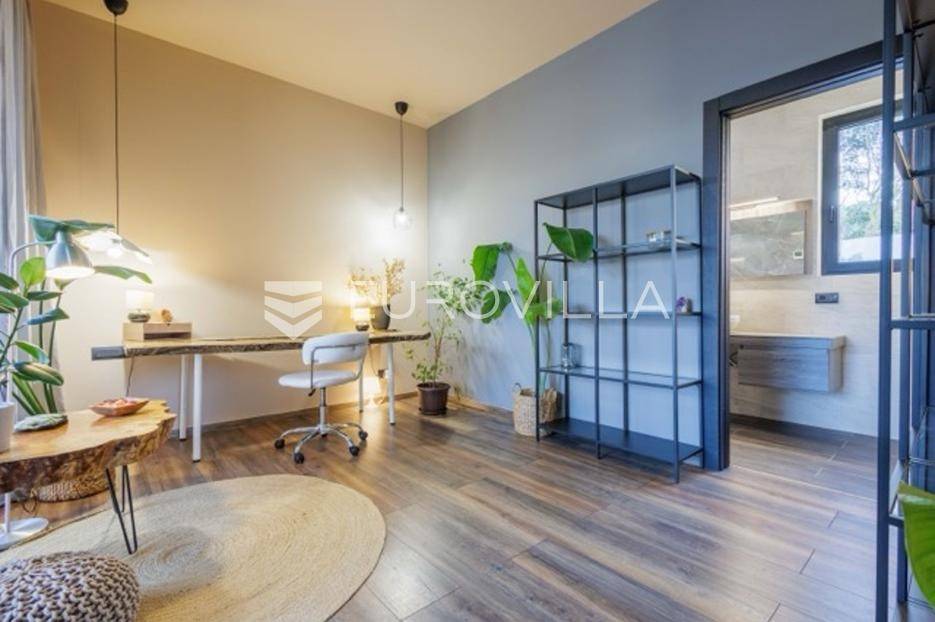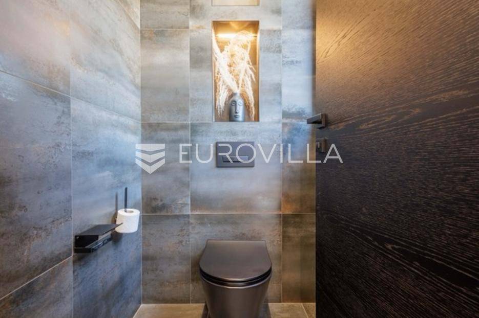 U Premanturi na samom jugu Istarskog poluotoka smjestila se ova prekrasna jedinstvena vila na uređenoj okućnici od 710 m2.Proteže se na dvije etaže. U prizemlju vile dominira veliki dnevni boravak pomno dizajniran. Tople boje, unikatni dijelovi namještaja, rasvjeta, kamin u centralnom dijelu prostora, velike staklene stijenke s pogledom i izlazom na bazen pružaju osjećaj topline i doma. U prizemlju se još nalazi komforna kuhinja, spavaća soba, toalet, ostava, tehnička soba, izlaz na veliki stražnji dvorišni dio.Unutrašnjim elegantnim stubištem penje se na kat gdje se nalaze dvije spavaće sobe. Velika spavaća soba je pravi spoj elegancije i komfora, svjetla i prozračna s velikom natkrivenom terasom i pogledom u prirodu. Velika kupaona je stopljena s interijerom sobe te predstavlja pravu zelenu oazu. Druga spavaća soba modernog dizajna također ima svoju vlastitu kupaonu.Sav namještaj i opremljenost vile je mahom iz Njemačke, Italije i Češke.U cijeloj je vili podno grijanje - sistem toplinskih pumpi, dok svaka soba ima svoj klima uređaj.U dvorišnom dijelu nalazi se veliki roštilj, komforna terasa za druženje i odmor. Zeleno raslinje pruža privatnost, dok moderna rasvjeta u večernjim satima daje čarobnu notu samoj vili. Vila ima video nadzor.Ulazni dvorišni dio pruža mogućnost parkinga za četiri vozila.Ova jedinstvena vila u Premanturi prava je rijetkost na tržištu te nam se slobodno s povjerenjem obratite za više informacija.... Više na eurovilla.hr, ID: 518603