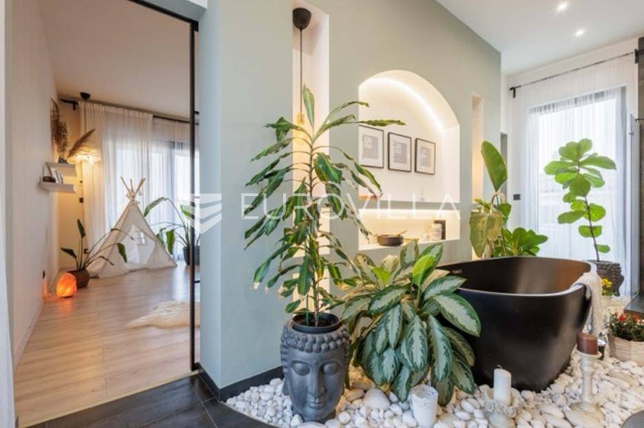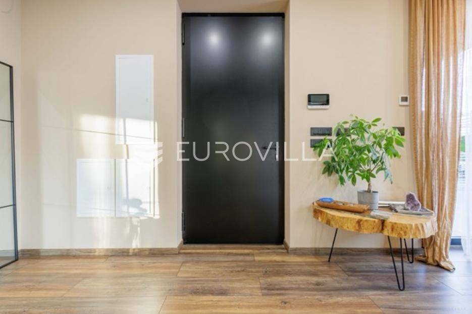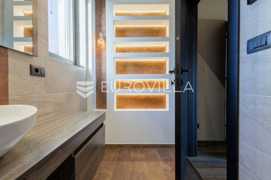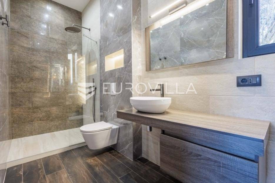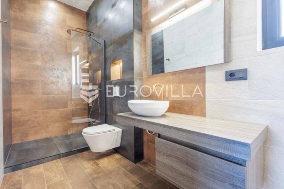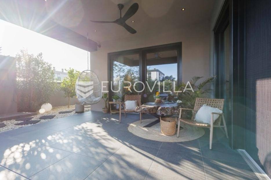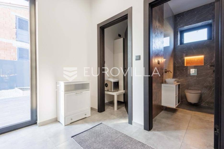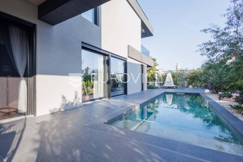 U Premanturi na samom jugu Istarskog poluotoka smjestila se ova prekrasna jedinstvena vila na uređenoj okućnici od 710 m2.Proteže se na dvije etaže. U prizemlju vile dominira veliki dnevni boravak pomno dizajniran. Tople boje, unikatni dijelovi namještaja, rasvjeta, kamin u centralnom dijelu prostora, velike staklene stijenke s pogledom i izlazom na bazen pružaju osjećaj topline i doma. U prizemlju se još nalazi komforna kuhinja, spavaća soba, toalet, ostava, tehnička soba, izlaz na veliki stražnji dvorišni dio.Unutrašnjim elegantnim stubištem penje se na kat gdje se nalaze dvije spavaće sobe. Velika spavaća soba je pravi spoj elegancije i komfora, svjetla i prozračna s velikom natkrivenom terasom i pogledom u prirodu. Velika kupaona je stopljena s interijerom sobe te predstavlja pravu zelenu oazu. Druga spavaća soba modernog dizajna također ima svoju vlastitu kupaonu.Sav namještaj i opremljenost vile je mahom iz Njemačke, Italije i Češke.U cijeloj je vili podno grijanje - sistem toplinskih pumpi, dok svaka soba ima svoj klima uređaj.U dvorišnom dijelu nalazi se veliki roštilj, komforna terasa za druženje i odmor. Zeleno raslinje pruža privatnost, dok moderna rasvjeta u večernjim satima daje čarobnu notu samoj vili. Vila ima video nadzor.Ulazni dvorišni dio pruža mogućnost parkinga za četiri vozila.Ova jedinstvena vila u Premanturi prava je rijetkost na tržištu te nam se slobodno s povjerenjem obratite za više informacija.... Više na eurovilla.hr, ID: 518603
