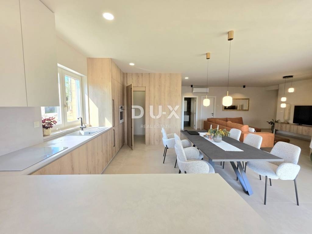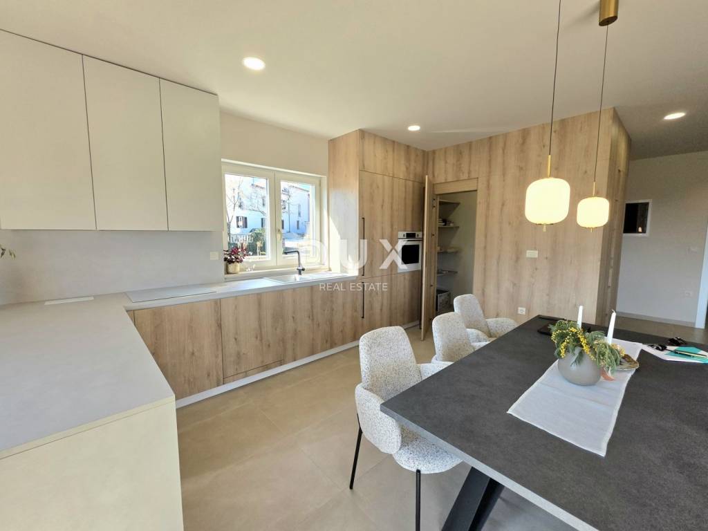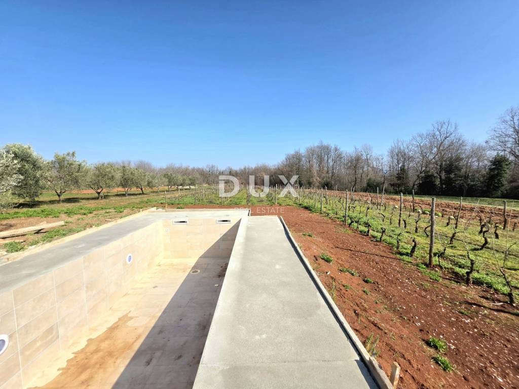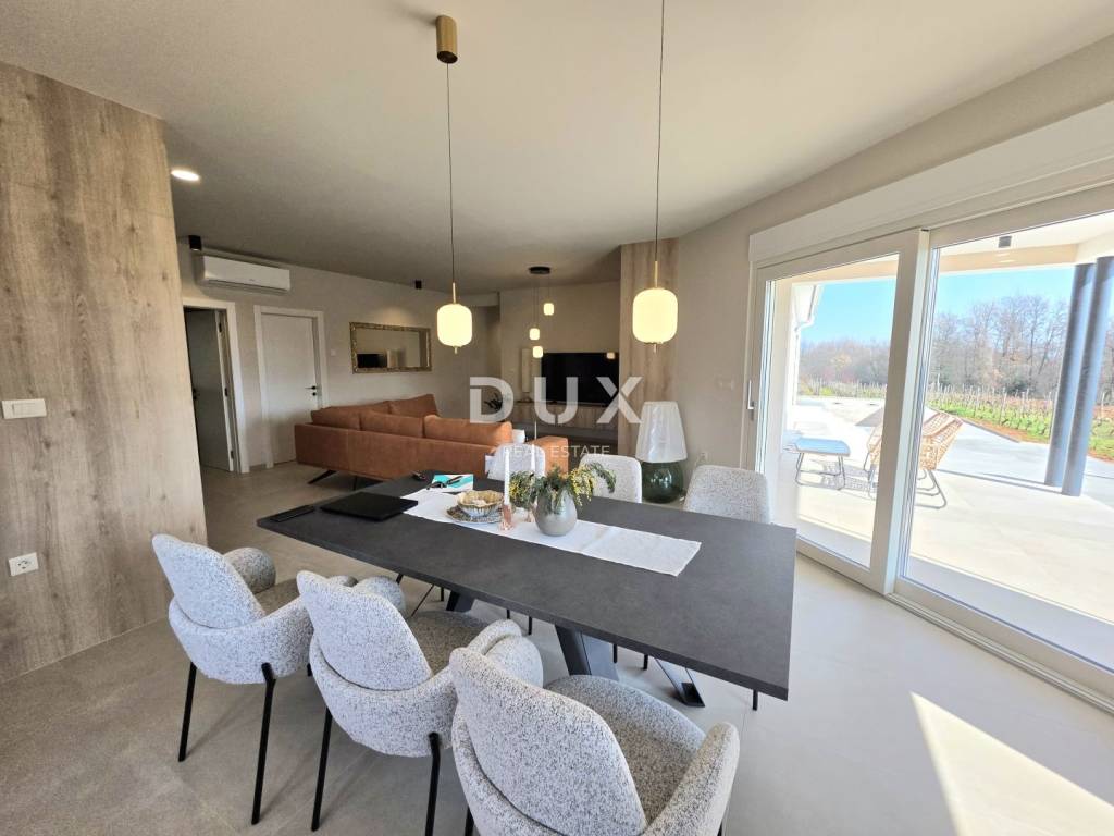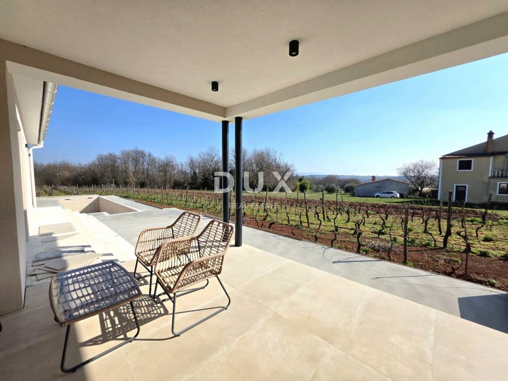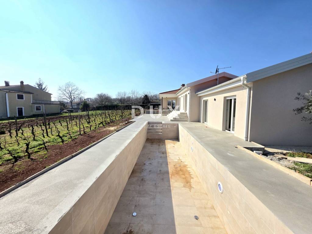 In a quiet and well-maintained settlement near Barban, surrounded by greenery and well-maintained vineyards, this new private ground floor villa is located, which represents the perfect combination of modern luxury and authentic Istrian ambience. This is a property built in 2026, designed for those looking for complete privacy, spaciousness and impeccable quality of living whether for family life or as an exclusive investment.