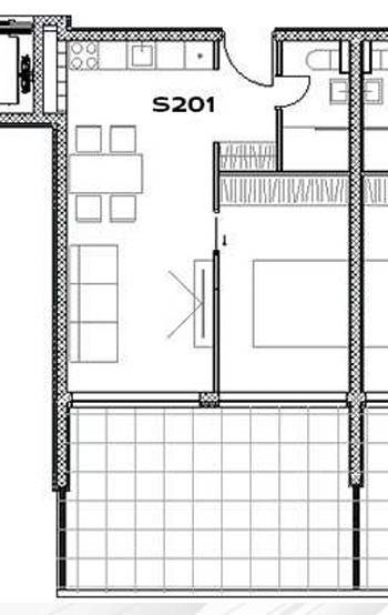 Consta de varias unidades residenciales modernas, entre las que destacamos el apartamento de un dormitorio S201.