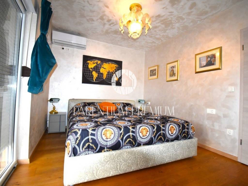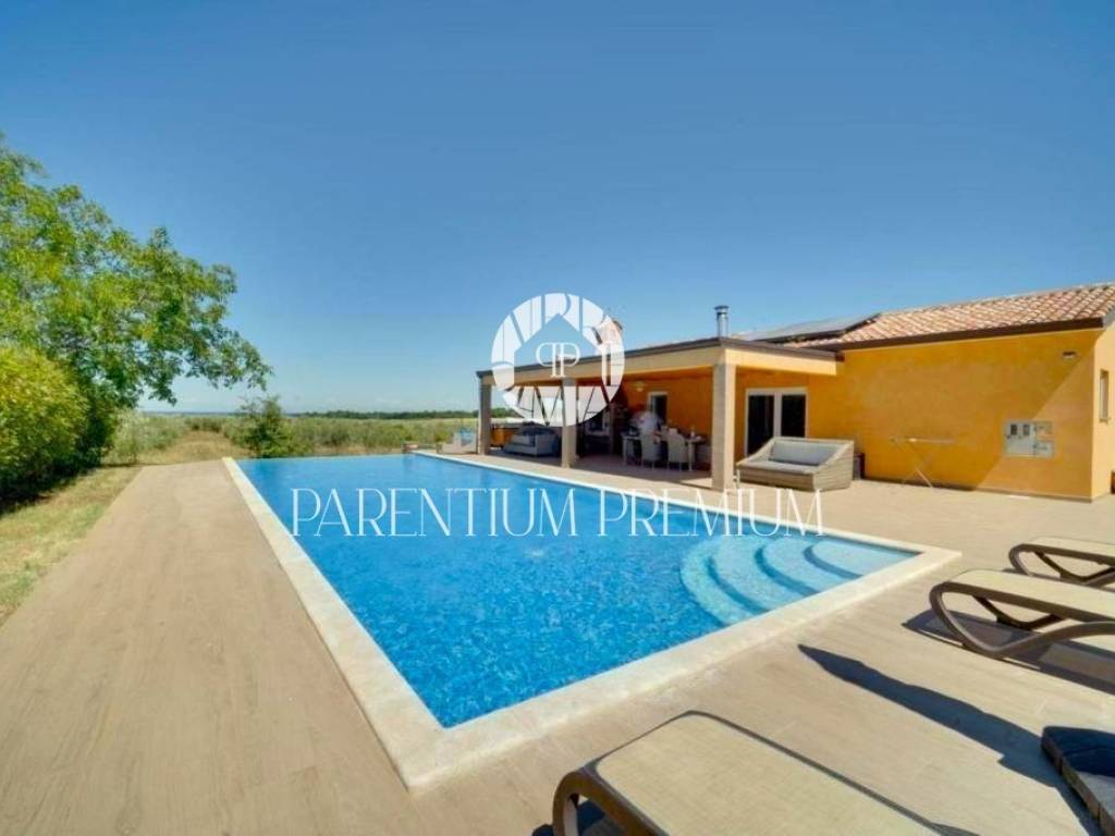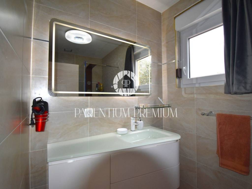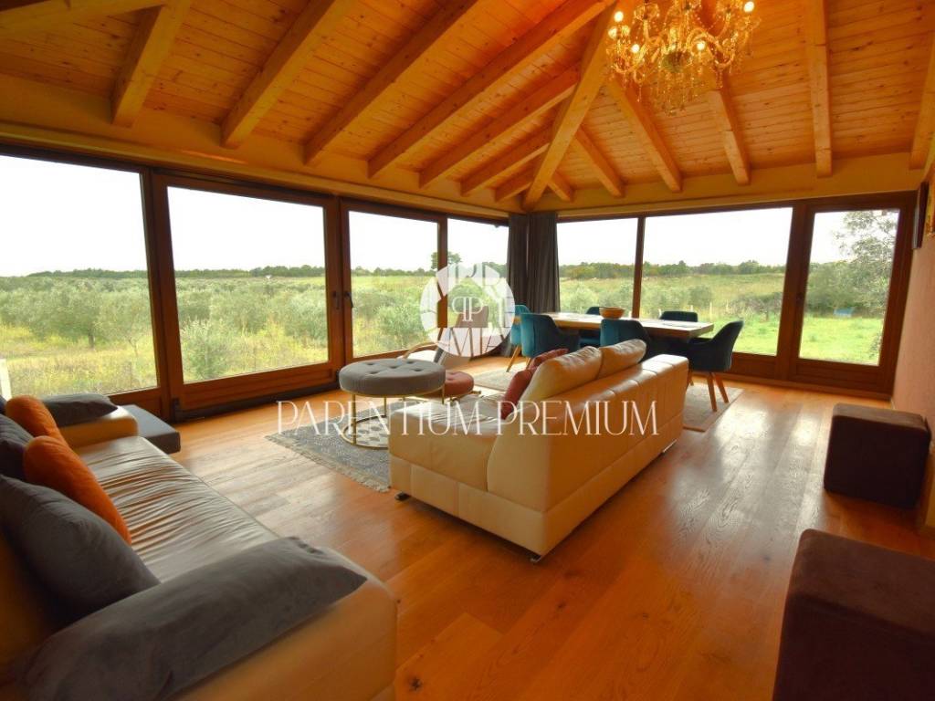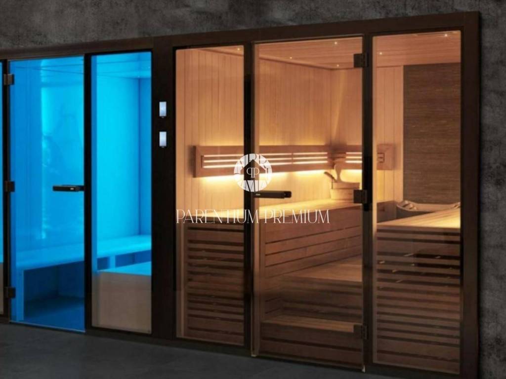The basement reveals a wellness area with a Finnish and Turkish sauna for complete relaxation. Here you will also find a space with its own bathroom that you can adapt to your needs and a practical storage room with a laundry room. The ground floor offers a comfortable living room connected to the kitchen and dining room, spacious bedrooms and luxurious bathrooms. One of the bedrooms has an impressive walk-in closet and a private bathroom with a bathtub. But the greatest jewel of this house is the living area that is surrounded by glass walls that opens in three directions, offering you an unforgettable view of the open sea and endless olive groves, creating picturesque scenes that leave you breathless.