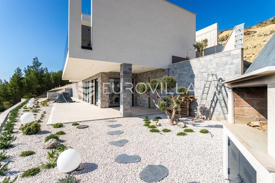 Jesenice, novoizgrađena vila s grijanim bazenom i predivnim otvorenim pogledom na more i otoke.Smještena je na zemljištu površine 520 m², a prostire se na dvije etaže.U prizemlju se nalazi dnevni prostor – open space kuhinja s blagovaonicom i dnevnim boravkom, WC te ostava. Kat je podijeljen na četiri spavaće sobe s pripadajućim kupaonicama te praonicu rublja. Interijer je moderno uređen, a namještaj je pomno biran i izrađen po mjeri.Okućnica, osim grijanog bazena, nudi i tehničku prostoriju, ljetnu kuhinju, roštilj te vanjski WC.Iz svake prostorije pruža se predivan pogled na more i otoke.Za sve dodatne informacije stojimo vam na raspolaganju.... Više na eurovilla.hr, ID: 564041