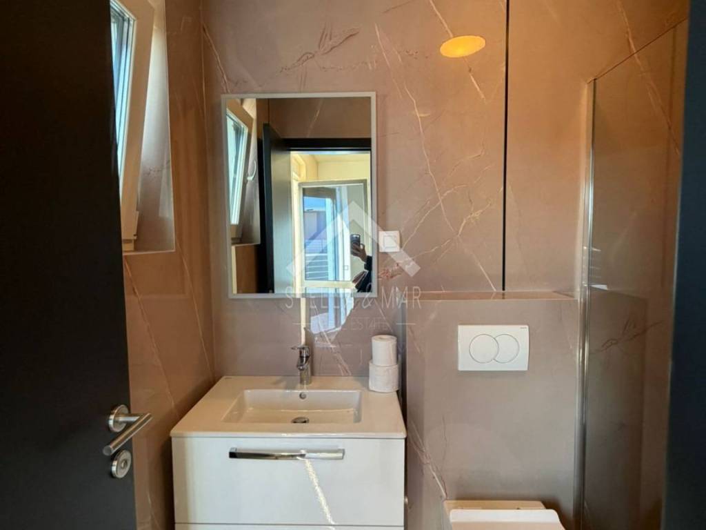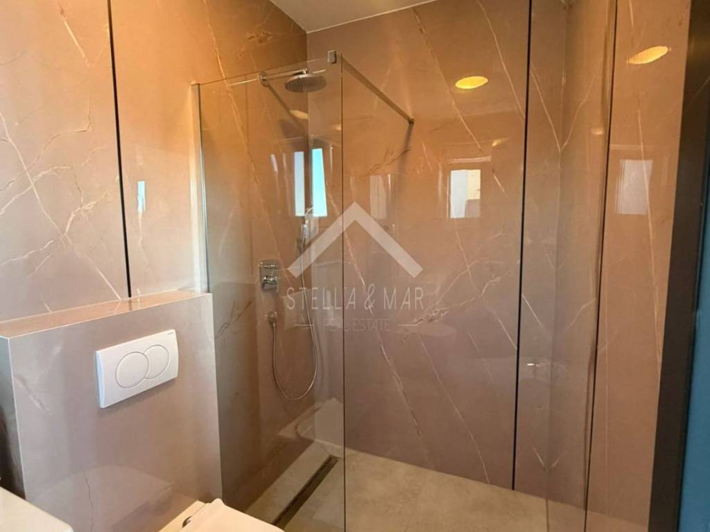 It is located on the second floor of a building with a total of 5 apartment units. It has a spacious living room with kitchen and dining area, three bedrooms, two bathrooms and 4 terraces, two of which are covered and two are uncovered. Each has a sea view. The apartment has a private apartment in each park.