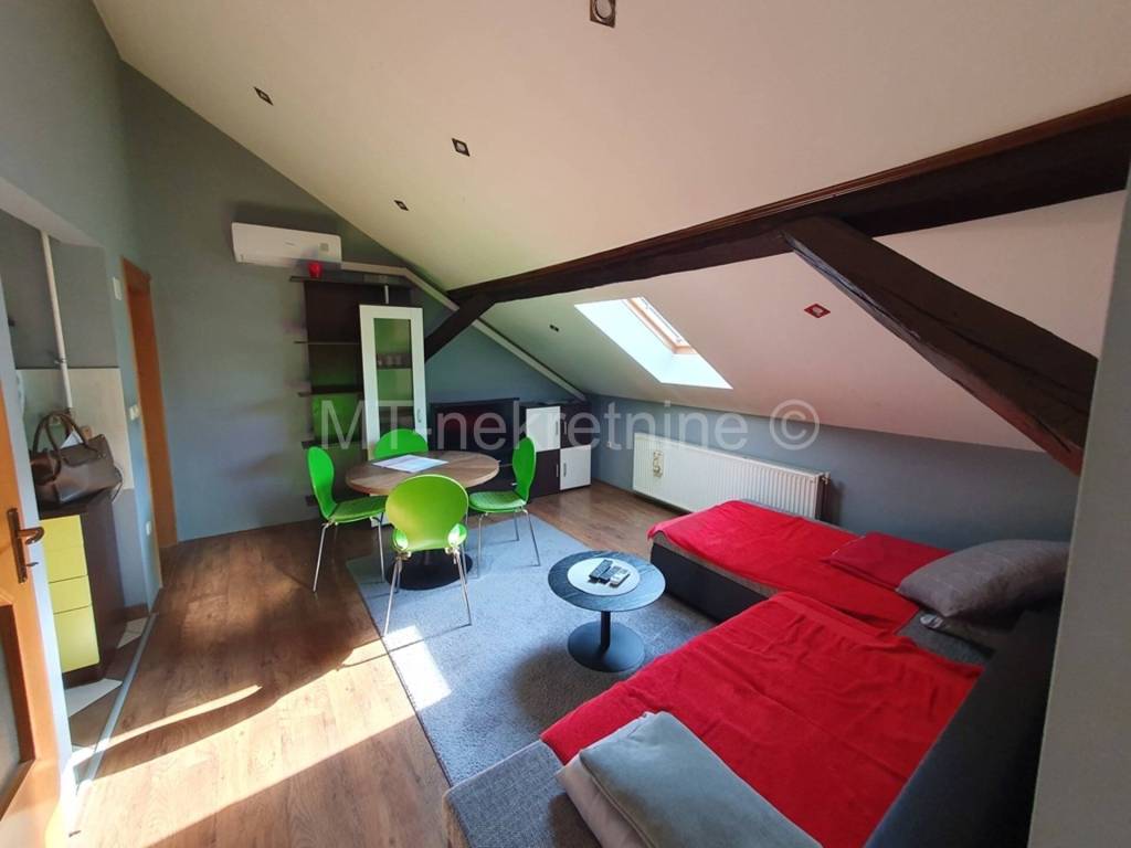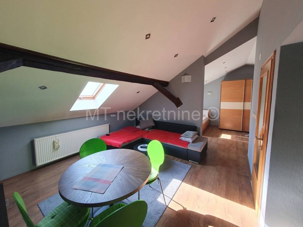 Stan u potkrovlju kuće uređen i useljiv u centru grada površine 46,60 m2. Stan ima jednu spavaću sobu, dnevni boravak sa blagovaonicom, kuhinju, kupaonicu i stubište.