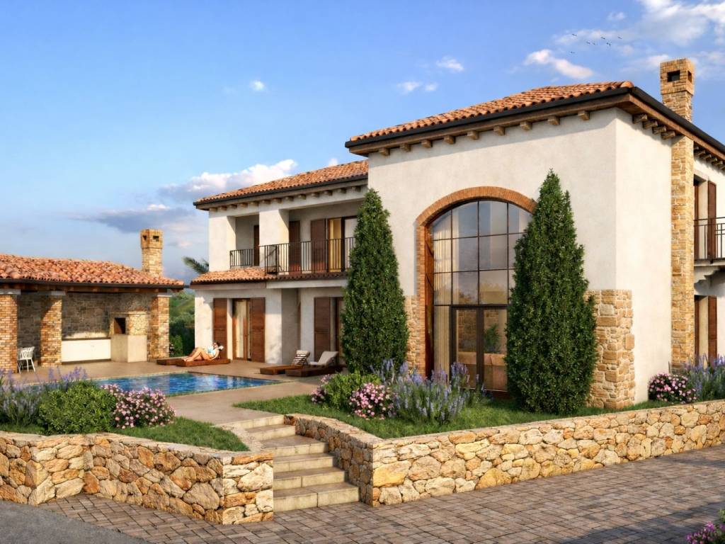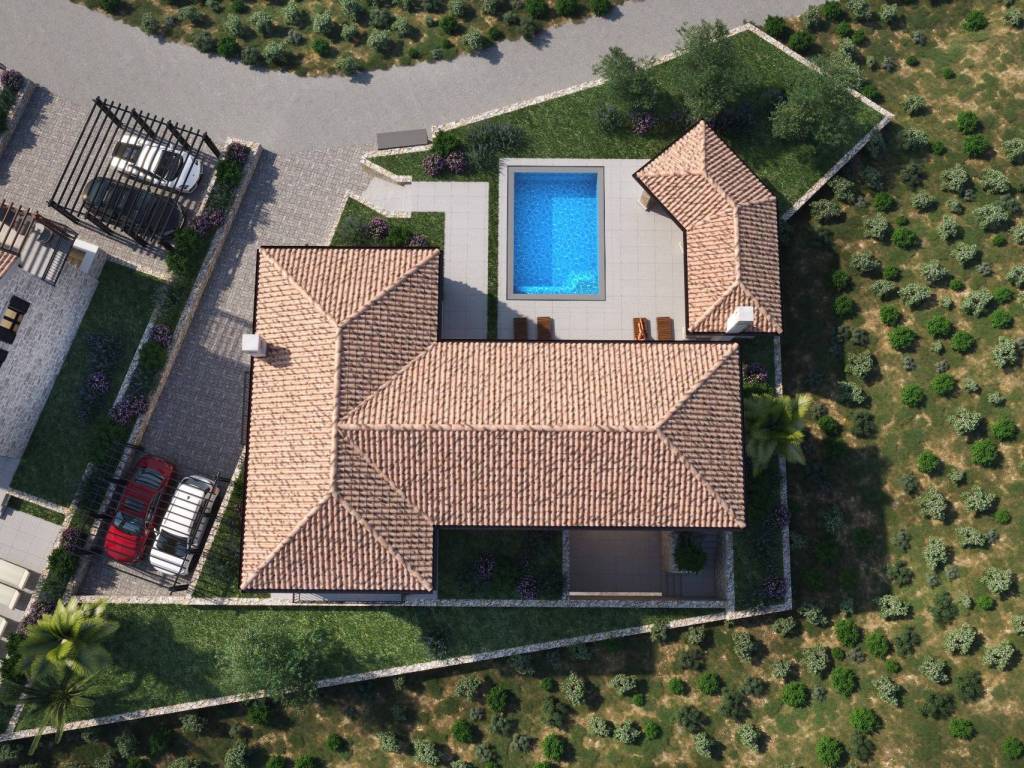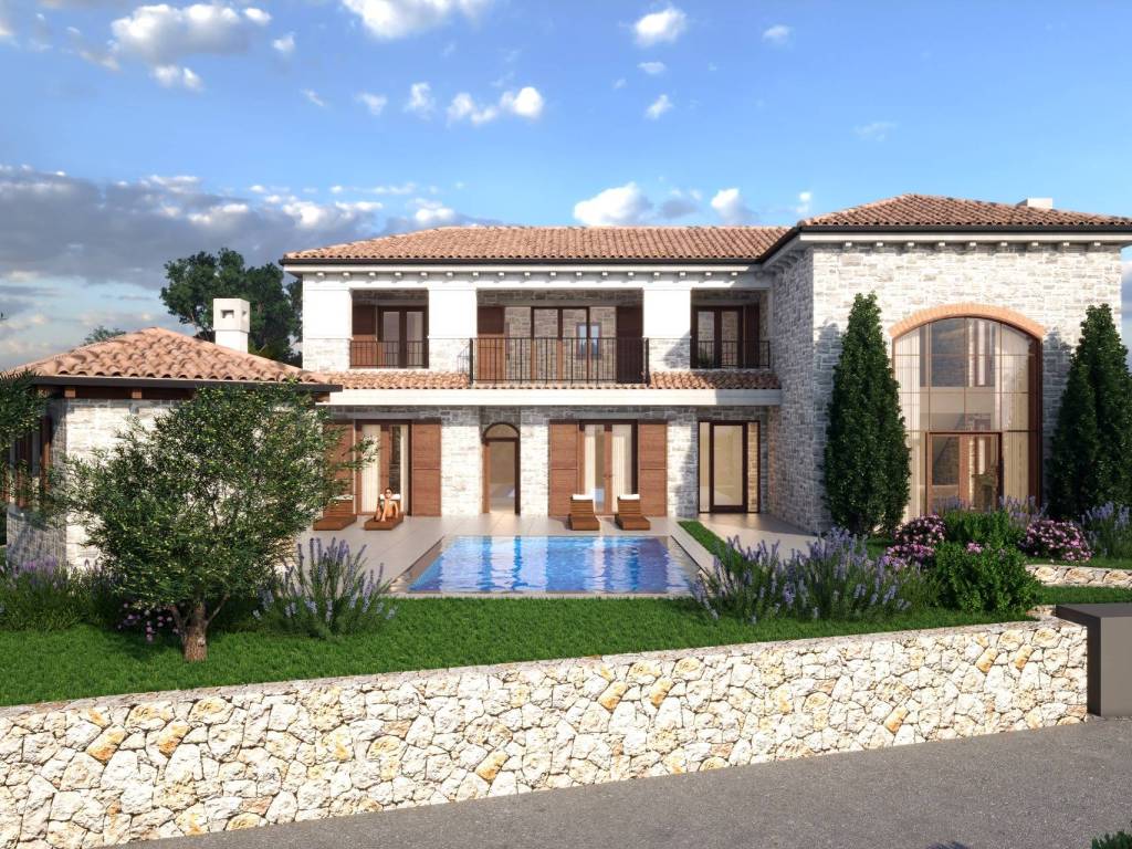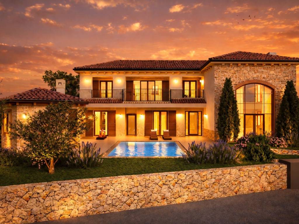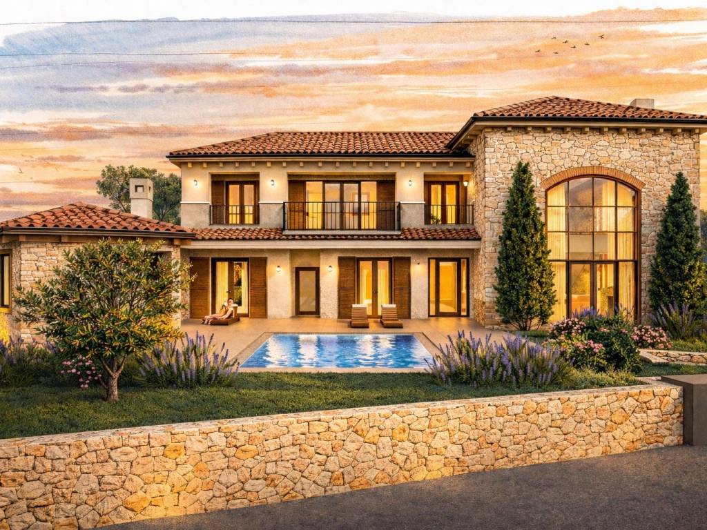 With a total living area of 344.30 m², the villa is conceived as a contemporary Mediterranean residence rooted in proportion, material authenticity, and architectural restraint. Natural stone façades, terracotta roof tiles, and calm, balanced volumes reflect the traditional building language of the northern Adriatic while supporting modern standards of comfort and living.