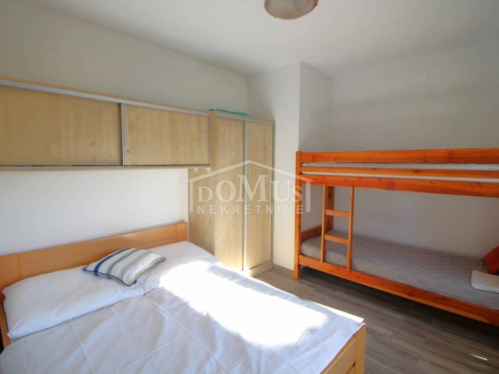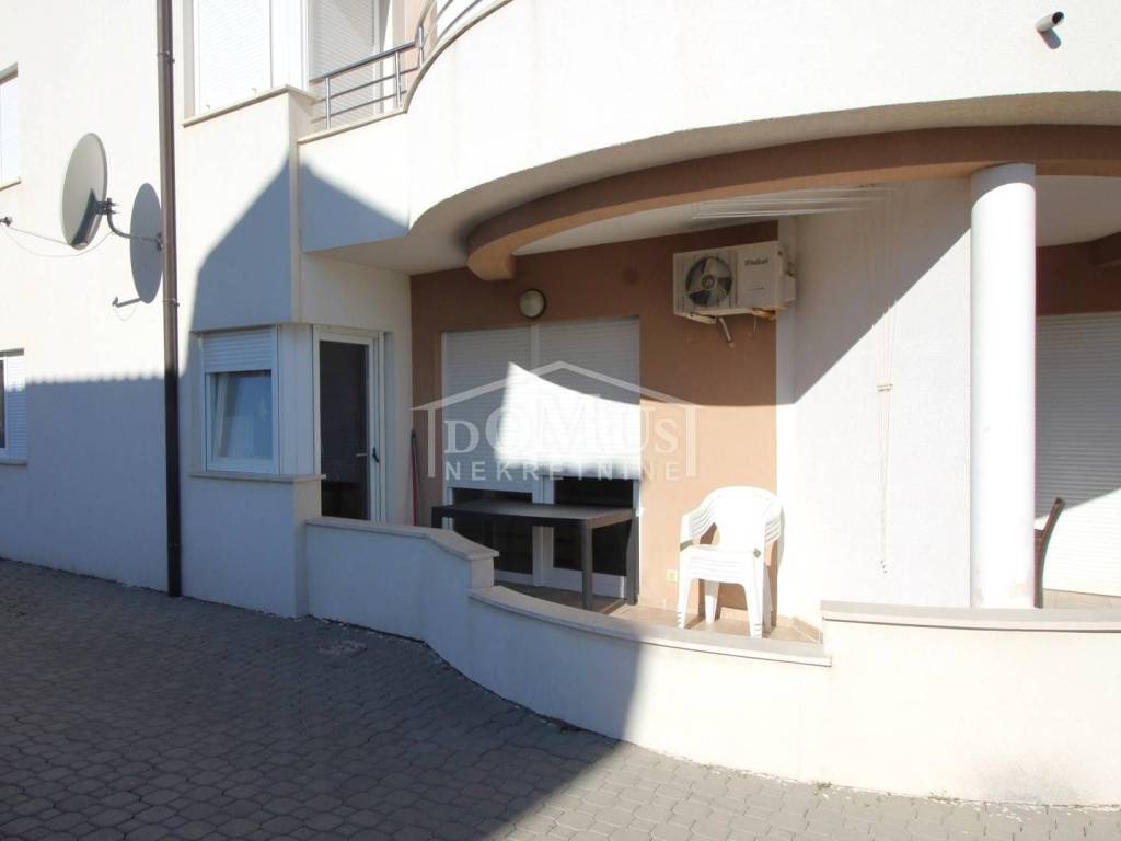 In a quiet environment, only 200 m from the beach, apartment of 40,20m2. The apartment is located on the ground floor of a residential building, consists of a kitchen with dining area and a living room with access to a terrace, two bedrooms and a bathroom. The apartment is fully furnished, which is included in the price of the property and has one parking space. Distance from the sea and beach is 200m, and the center is 1.000 m away.