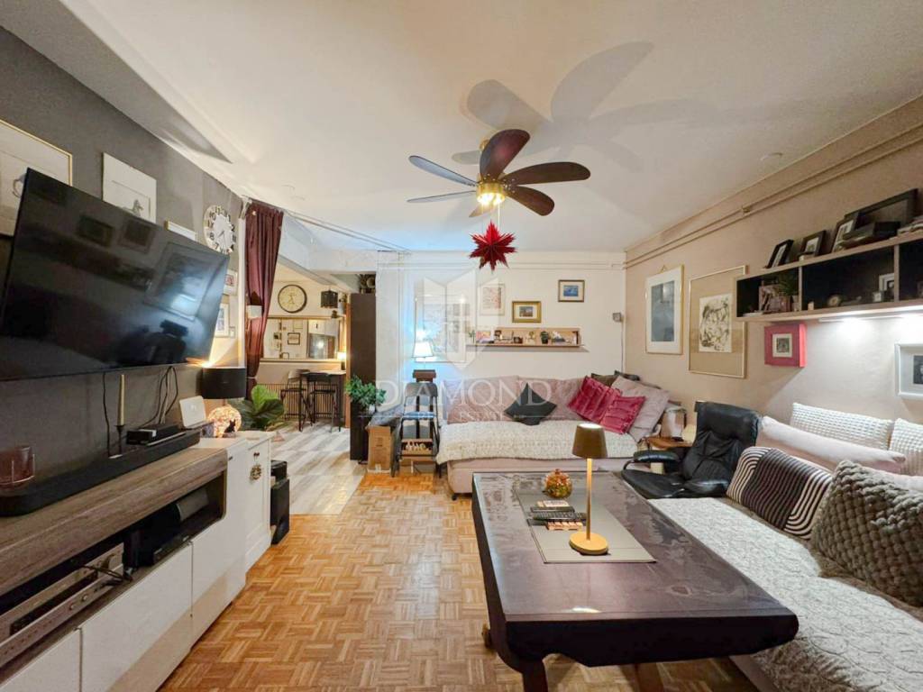 The apartment, measuring 86 m², consists of a large living room, two bedrooms, a spacious kitchen, bathroom, separate toilet, hallway and balcony. The space is very airy and functionally organized, with plenty of natural light throughout the day thanks to its two-sided orientation.