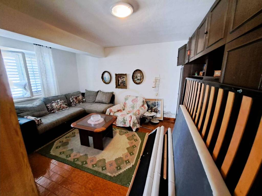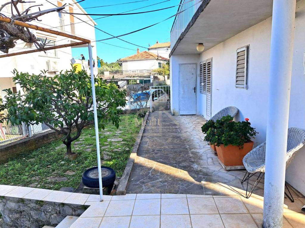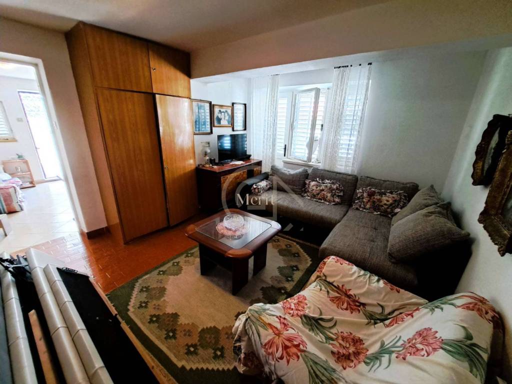 A house built in 1969 is for sale in the village of Mastrinka on the island of Čiovo, located in a peaceful area near the medieval Church of the Holy Cross (Sveti Križ). The property is in an excellent location, only about 100 m from the beach, shops, restaurants, and cafés. The distance to Trogir is approximately 3 km, Split Airport is about 3 km away, and the city of Split is around 25 km away.