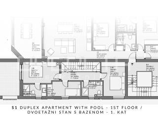 We offer a modern and comfortable duplex apartment S1 with a private pool and garden, located in a smaller modern building with a total of four residential units. This attractive property offers an ideal combination of contemporary design, functional layout and high living standards.
