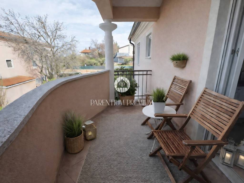 Poreč Surroundings | One-bedroom apartment with sea view | approx. 50 m For sale is a bright and functional apartment located on the first floor of a small residential building in a quiet area near Poreč. The apartment of approx. 50 m consists of: open-plan living room with kitchen and dining area one bedroom fully renovated bathroom (2025) terrace with an open view of the surroundings and the sea Heating and cooling are provided by air conditioning, and a chimney allows the installation of a wood or pellet stove. The apartment includes one private parking space. The location is highly convenient only 4 minutes by car to the centre of Poreč and the sea. Ideal as a holiday home, investment property or for a couple.