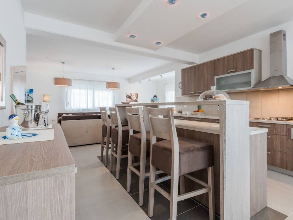 Svaka vila zasebno sastoji se od 4 hotelske klimatizirane sobe sa komfornim ”en suite”kupaonicama, i s izlazom na balkon s pogledom na more. Prizemlje se sastoji od ulaznog hodnika, zasebnog wc-a, te prostranog open space dnevnog boravka s kuhinjom i blagovaonom s izlazom na terasu i bazen.