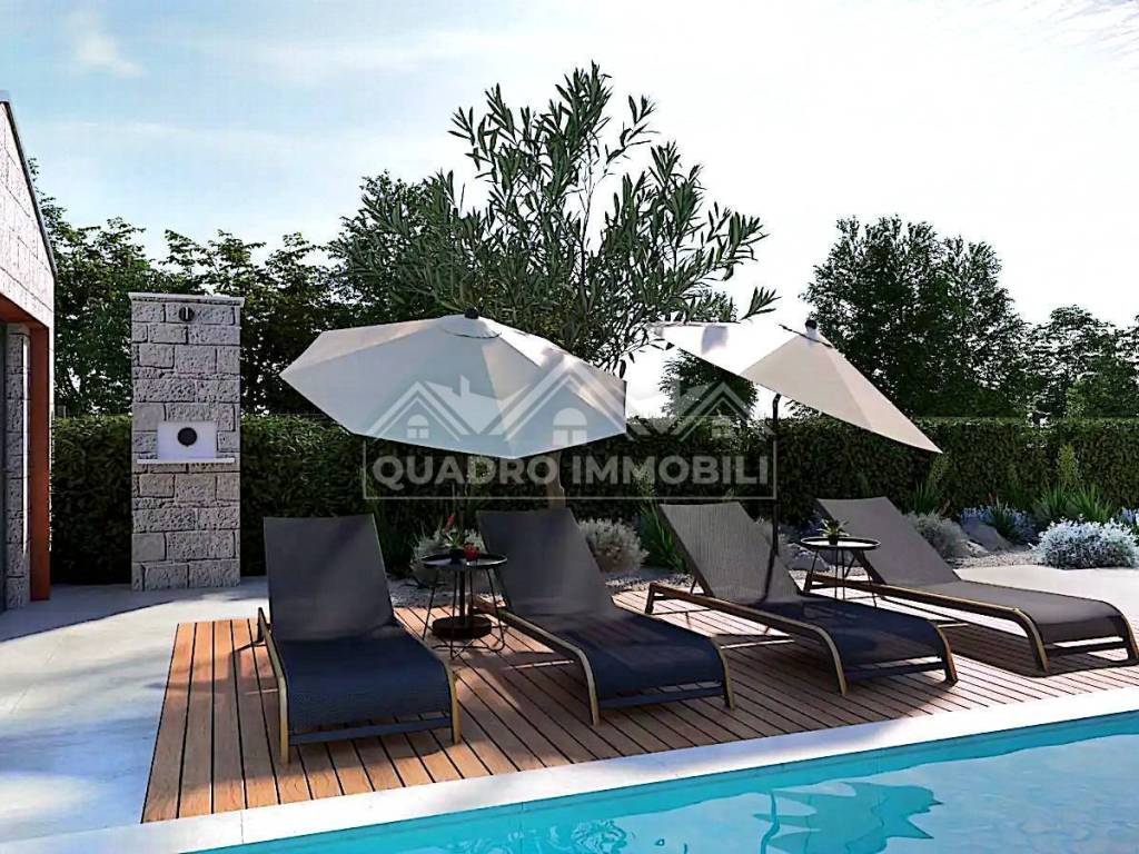 Projekt vile: Planirana moderna istarska prizemnica: - stambena površina: 125 m - ljetna kuhinja 20 m - pomoćni objekt (sauna + spremište 20 m) - bazen 8 4 m