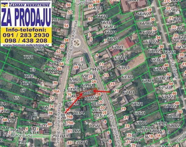 atraktivno građevinsko zemljište 504m2!! darda!! ulica 135. baranjske brigade!! prednja fronta cca 10 m2!! extra mirna lokacija!! nudimo za prodaju atraktivno građevinsko zemljišteu dardi u ulici 135. baranjske brigade. zemljište površine 504 m2 te ima prednju frontu cca 10m. parcela ima dostupnu kompletnu komunalnu infrastrukturu. - extra mirna stambena lokacija! - blizina vrtića! - neposredna blizina gradskog prijevoza! - neposredna blizina parka i dječjeg igrališta! - blizina trgovačkog centra i tržnice! - blizina pošte! - blizina ljekarne! - blizina benzinske crpke! - dokumentacija o vlasništvu je uredna! - detaljniji slikovni i tekstualni opis nekretnine možete dobiti dolaskom u naš ured trg slobode 8, osijek! prodaja i informacije : 031/200-742 098/438-208 091/283-2930 ksabic@tasman-nekretnine.hr više zemljišta na www.tasman-nekretnine.hr
