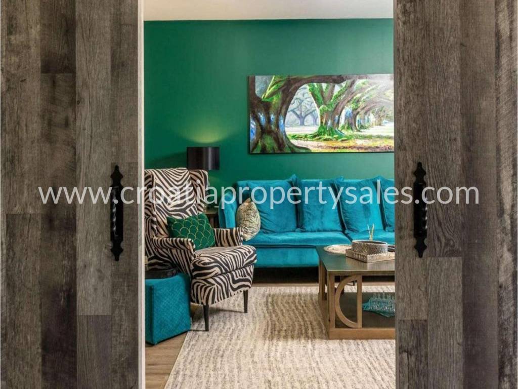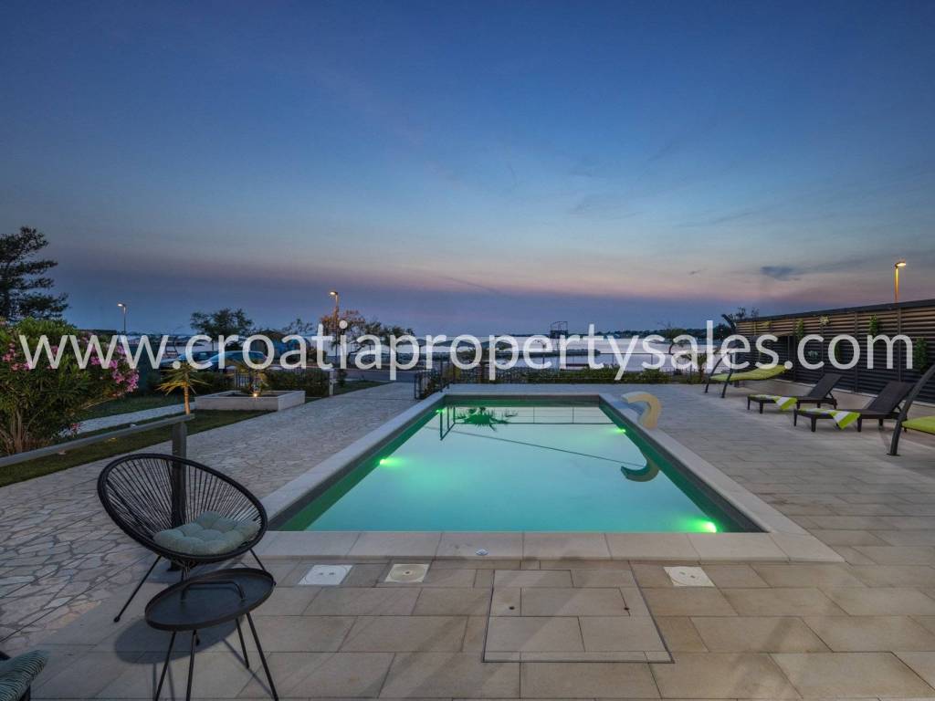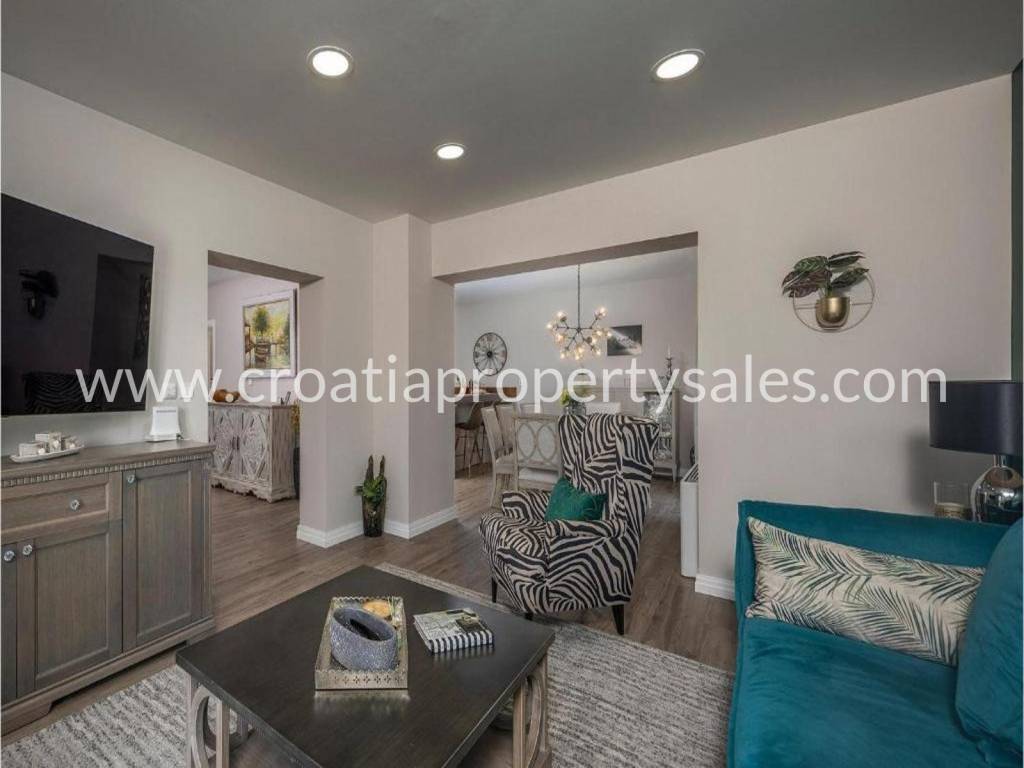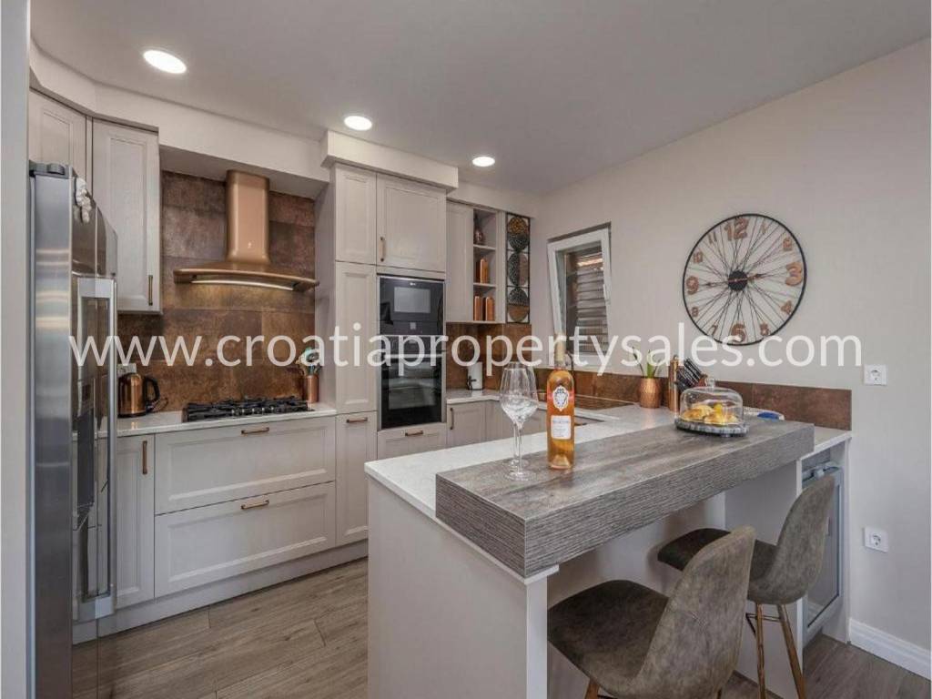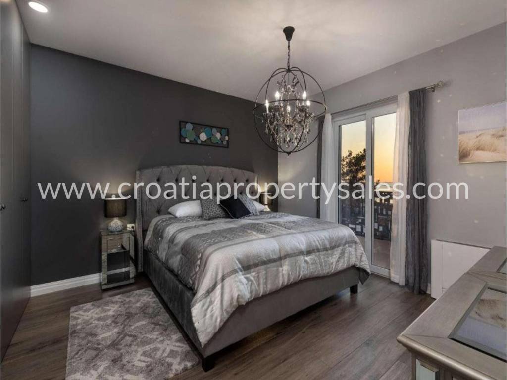 Traditional house, luxuriously decorated with a large outdoor heated swimming pool, large garden, football court and garage in the first row to the sea. The house consists of 5 bedrooms and 4 bathrooms spread over two floors. Each bedroom has its own private balcony. The ground floor consists of a living room, open plan kitchen/ dining area, bedroom, bathroom and a garage (currently used as a games room) The first floor consists of 4 bedrooms each with a balcony and 3 bathrooms. There is a large covered BBQ area with an outdoor kitchen perfect for entertaining guests. The heated outdoor swimming pool of 36m2 can be enjoyed almost all year round. Zadar airport is 30 minutes away.