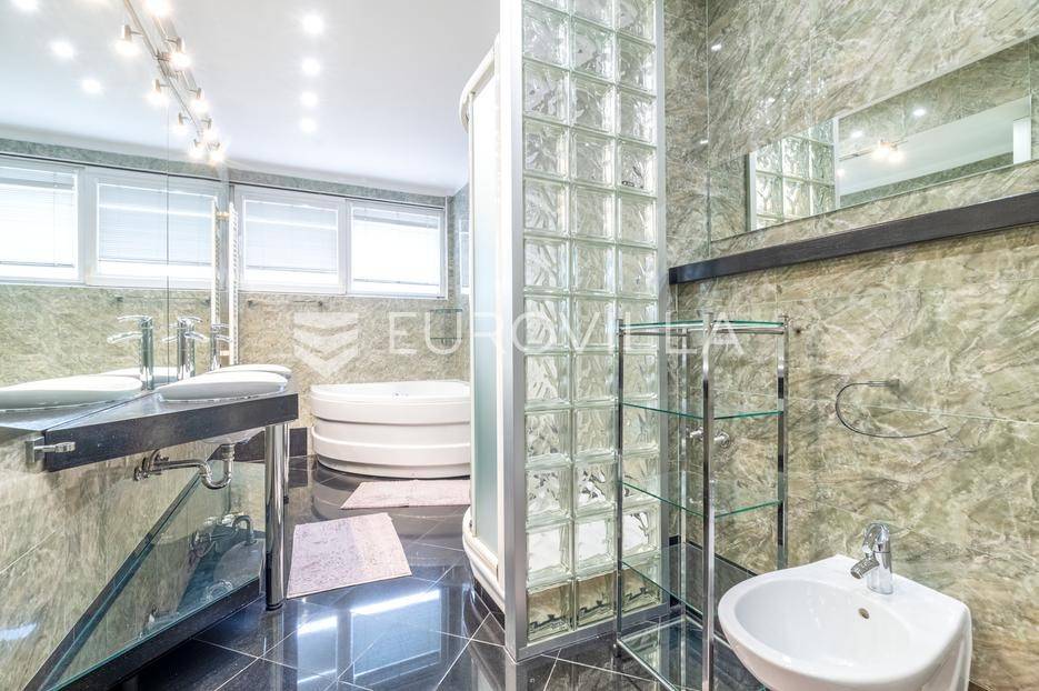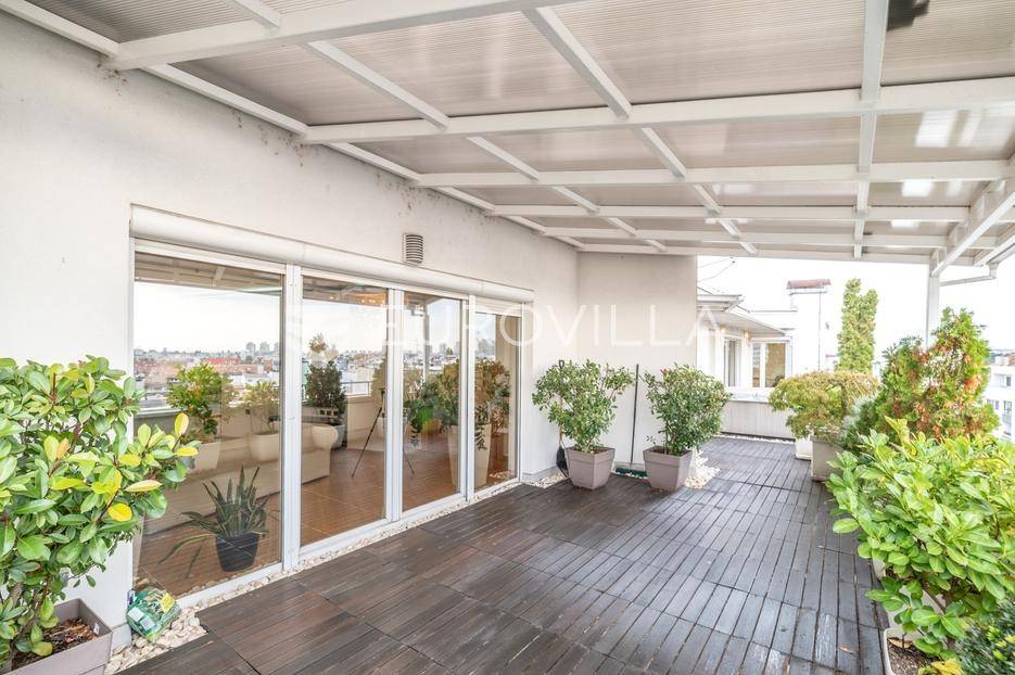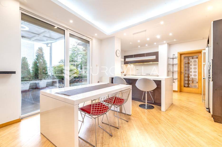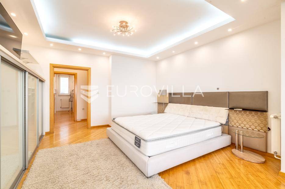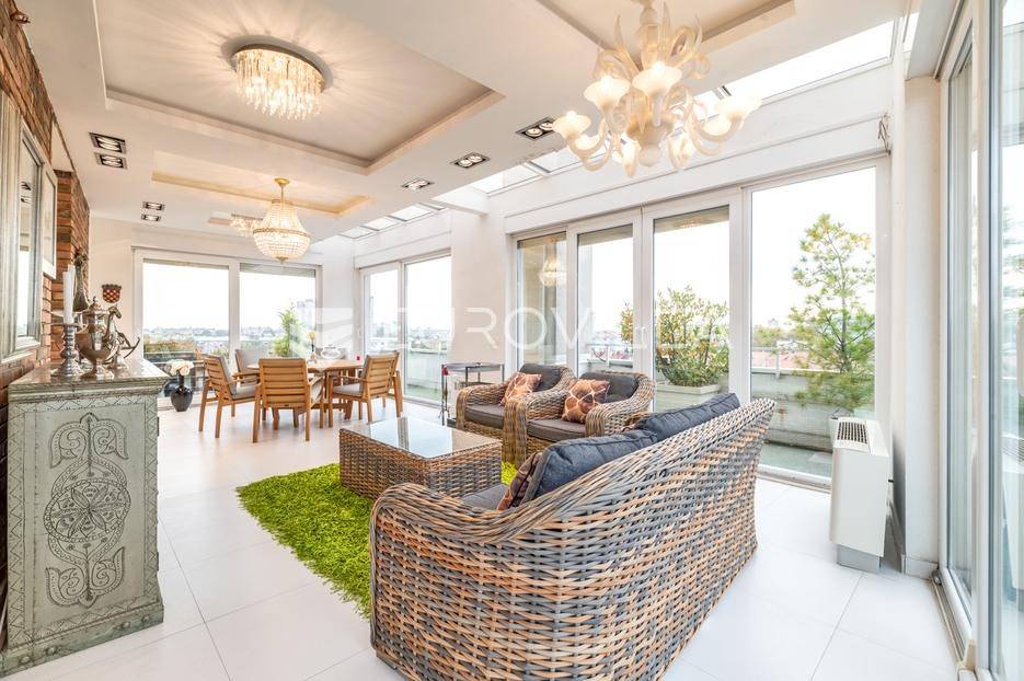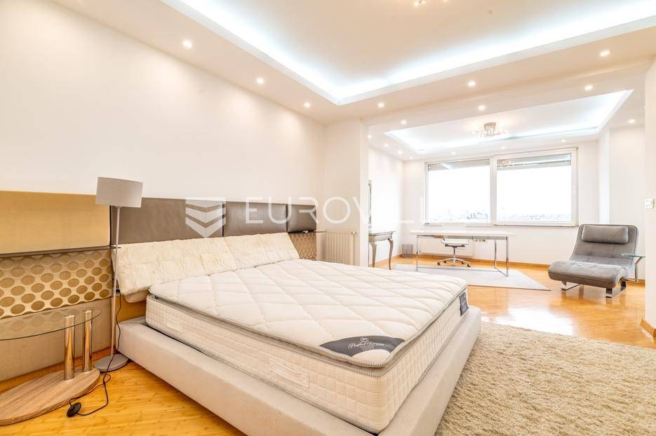Luksuzni penthouse za najam u Trakošćanskoj ulici predstavlja jedinstvenu nekretninu na tržištu. Smješten je na šestom katu kvalitetno građene i uredno održavane zgrade iz 2006. godine, s liftom koji vodi izravno u stan te omogućuje i direktan pristup iz garaže.Stan se prostire na 304 m² stambene površine, uz dodatnih 130 m² prekrasno uređenih terasa koje nude obilje privatnosti, zelenila i prostora za opuštanje, uključujući roštilj i jacuzzi. Ukupna neto korisna površina iznosi 356 m².Klimatizacija je osigurana u svim glavnim prostorijama, dok kupaonice imaju podno grijanje koje pruža dodatnu razinu komfora.Ulazak u stan otkriva osjećaj prostranosti i elegancije — veliki dnevni boravak povezan je s blagovaonicom i modernom, potpuno opremljenom kuhinjom, stvarajući idealan prostor za svakodnevni život i druženja.Master spavaća soba raspolaže vlastitom kupaonicom i garderobom, dok su preostale dvije spavaće sobe također opremljene vlastitim kupaonicama, što stan čini iznimno funkcionalnim i praktičnim za obitelj ili goste.Zatvoreni i legalizirani dio terase pretvoren je u dodatni dnevni boravak površine 44 m², pružajući miran kutak za rad, opuštanje ili zabavu.Dodatne pogodnosti uključuju vešeraj, spremište i gostinjski WC.Nekretnina se nalazi u mirnoj ulici s izvrsnom mikrolokacijom, u neposrednoj blizini svih važnih sadržaja.Riječ je o rijetkoj prilici za najam prostranog, luksuznog i pažljivo održavanog doma koji spaja udobnost, estetiku i privatnost na jednoj od najpoželjnijih lokacija na Trešnjevci.Mogućnost najam dvije garaže po cijeni od EUR 150 po jednom garažnom mjesto.Za sve dodatne informacije i dogovor oko razgledavanja, slobodno nas kontaktirajte.... Više na eurovilla.hr, ID: 423869