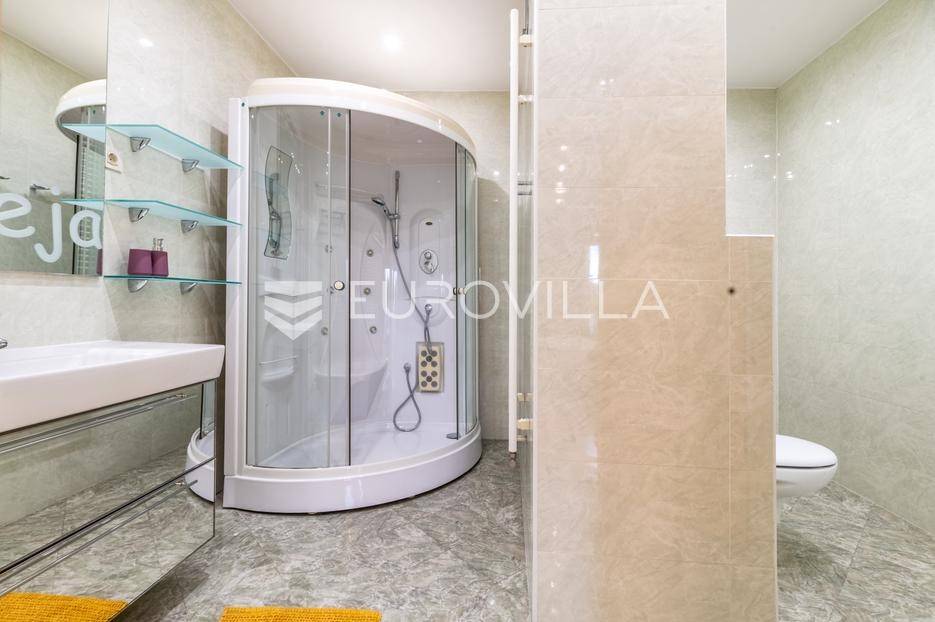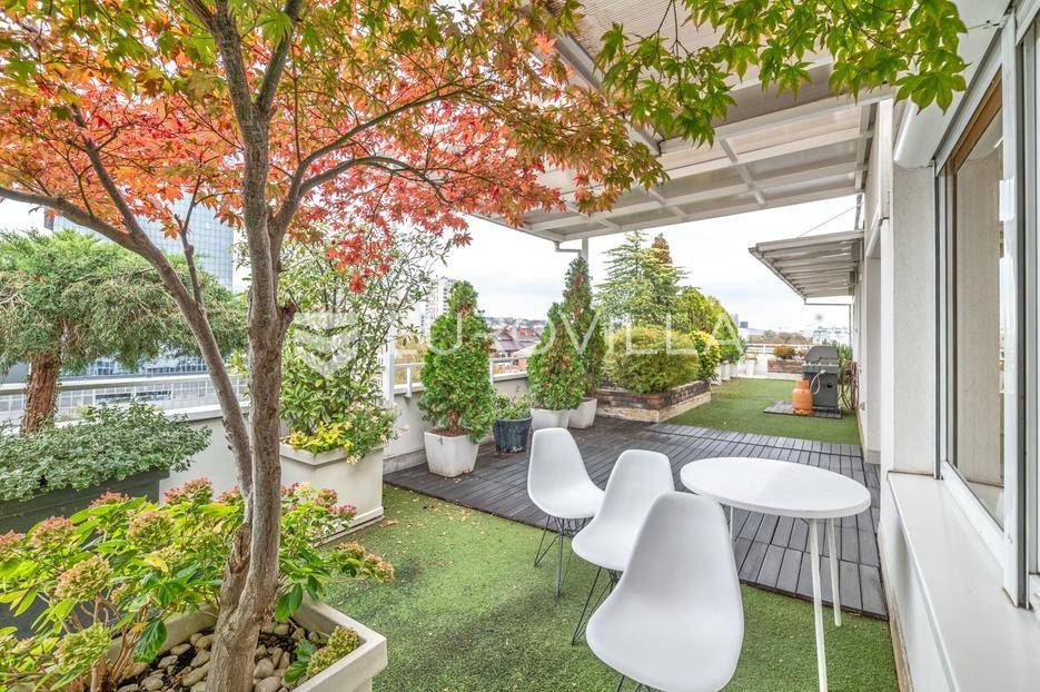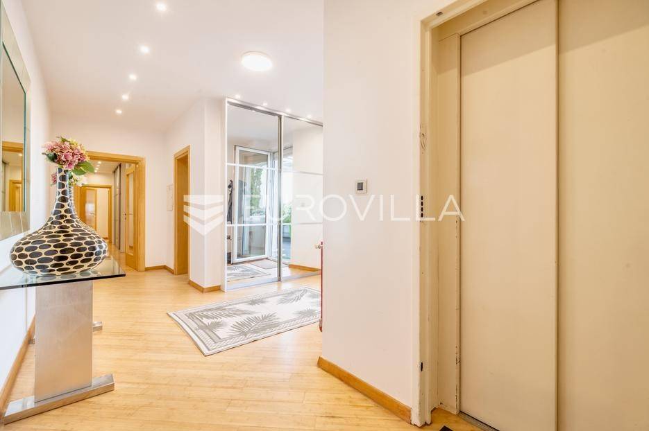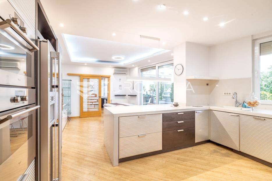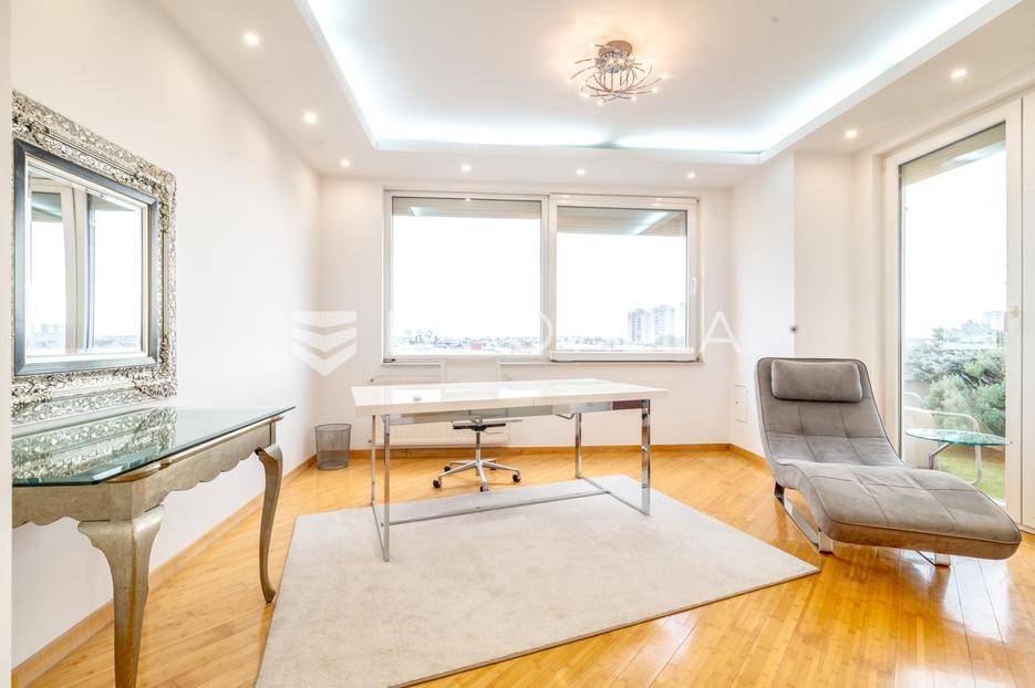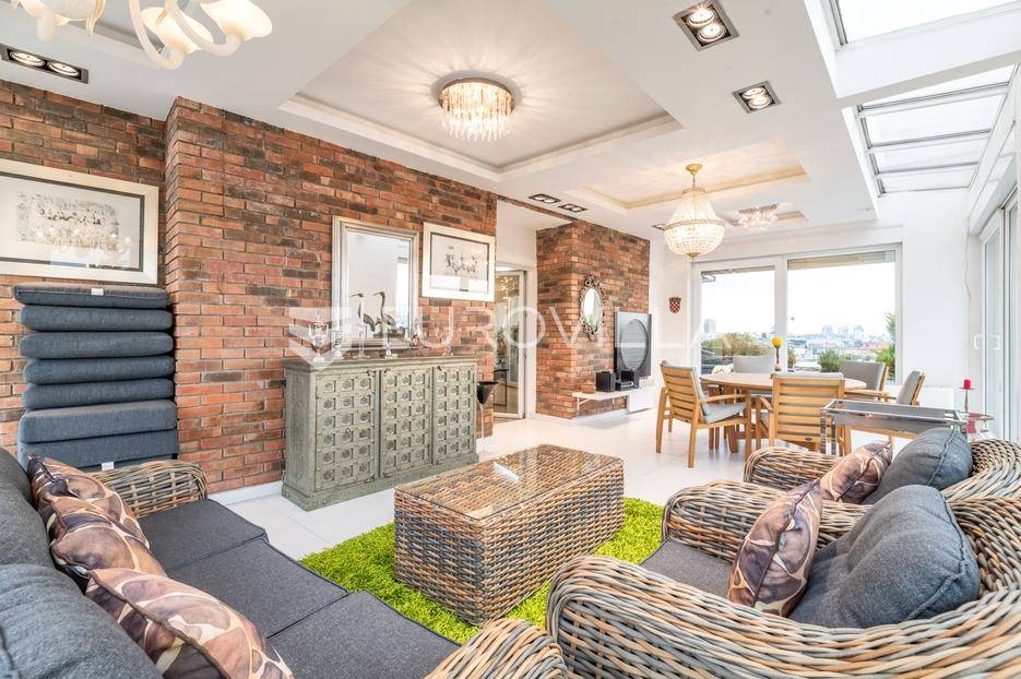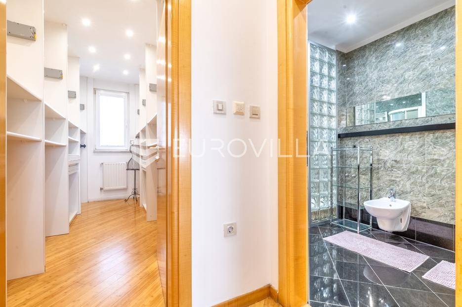 Luksuzni penthouse za najam u Trakošćanskoj ulici predstavlja jedinstvenu nekretninu na tržištu. Smješten je na šestom katu kvalitetno građene i uredno održavane zgrade iz 2006. godine, s liftom koji vodi izravno u stan te omogućuje i direktan pristup iz garaže.Stan se prostire na 304 m² stambene površine, uz dodatnih 130 m² prekrasno uređenih terasa koje nude obilje privatnosti, zelenila i prostora za opuštanje, uključujući roštilj i jacuzzi. Ukupna neto korisna površina iznosi 356 m².Klimatizacija je osigurana u svim glavnim prostorijama, dok kupaonice imaju podno grijanje koje pruža dodatnu razinu komfora.Ulazak u stan otkriva osjećaj prostranosti i elegancije — veliki dnevni boravak povezan je s blagovaonicom i modernom, potpuno opremljenom kuhinjom, stvarajući idealan prostor za svakodnevni život i druženja.Master spavaća soba raspolaže vlastitom kupaonicom i garderobom, dok su preostale dvije spavaće sobe također opremljene vlastitim kupaonicama, što stan čini iznimno funkcionalnim i praktičnim za obitelj ili goste.Zatvoreni i legalizirani dio terase pretvoren je u dodatni dnevni boravak površine 44 m², pružajući miran kutak za rad, opuštanje ili zabavu.Dodatne pogodnosti uključuju vešeraj, spremište i gostinjski WC.Nekretnina se nalazi u mirnoj ulici s izvrsnom mikrolokacijom, u neposrednoj blizini svih važnih sadržaja.Riječ je o rijetkoj prilici za najam prostranog, luksuznog i pažljivo održavanog doma koji spaja udobnost, estetiku i privatnost na jednoj od najpoželjnijih lokacija na Trešnjevci.Mogućnost najam dvije garaže po cijeni od EUR 150 po jednom garažnom mjesto.Za sve dodatne informacije i dogovor oko razgledavanja, slobodno nas kontaktirajte.... Više na eurovilla.hr, ID: 423869