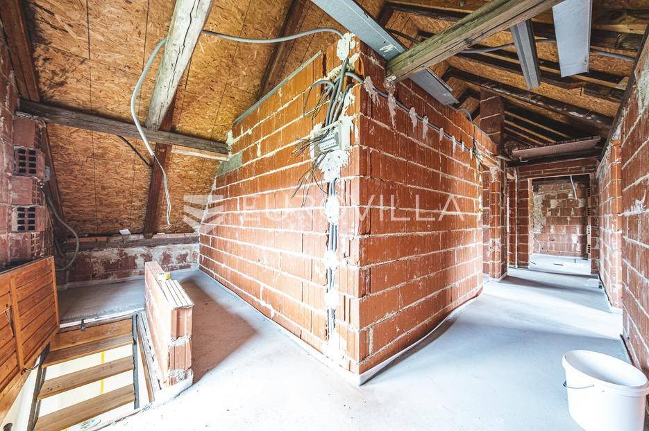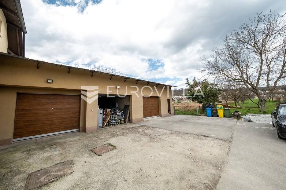 Brdovec, predivna kuća stambene površine 215 m2 s 3 garaže/pomoćnih prostora 98 m2, sve zajedno ukupne bruto kvadrature 315,66 m2.Razvedena na 3 etaže, sastoji se od:Podruma: ulazni hodnik, kupaonica, kuhinja, dnevnog boravka s blagovaonom i spavaće sobe te 2 pomoćne prostorijeVisokog prizemlja: ulazni hodnik, gostinjski WC, kupaonica, spavaća soba, kuhinja s blagovaonicom, dnevni boravak, balkon1. kat (roh-bau): hodnik, 3 spavaće sobe i kupaonicaIzgradnja je započeta 1967. godine, 1980-ih je izgrađeno visoko prizemlje dok je 1. kat izgrađen 2008. godine, kada je mijenjan krov kuće te su izgrađene garaže. 2015. godine je napravljena nova fasada.Kroz svaki kat kuće prolazi i stara dizalica/lift za osobe s invaliditetom.Nalazi se na izvanrednoj lokaciji, uvučenoj od glavne prometnice, u neposrednoj blizini svih sadržaja potrebnih za svakodnevni život.Ostale informacije na upit.... Više na eurovilla.hr, ID: 223475