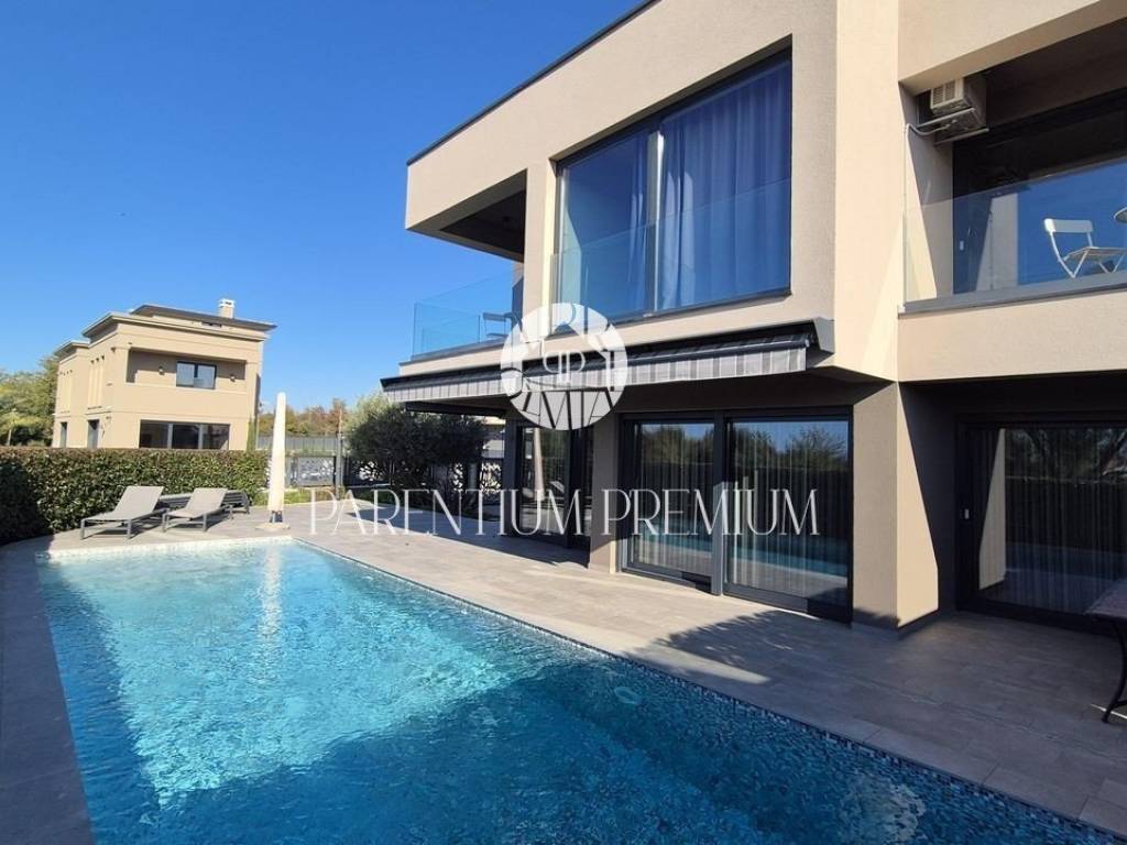 Located in one of the most desirable areas of Poreč, just 500 meters from the sea and beaches and 1.4 km from the city center, this modern luxury villa is for sale.