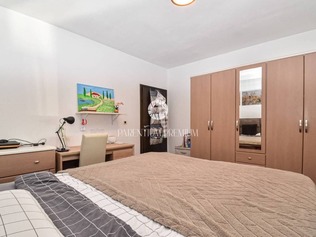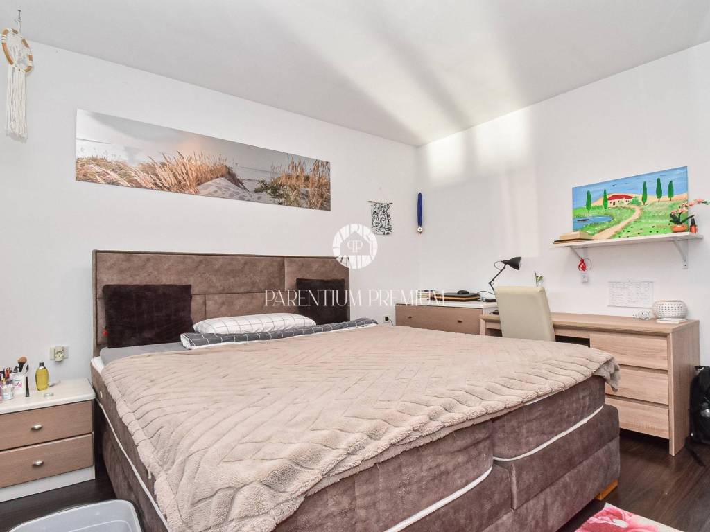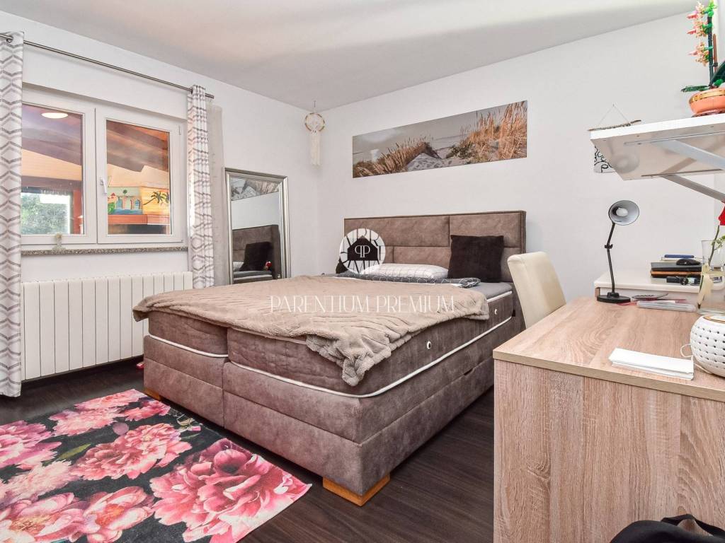 The property includes a total of 2,000 m of land, of which approximately 980 m is fully fenced and landscaped as a private and functional garden, perfect for the safe and carefree movement of pets. This area features a heated swimming pool with a saltwater electrolysis system, a landscaped garden with automatic irrigation, and ample space for parking several vehicles. A garage for two cars and a spacious basement further enhance the property.