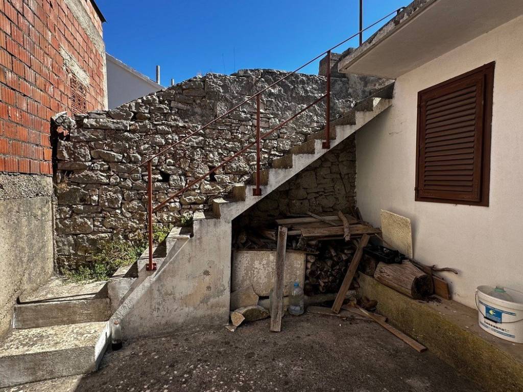 The property requires partial renovation and adaptation. Thanks to its southern orientation, the house and yard receive sunlight throughout the day. On the plot, there are also two small ruined buildings, a few passageways, and a spacious courtyard with great potential.
