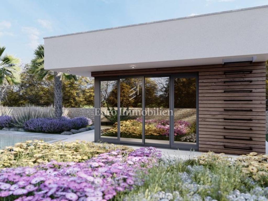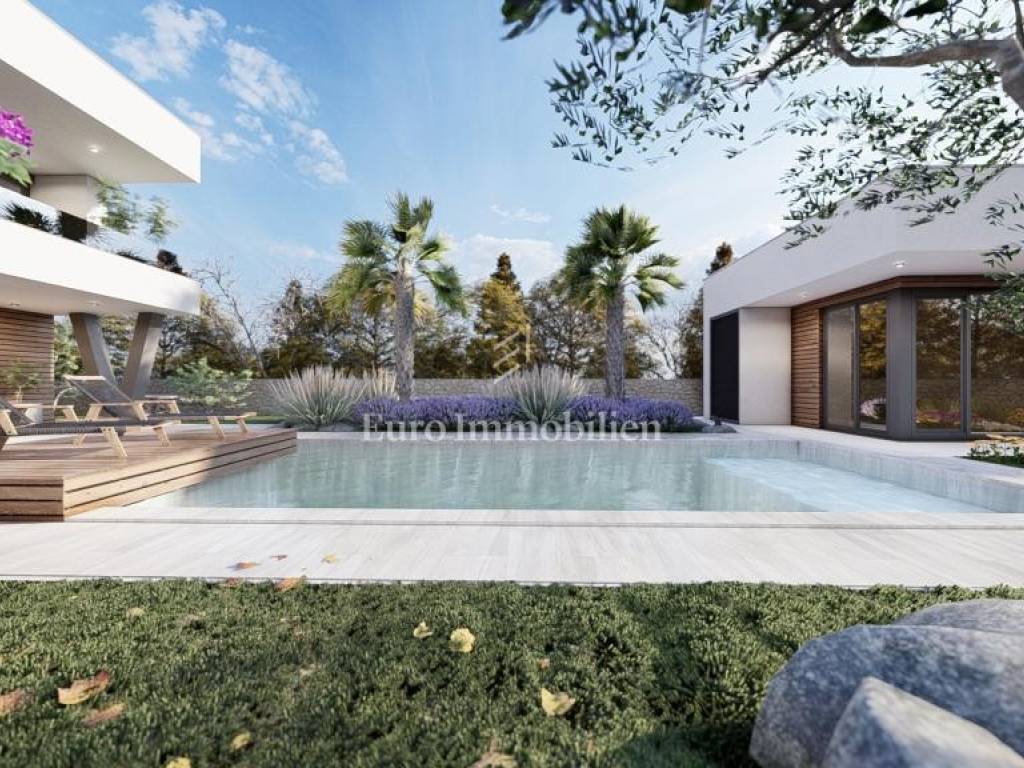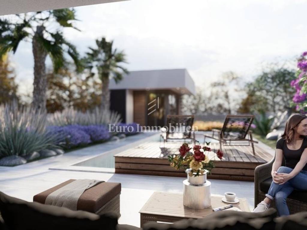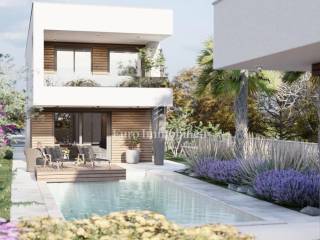 A detached house is being built on a plot of 690 m2, with an auxiliary building and a swimming pool, gross area of ​​213 m2, net area of ​​191 m2. On the ground floor of the building there is an entrance hall, bedroom, bathroom, storage room, kitchen, dining room, living room, and on the first floor there are 3 bedrooms, 2 bathrooms, a hallway, balcony and terrace. A 38 m2 swimming pool and an auxiliary building - wellness are designed. Top quality materials and equipment are used in the construction, and the property is subject to VAT. The distance from the sea is 3500 meters and the move-in is scheduled for the end of 2026.
