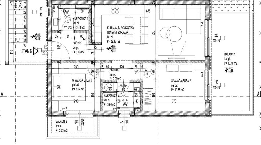 Apartment S1 is located on the ground floor of a smaller residential building in the peaceful and attractive coastal town of Poljica, in the second row from the sea. It is a new building that offers a pleasant combination of privacy, functionality, and proximity to the sea, which makes the apartment an excellent choice for family life, vacation, but also as a secure investment for tourist rental. The total net area of the apartment is 63.91 m², and it consists of an entrance area, hallway, two bedrooms, two bathrooms, and a kitchen with a dining and living room with an area of 22.33 m², which is the central part of the apartment. From the living area, there is access to two covered terraces with an area of 4.16 m² and 16.12 m², which provide a pleasant space for staying and socializing outdoors, with the added value of the ground floor position and easy access to the outdoor space. The apartment is equipped with PVC windows and doors, underfloor heating in the bathrooms, and air conditioning in all rooms, which ensures a comfortable temperature throughout the year. The flooring combines quality ceramics and parquet, which gives the space a modern and warm atmosphere. The property is located in a quiet and well-maintained part of Poljica, just a few minutes' walk from the sea and the beach. The location offers an ideal combination of privacy and practicality, with the proximity of shops, restaurants, and other amenities needed for everyday life or vacation. The location offers good transport links to nearby cities such as Trogir and Split, which can be reached in just twenty minutes by car, while access to the main roads is quick and easy. The proximity to the airport further contributes to practicality, especially for those who plan to use the property for tourist purposes or for frequent travel. The building is currently under construction, and the completion of works is planned for December 2026. The project includes only six apartments, which ensures an additional level of privacy and a peaceful environment. Each apartment has one outdoor parking space, and payment is organized in construction phases, which allows buyers greater flexibility and security during the purchase. For more information or to arrange a viewing, feel free to contact us.