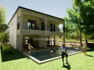 Zemljište površine 585 m2 s gotovim idejnim projekt za kuću s bazenom. Infrastruktura (struja, voda i telefon) se nalazi u neposrednoj blizini. Pristupni put je asfaltiran i vodi do parcele.