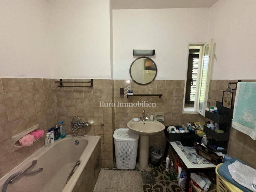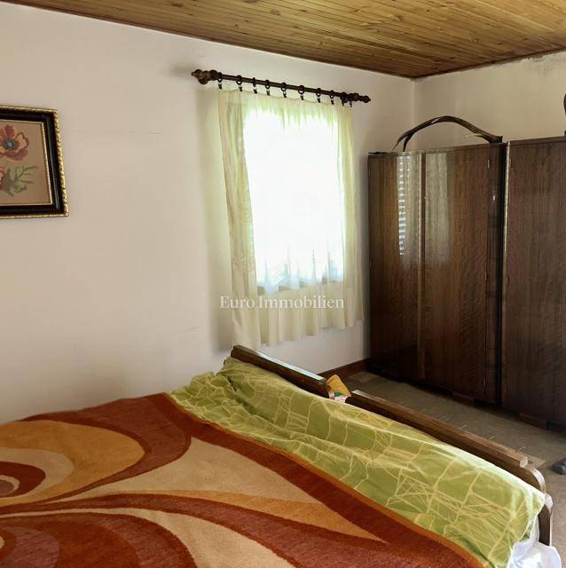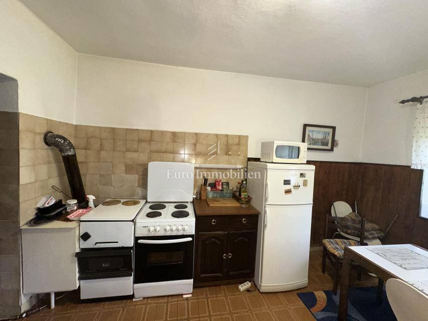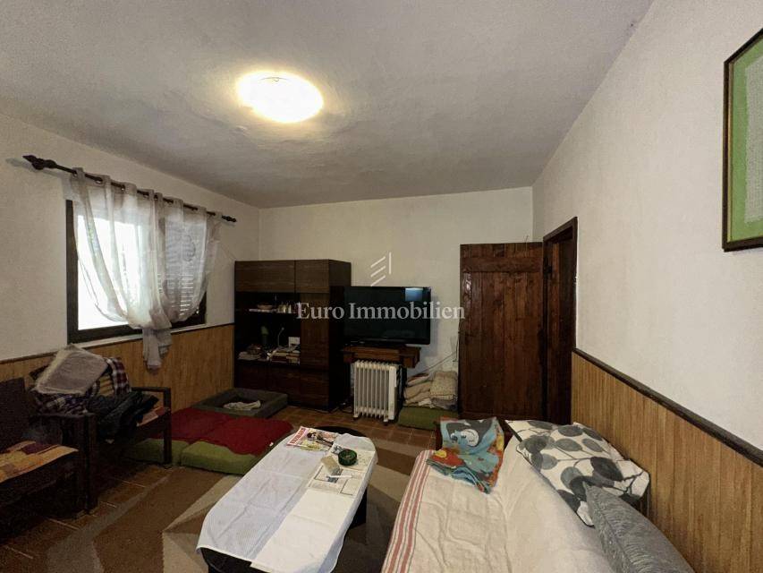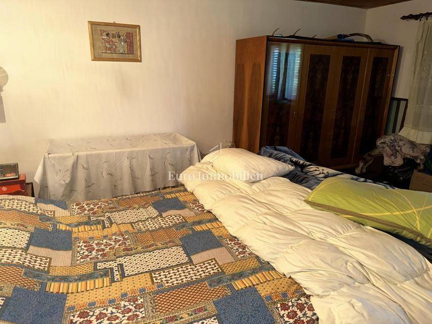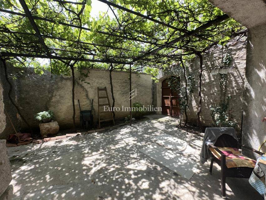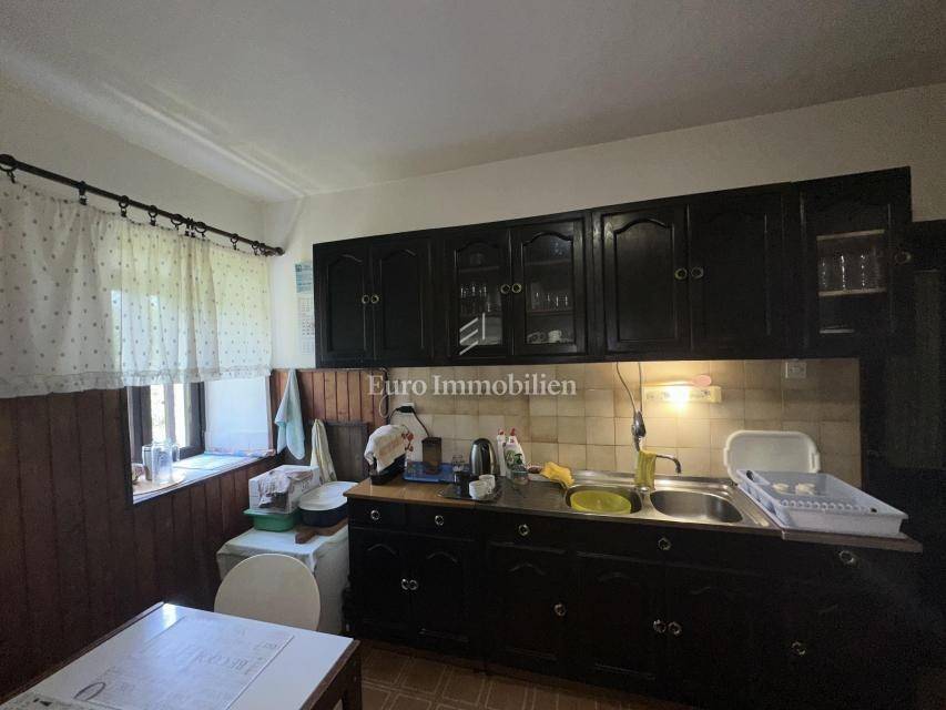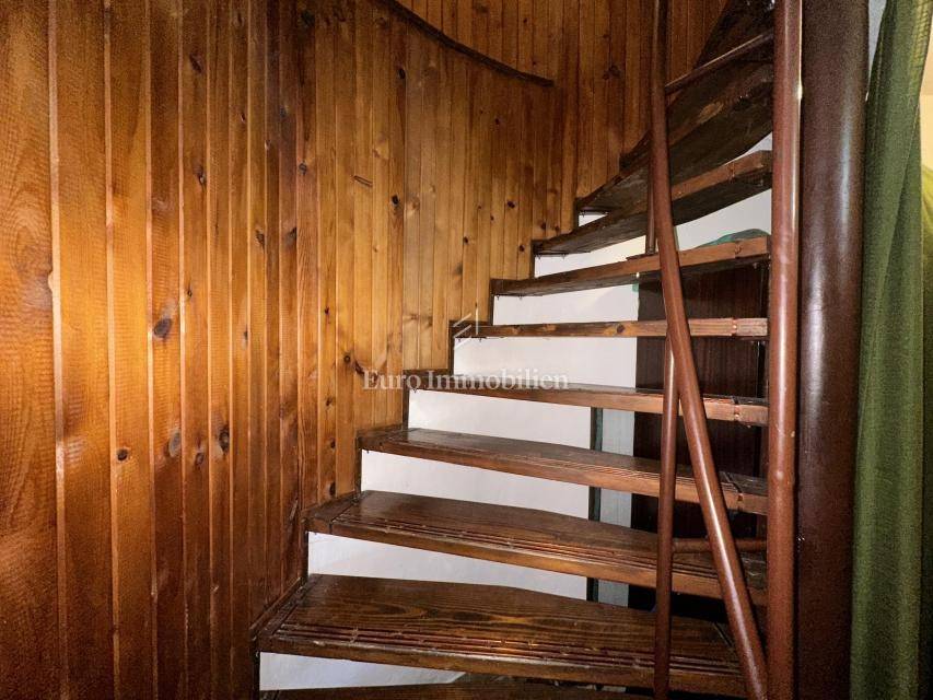 Bribir - Detached house for sale. The house has 212 m2 and consists of a ground floor with a living room, a kitchen, two storage rooms and an internal staircase, and a first floor with 2 bedrooms, a bathroom, a garage and a balcony.
